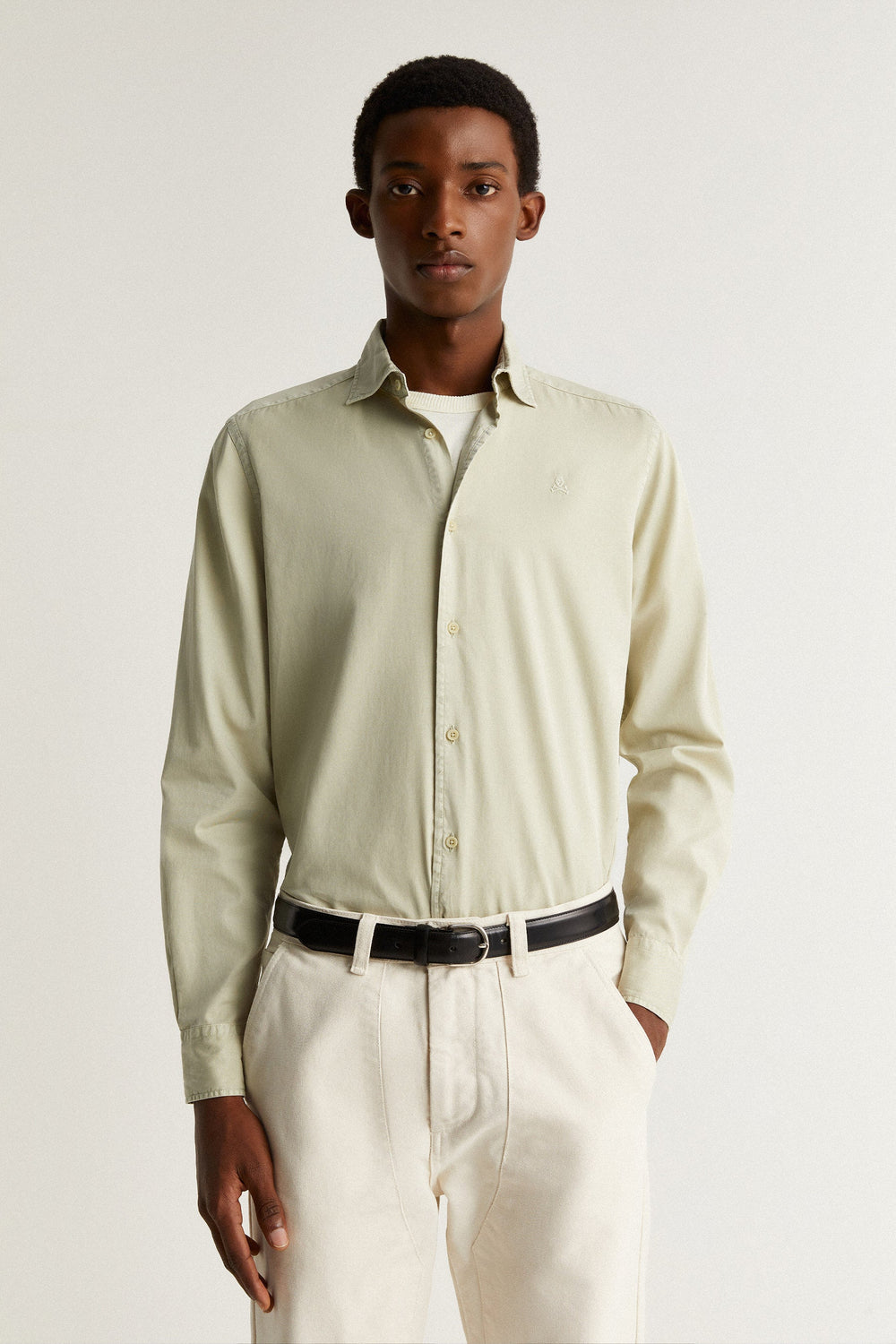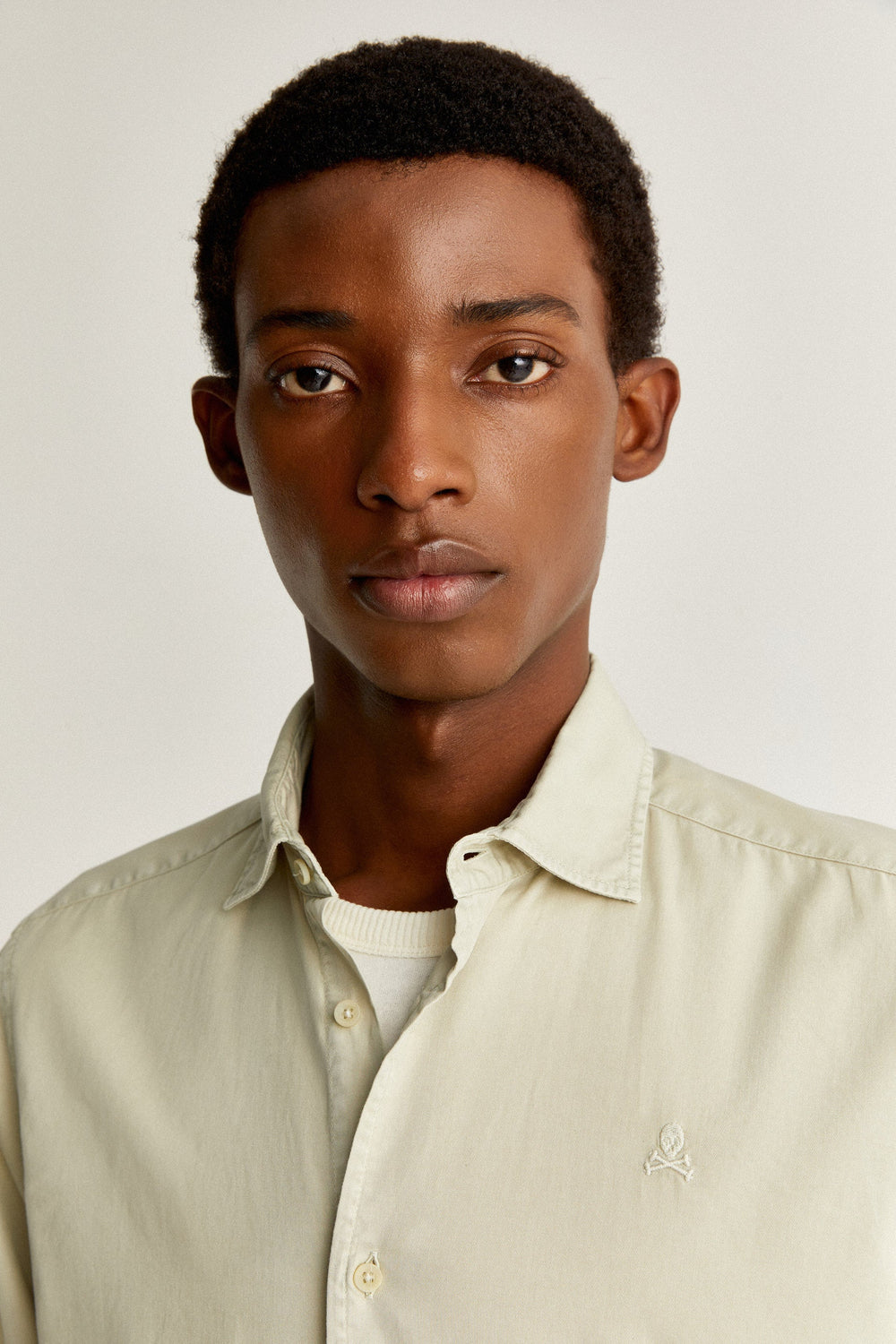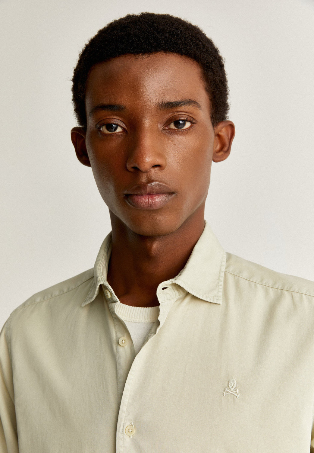 Camisa con calavera bordada en pecho a tono.