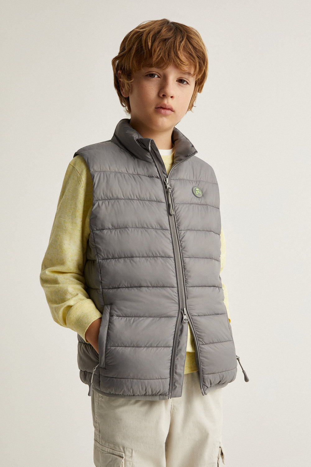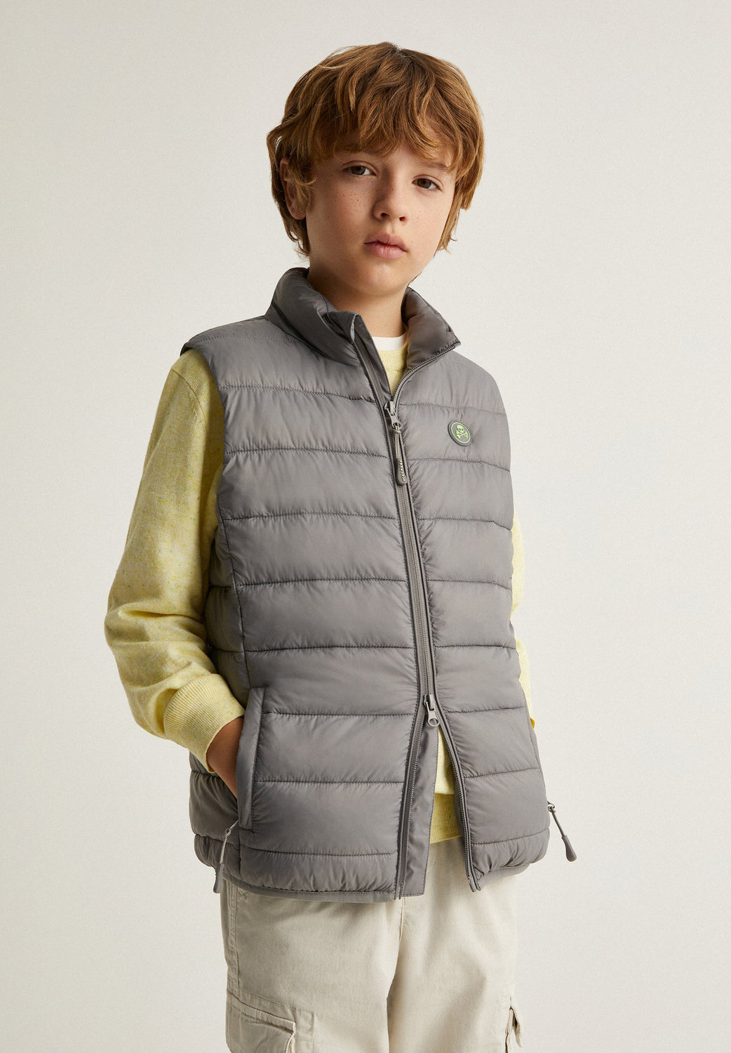 Chaleco acolchado con parche engomado en pecho de calavera a contraste.