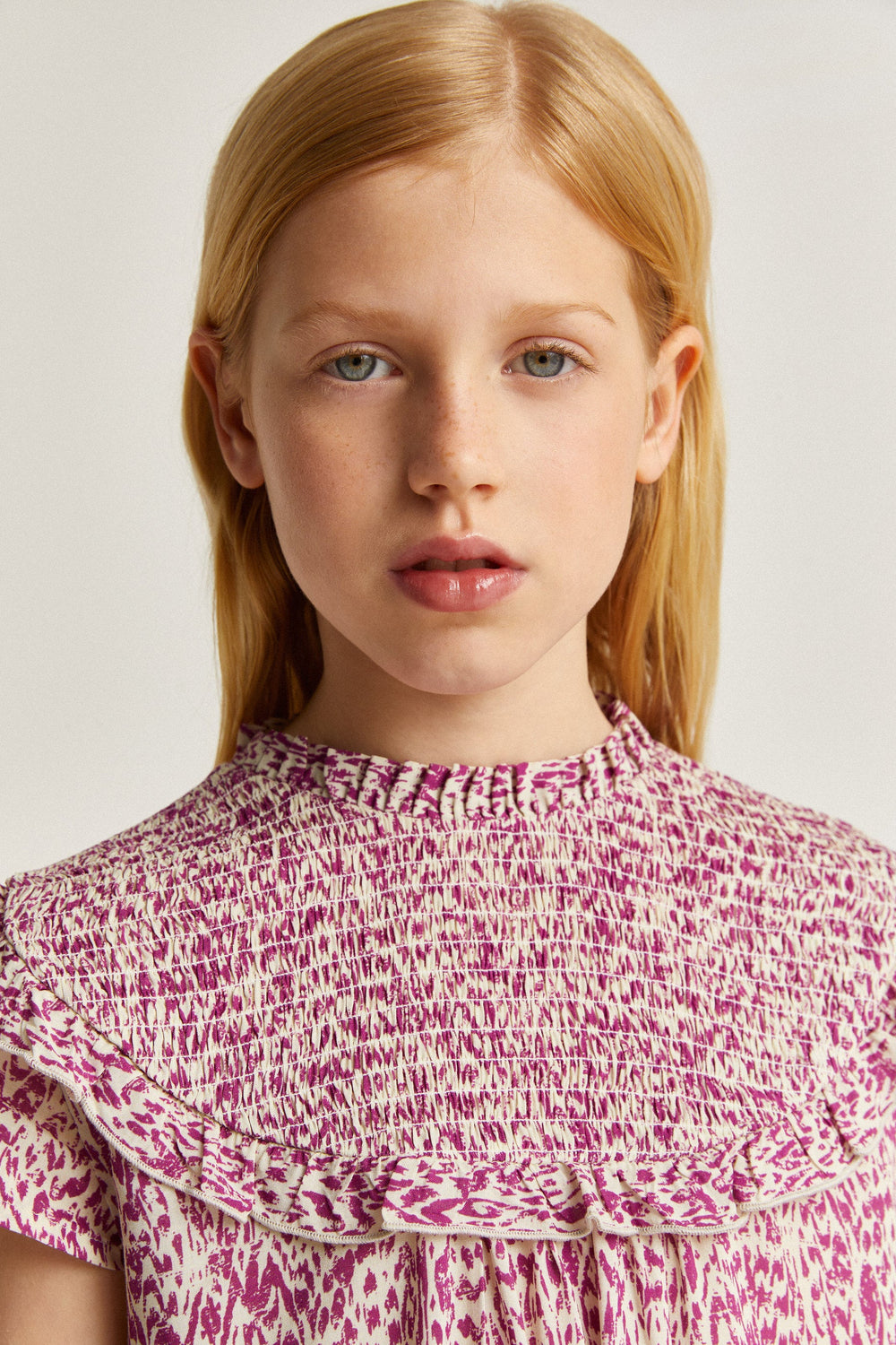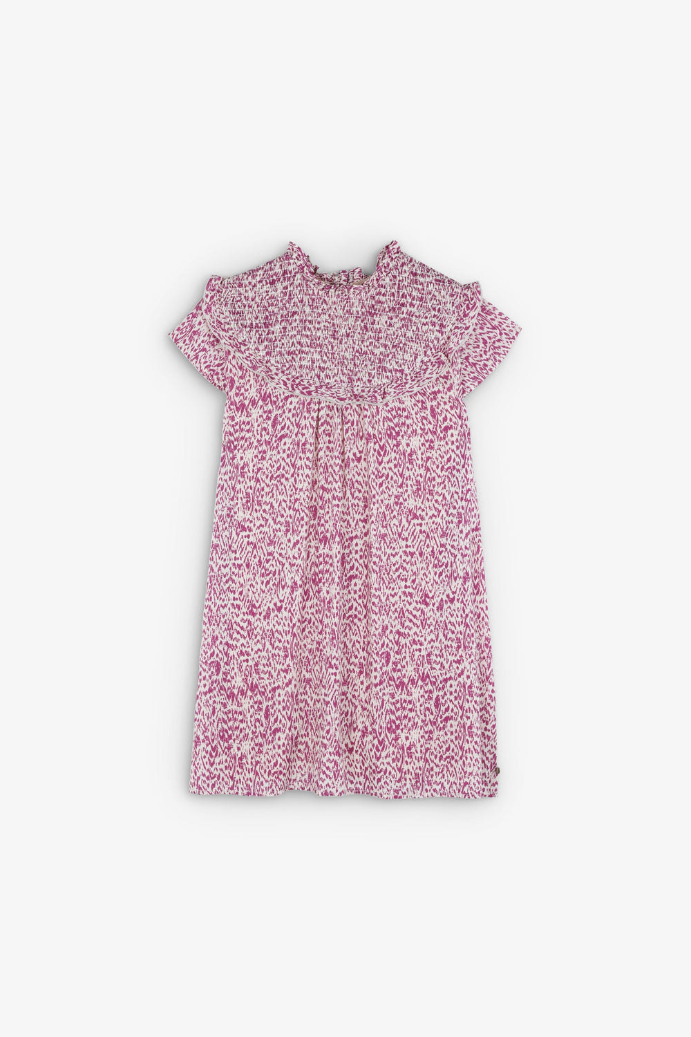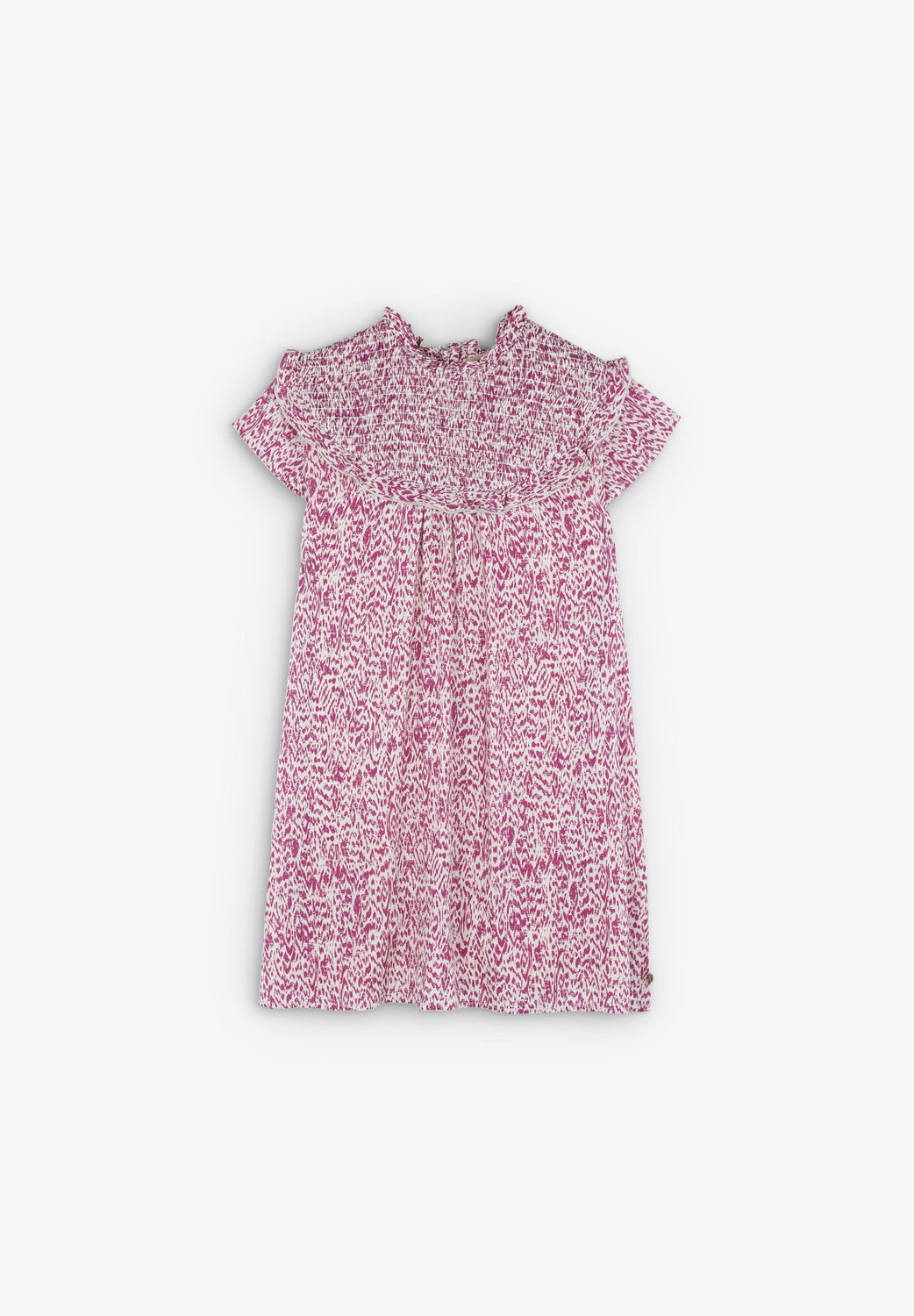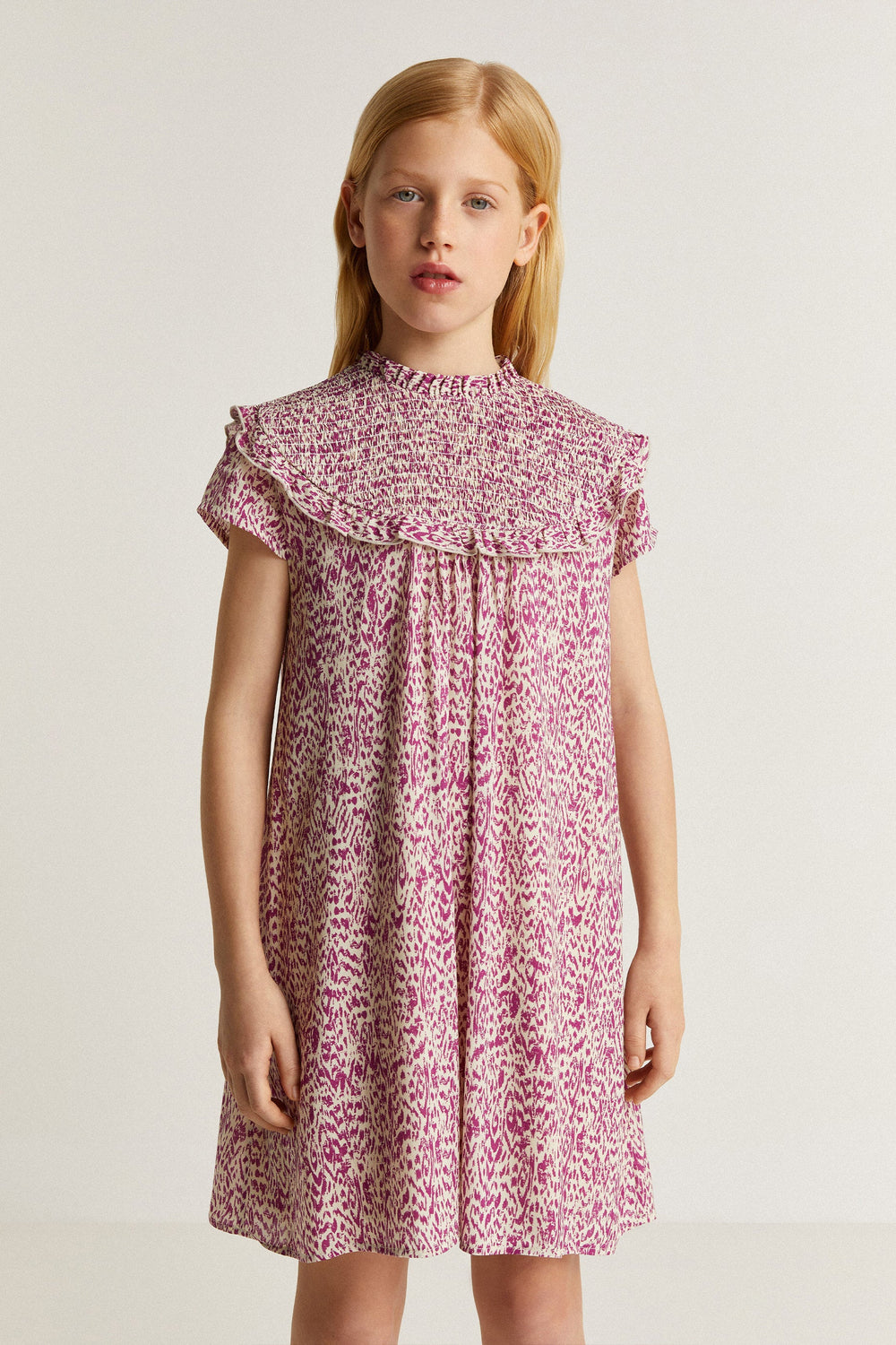 Vestido con detalle de nido de abeja en canesú terminado en volante.