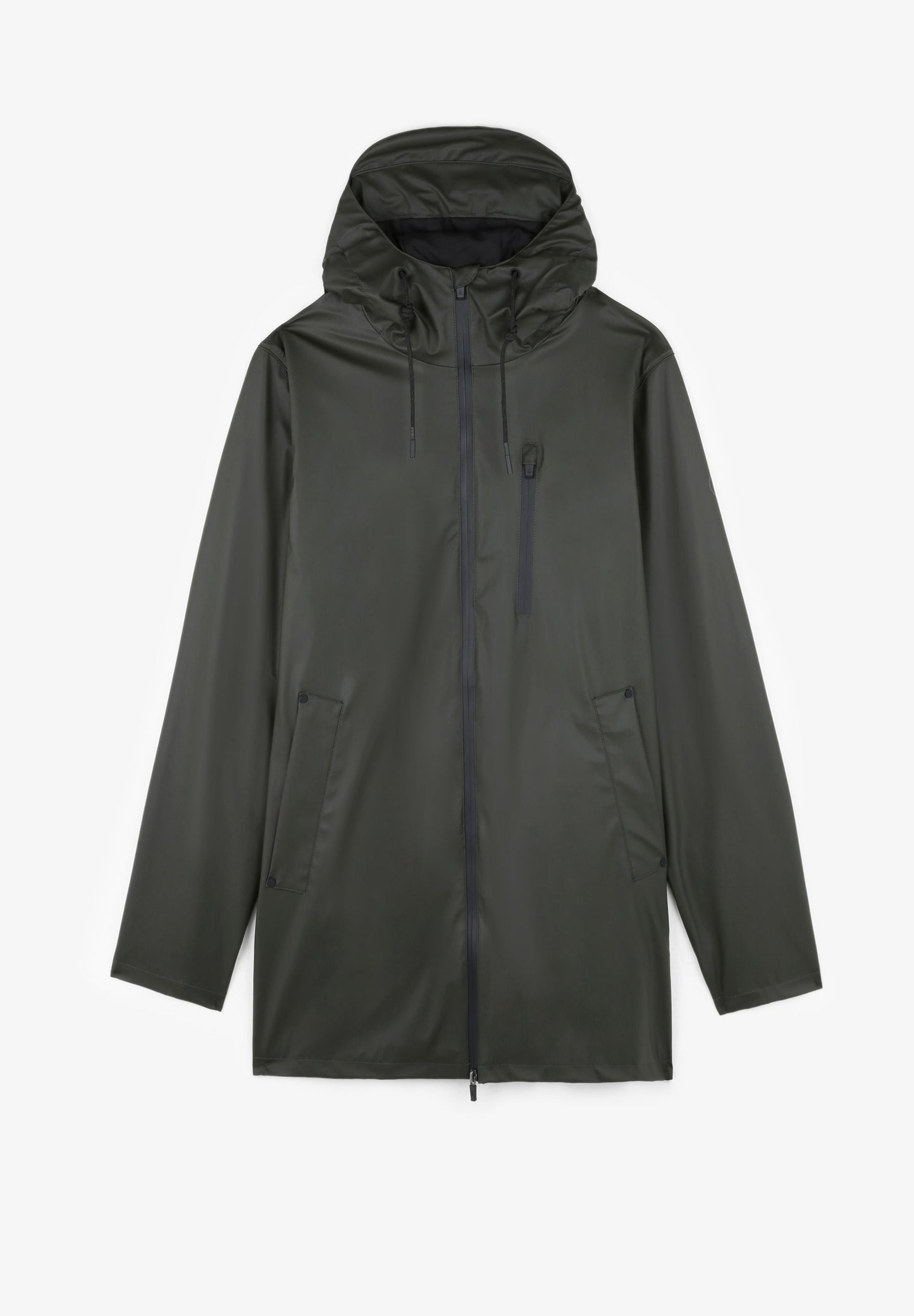 - Bolsillos laterales y en el pecho con cremallera