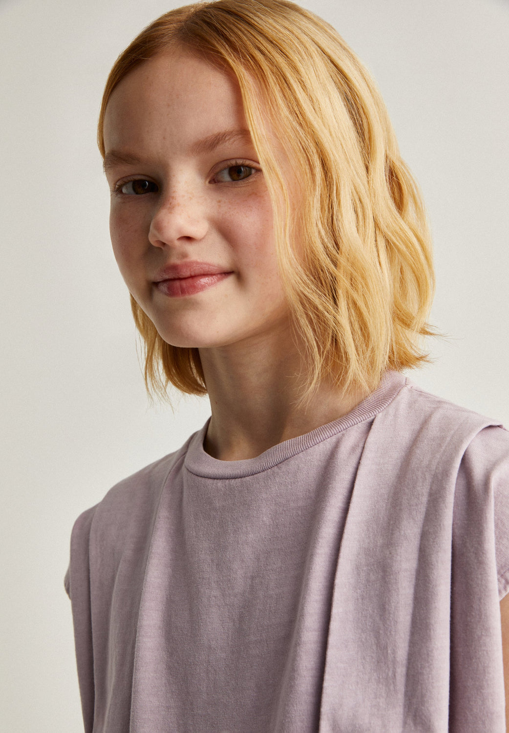 Camiseta con pliegues en parte delantera.