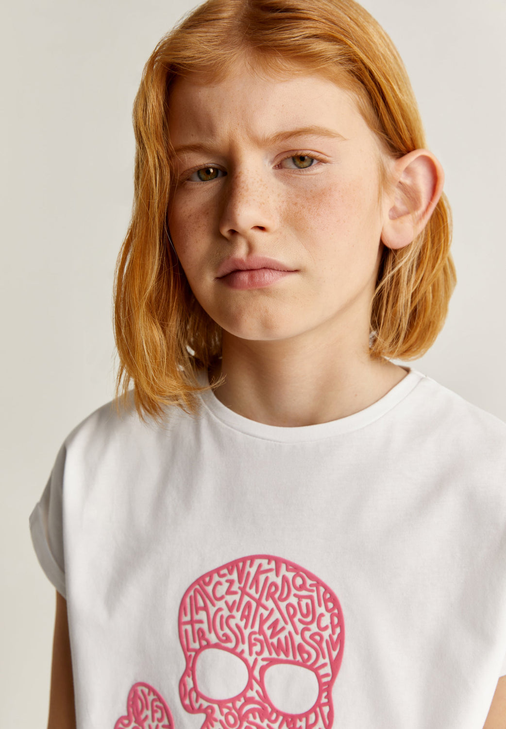 - Detalle de calavera en Uv Sensitive print que cambia de color con la luz del sol