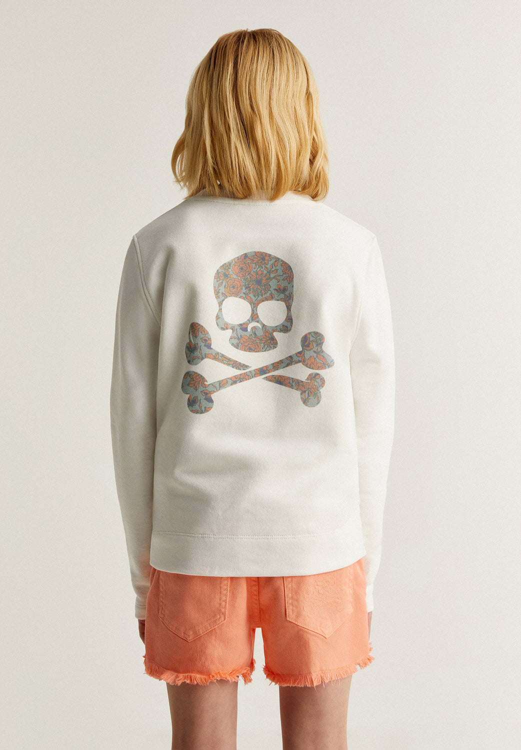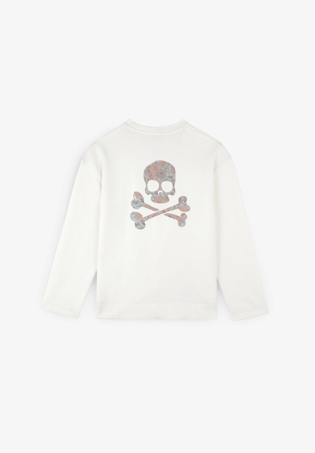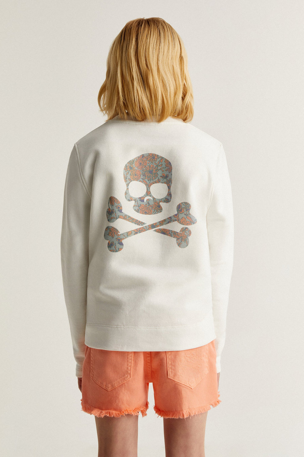 Sudadera con detalle de nudo en parte delantera y print trasero de calavera.