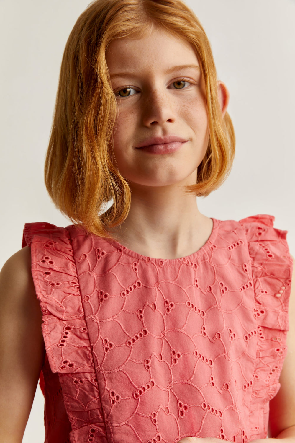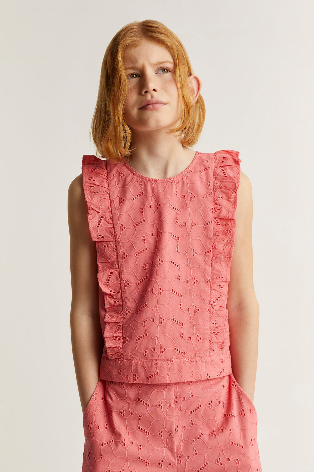 Top troquelado con detalle de volantes.