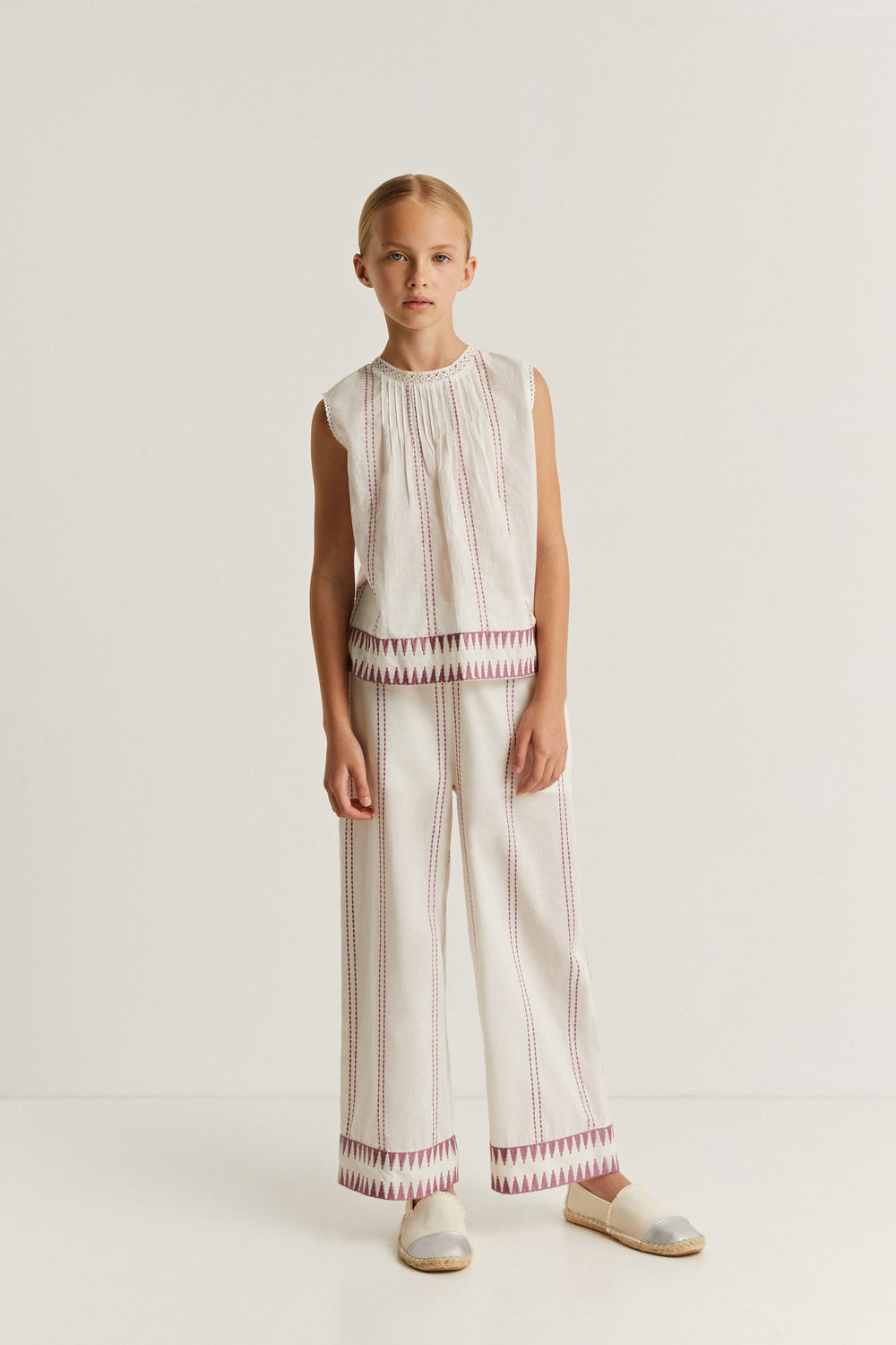 PANTALÓN DETALLES BORDADOS CONTRASTE
