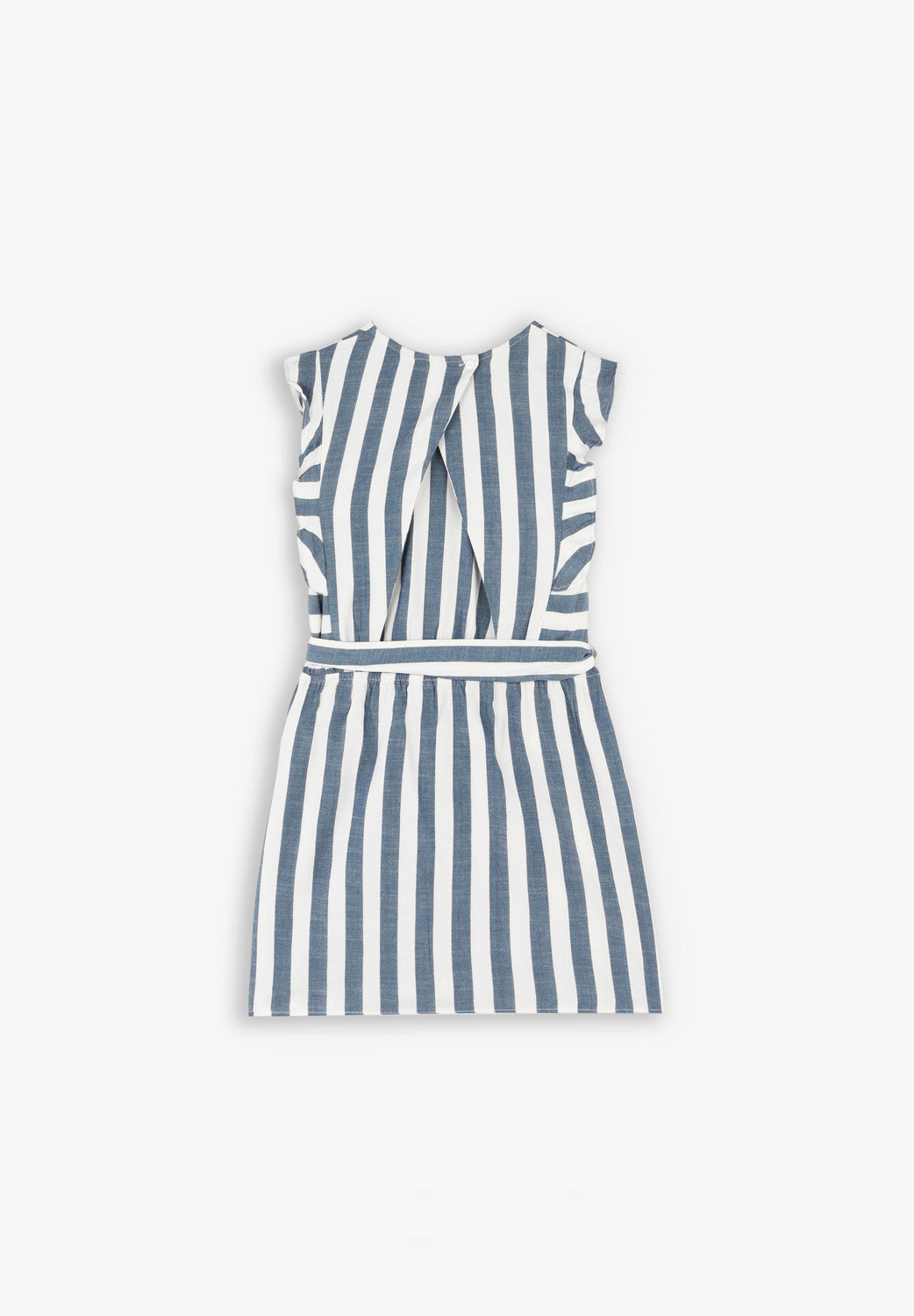 Vestido de rayas con detalle de abertura trasera en espalda.