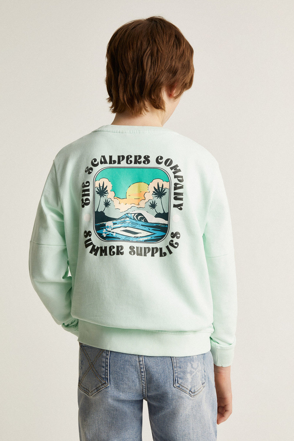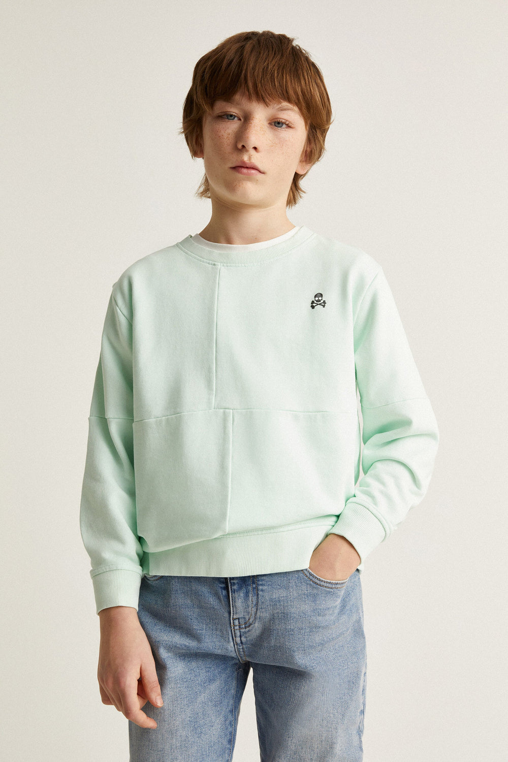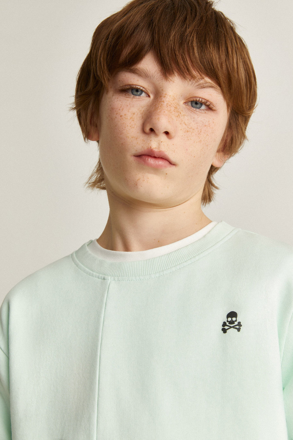 Sudadera con detalle de cortes con calavera en pecho en print high density.