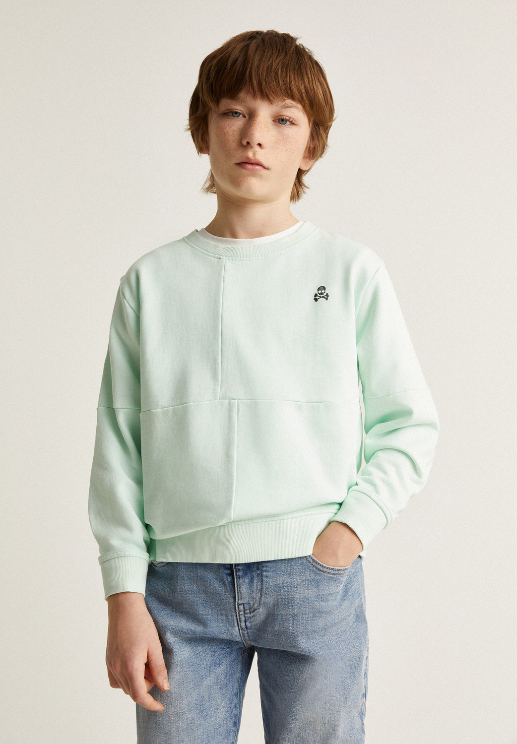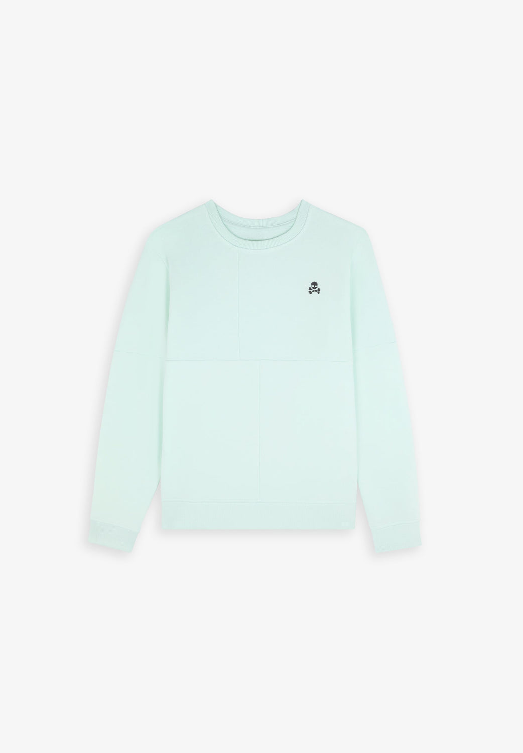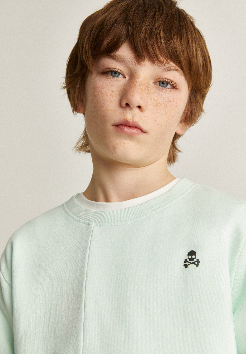 Sudadera con detalle de cortes con calavera en pecho en print high density.