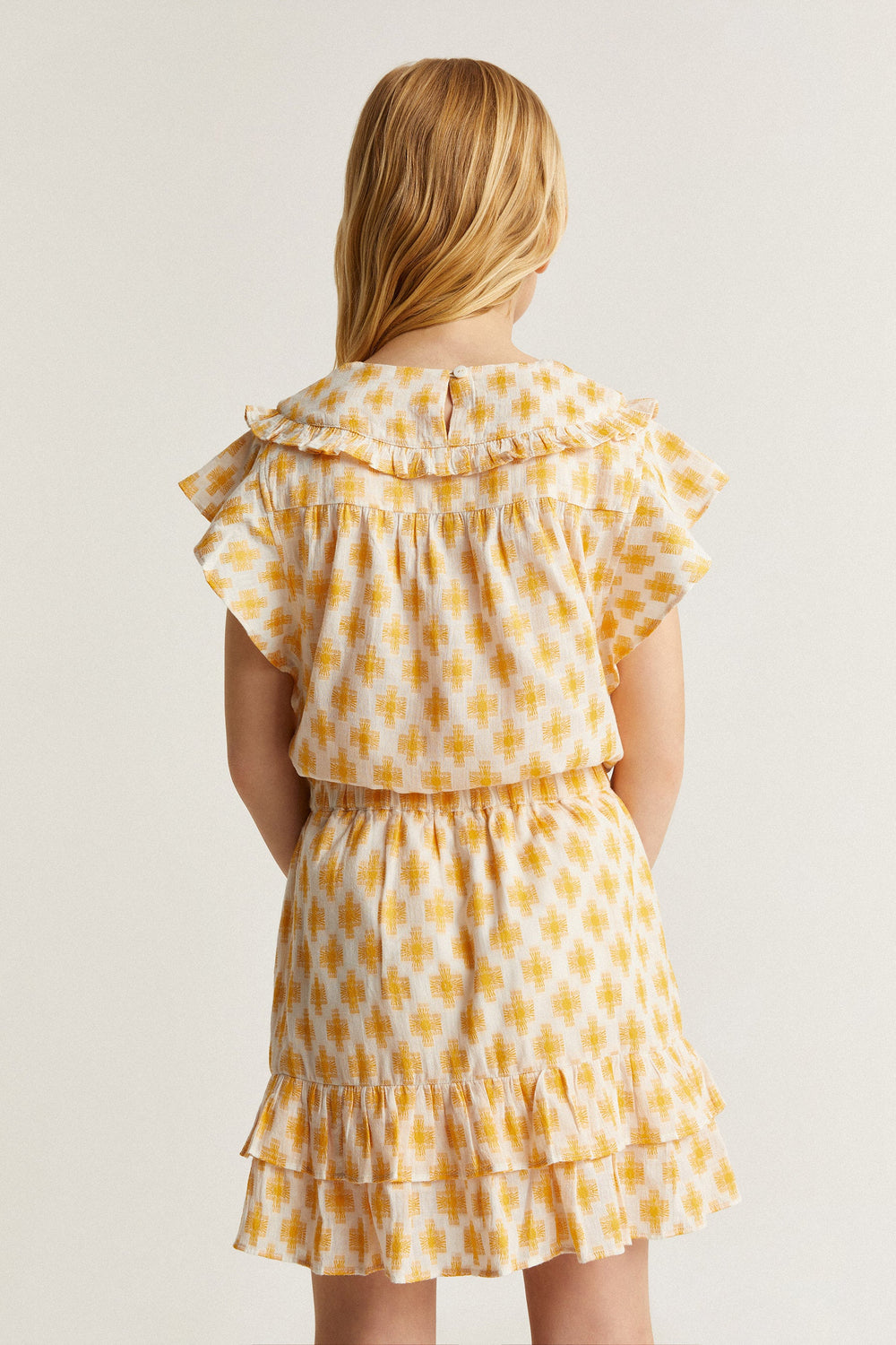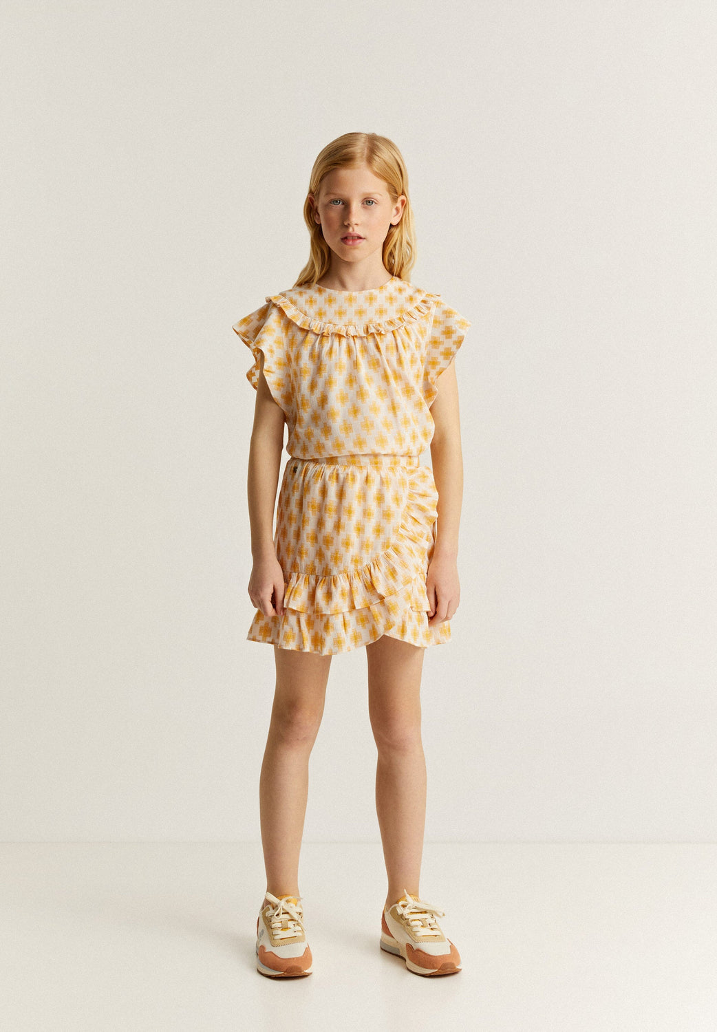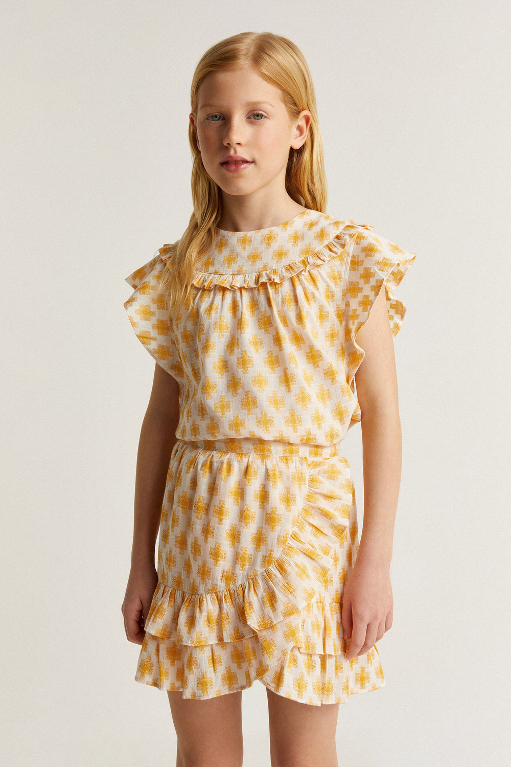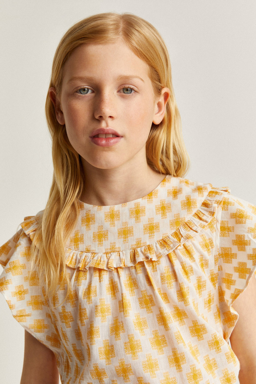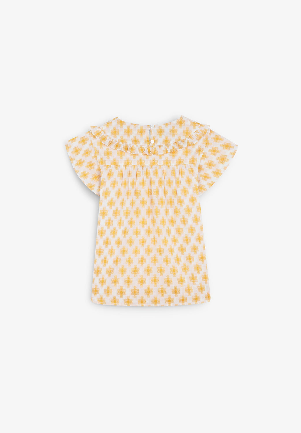 Blusa estampada con volante en canesú.