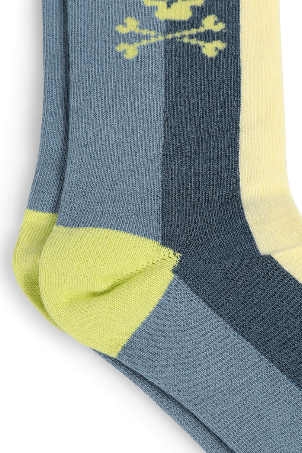 Calcetines de rayas tricolor con detalle de calavera lateral a contraste.