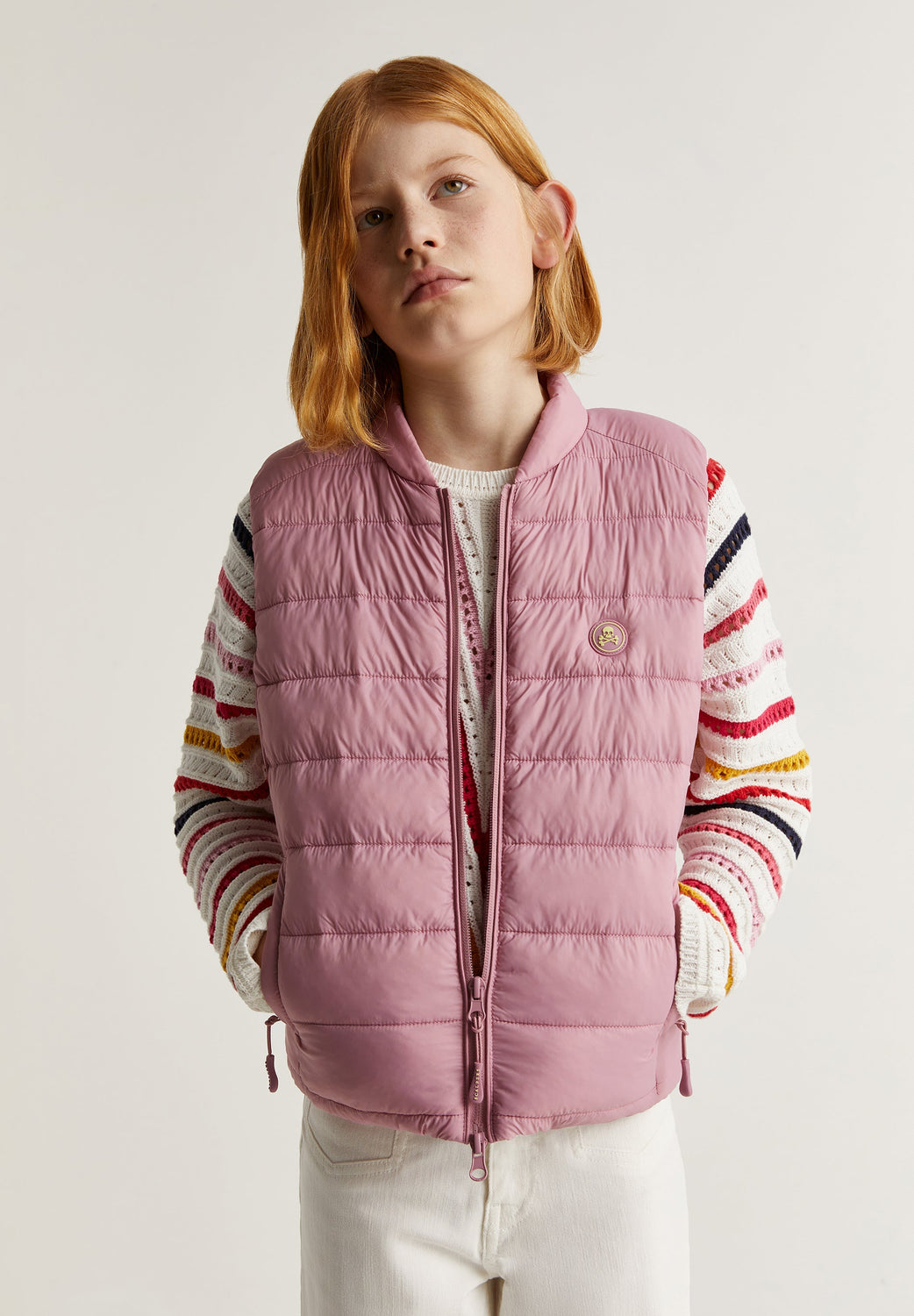 Chaleco acolchado con parche engomado en pecho de calavera a contraste.