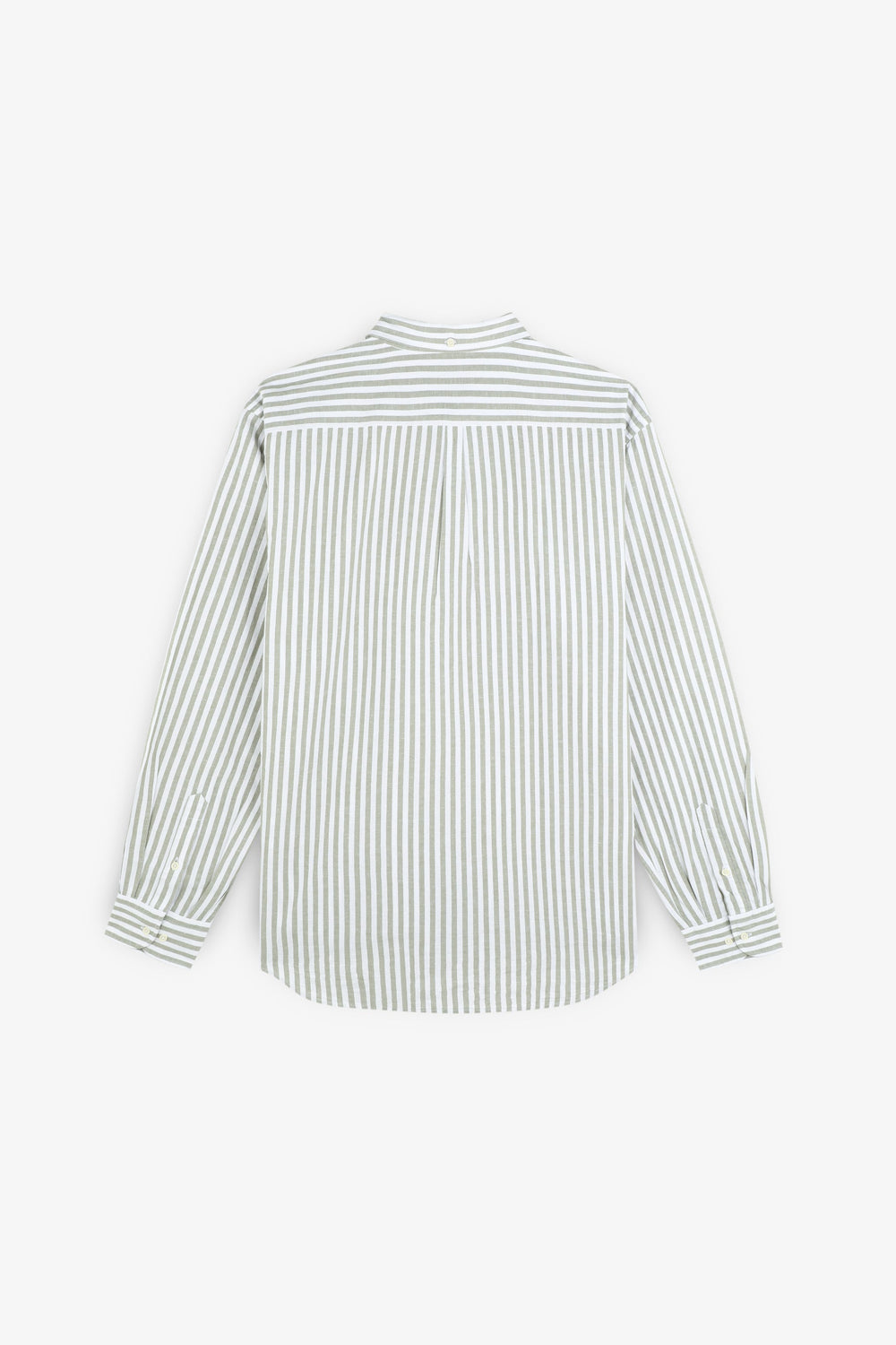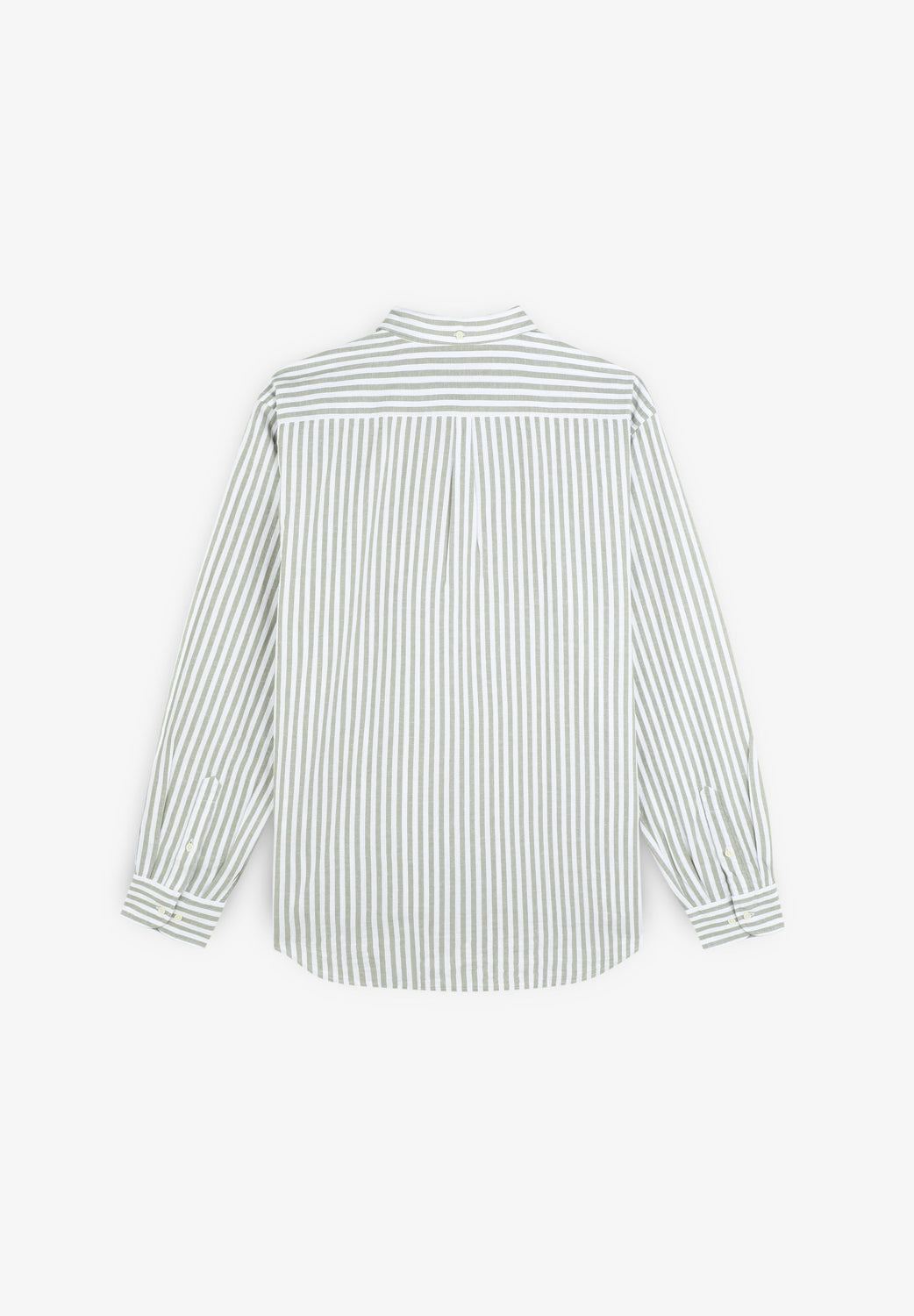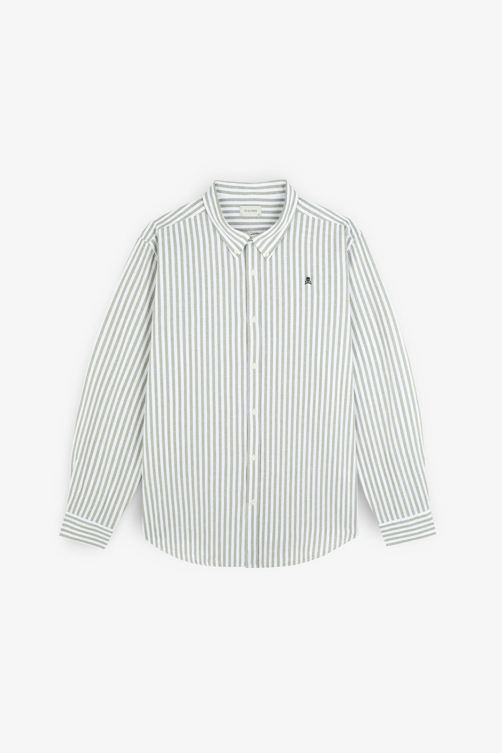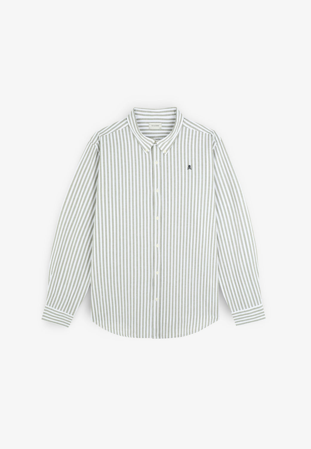 Camisa de rayas con calavera bordada a contraste en pecho.