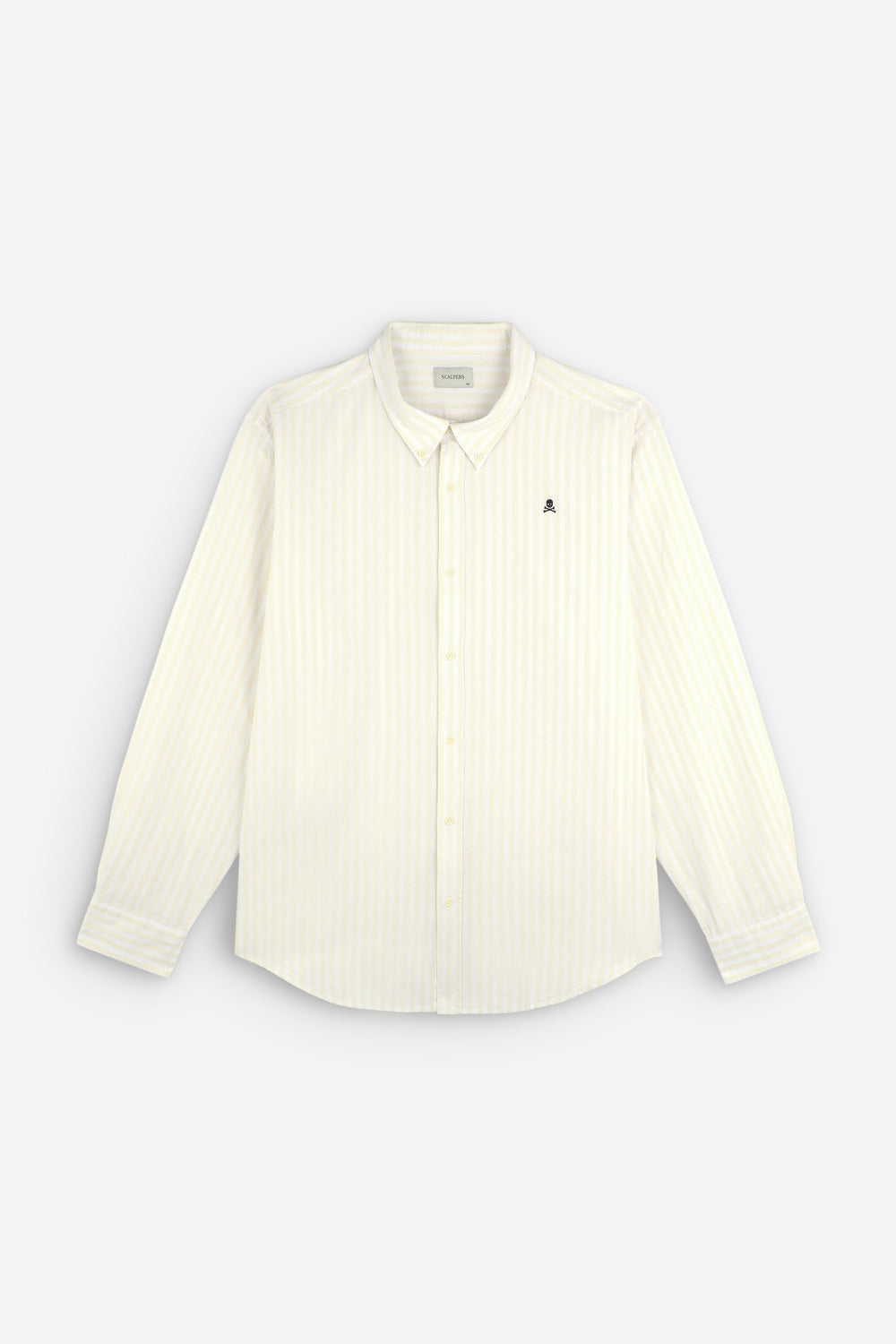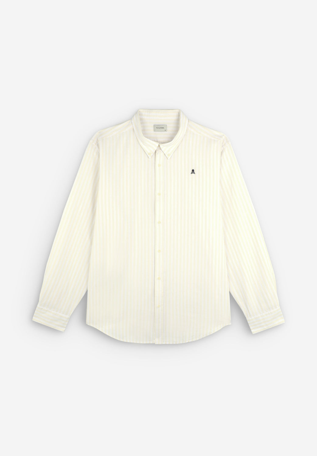 Camisa de rayas con calavera bordada a contraste en pecho.