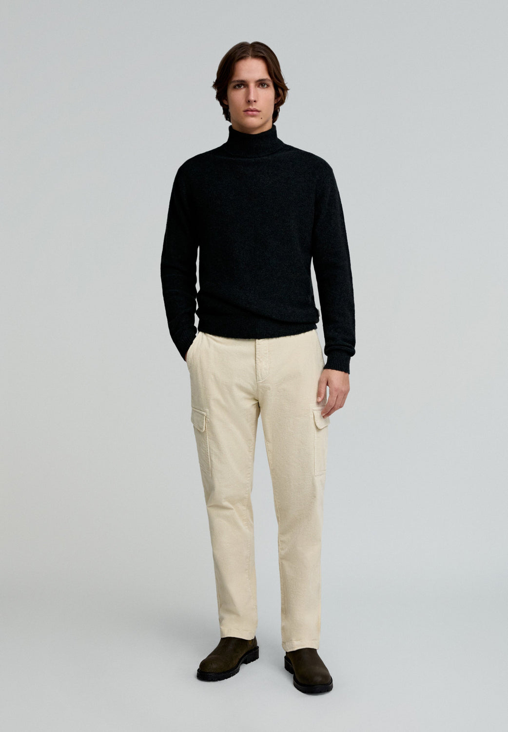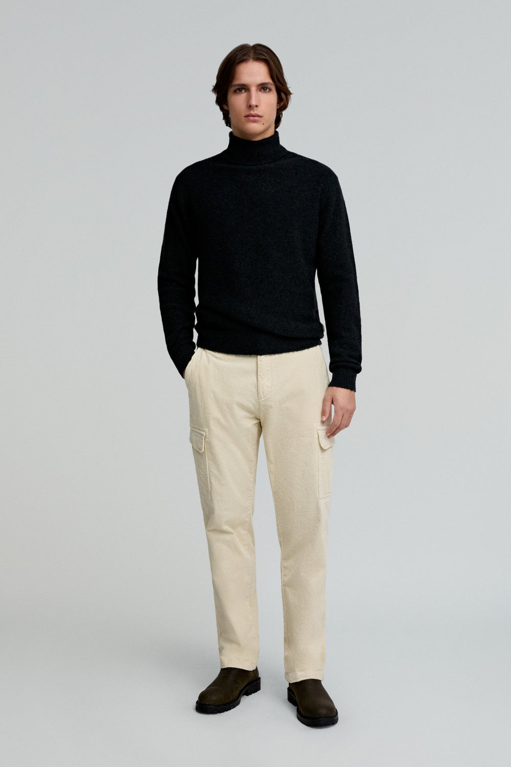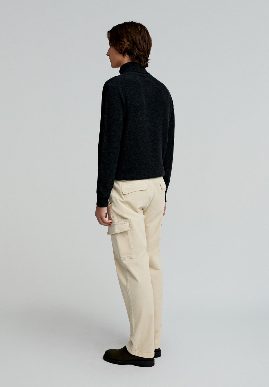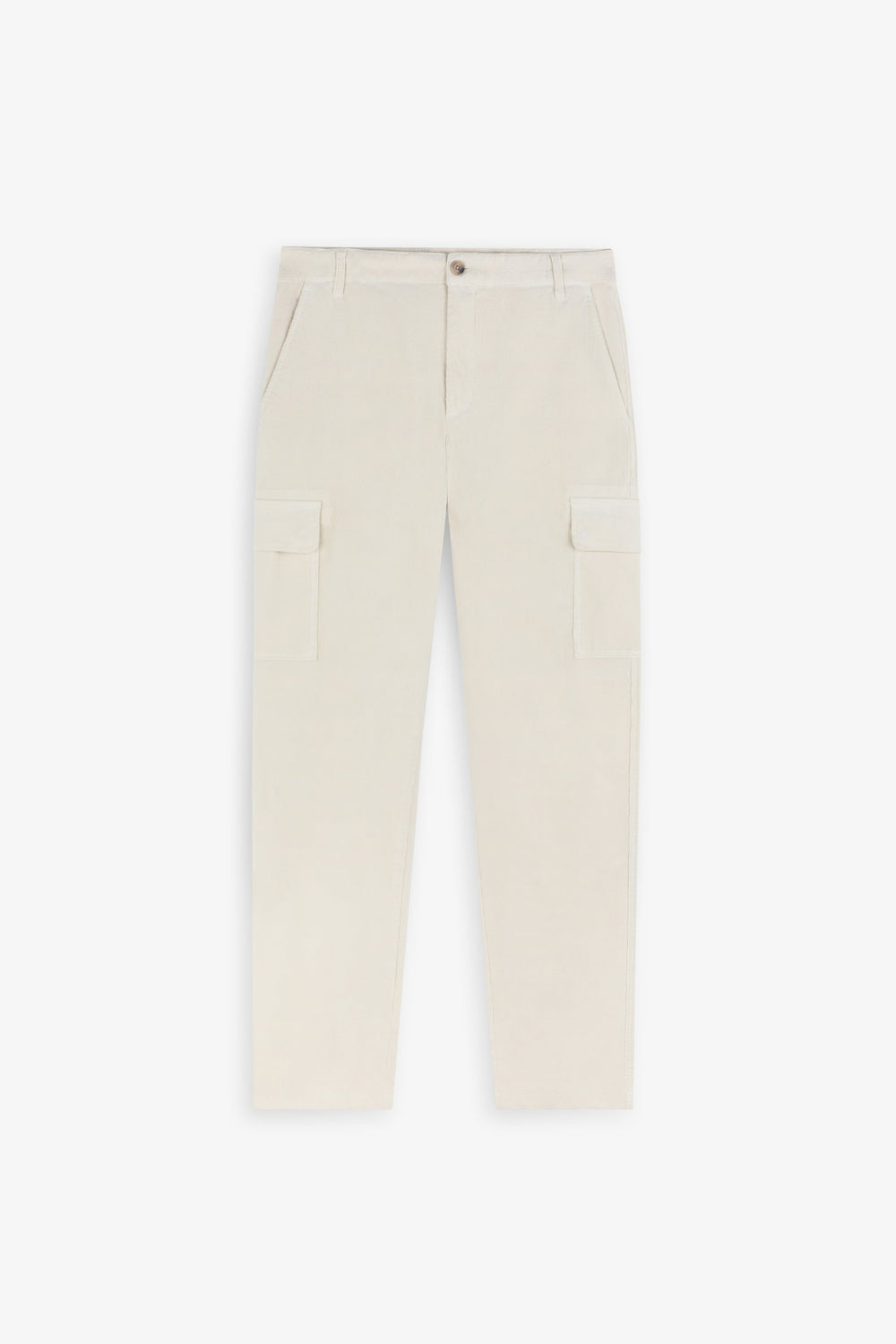 Pantalón cargo de pana confeccionado en algodón ligeramente elástico. Regular fit, cierre con botón y cremallera y bolsillos. Trabillas en cintura y bolsillos con tapeta en pernera.