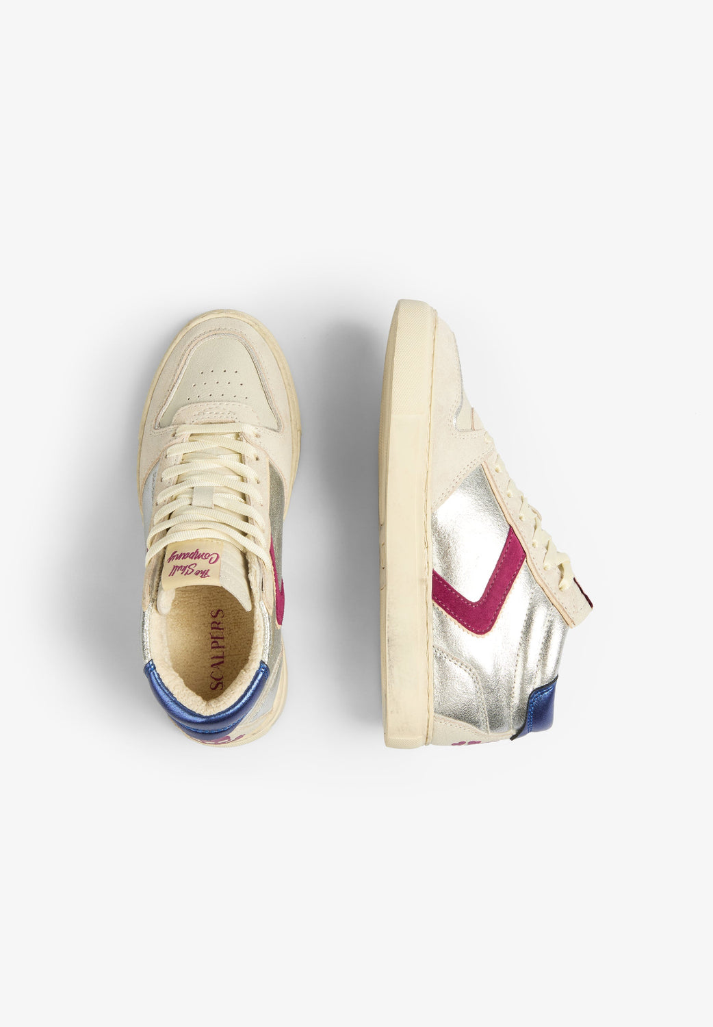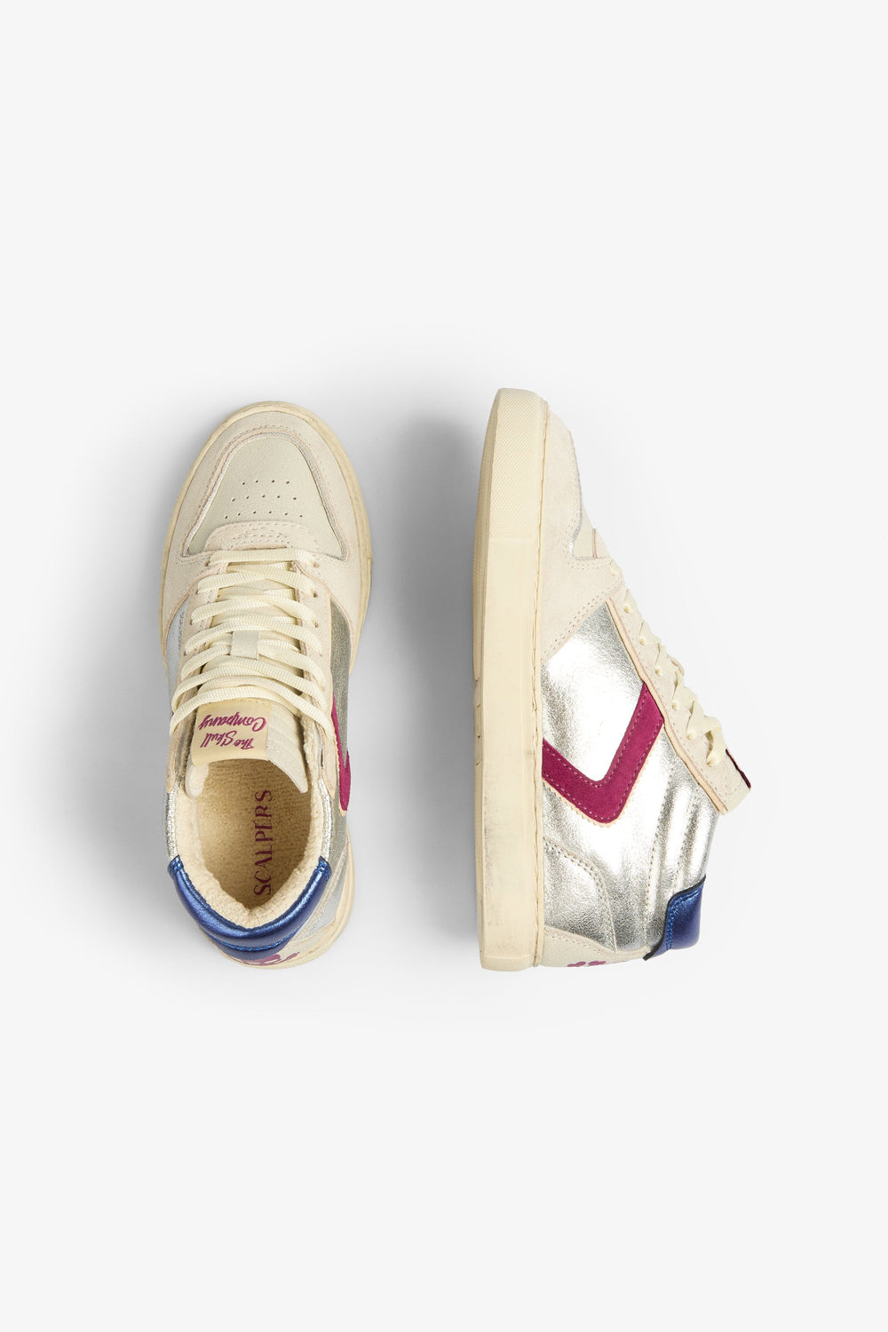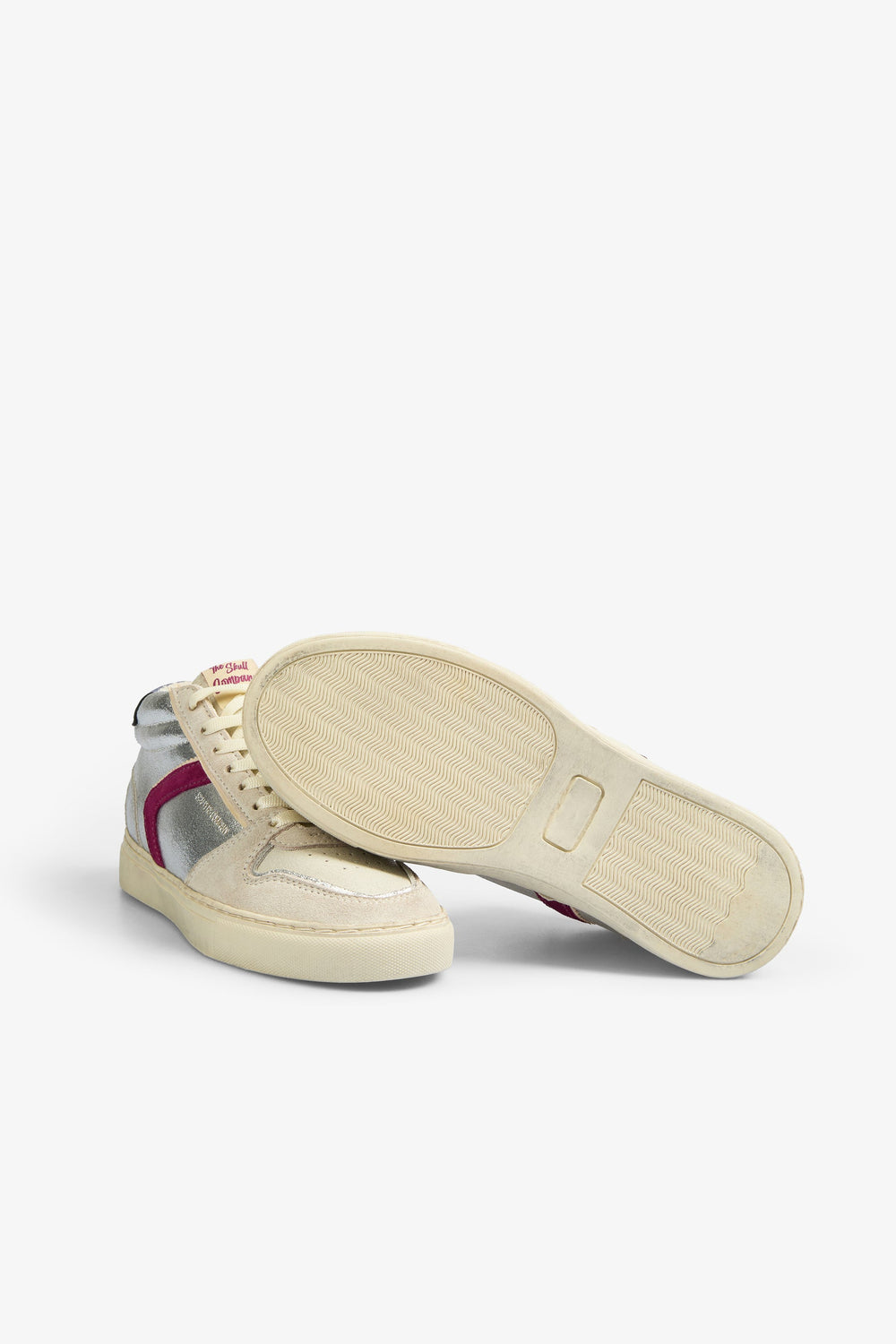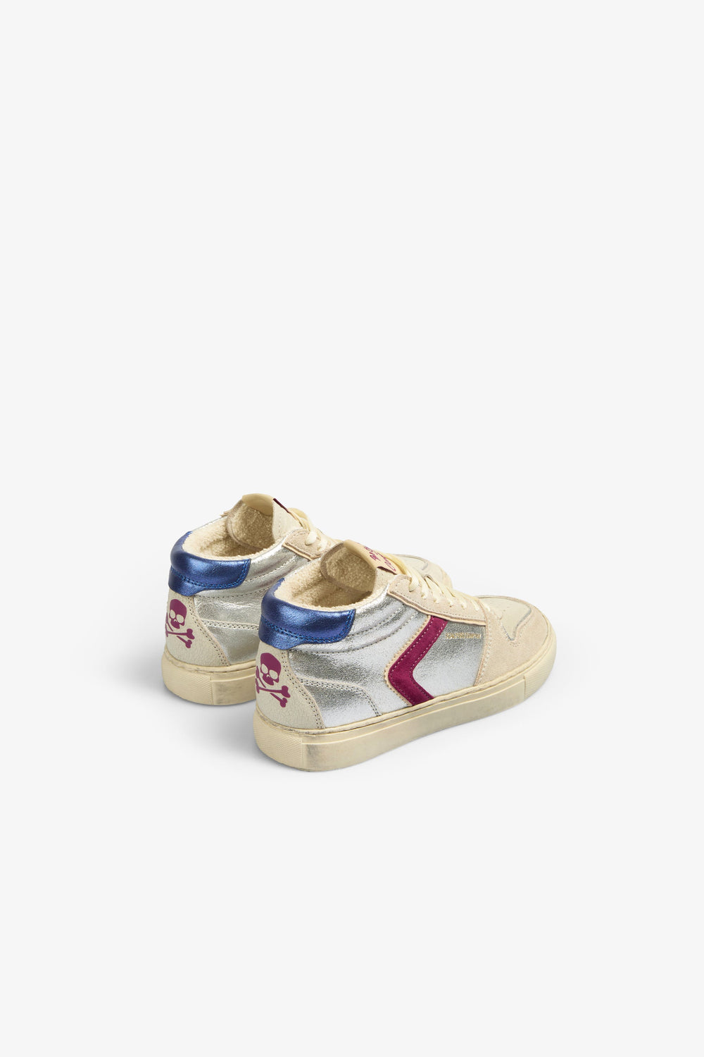 Sneakers tipo bota metalizadas confeccionadas en piel. Cierre con cordones y suela de goma. Detalle a contraste y calavera trasera.