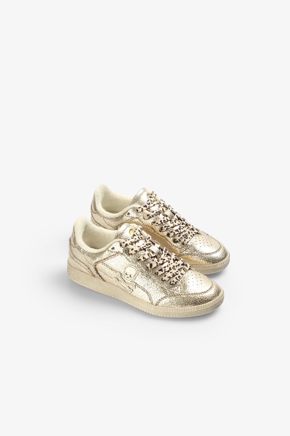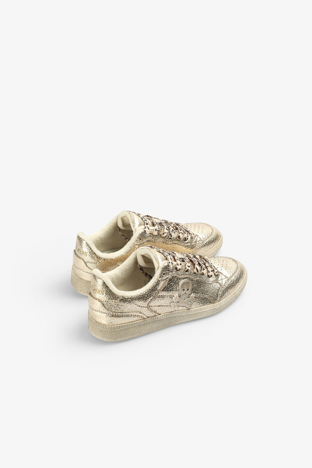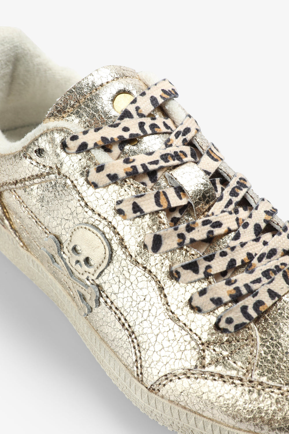 Sneakers metalizadas confeccionadas en 100% piel. Cierre con cordones de animal print, suela de goma y detalle de calavera en relieve.