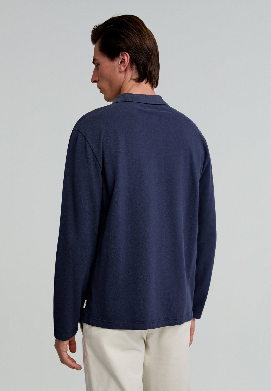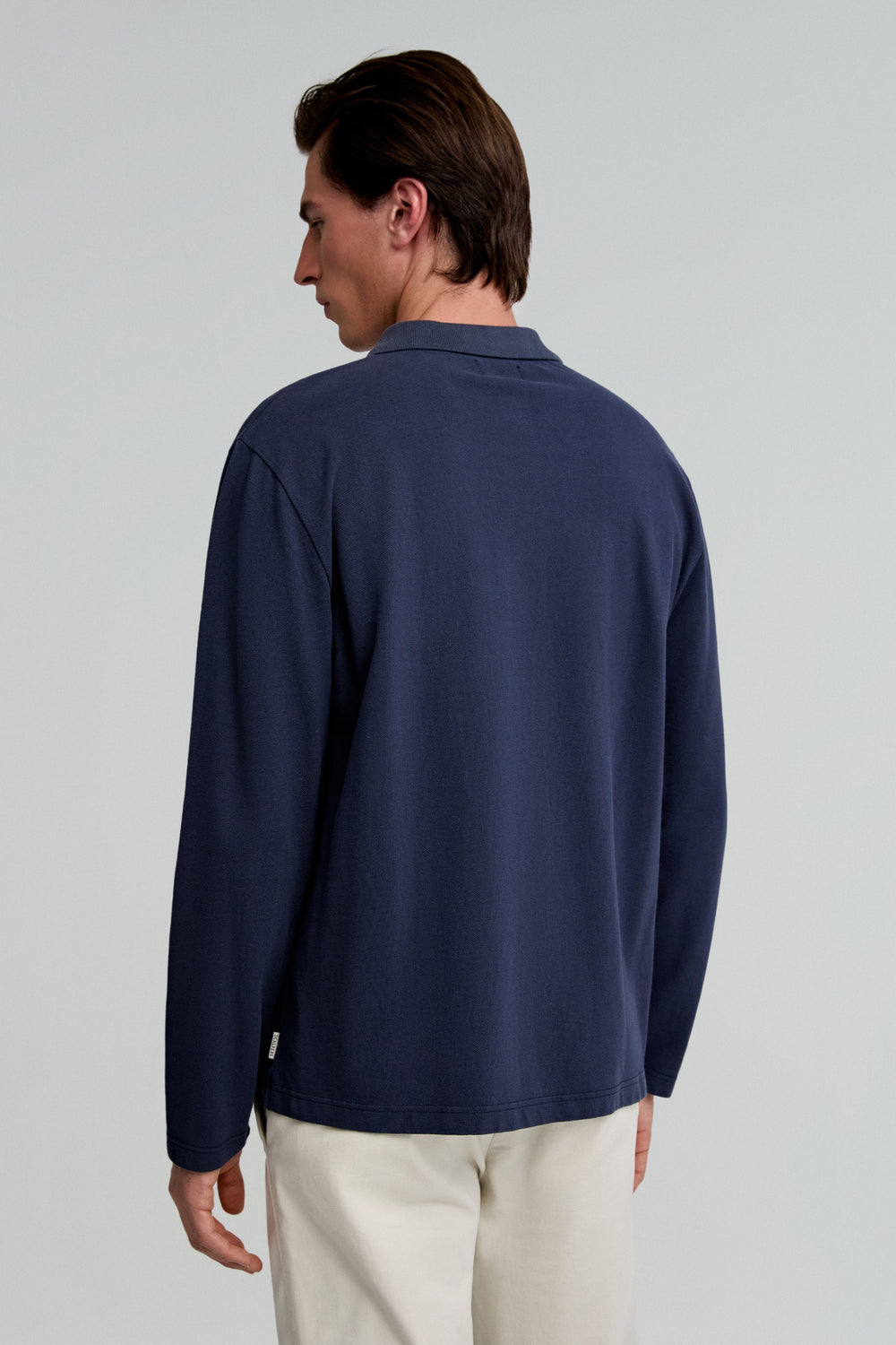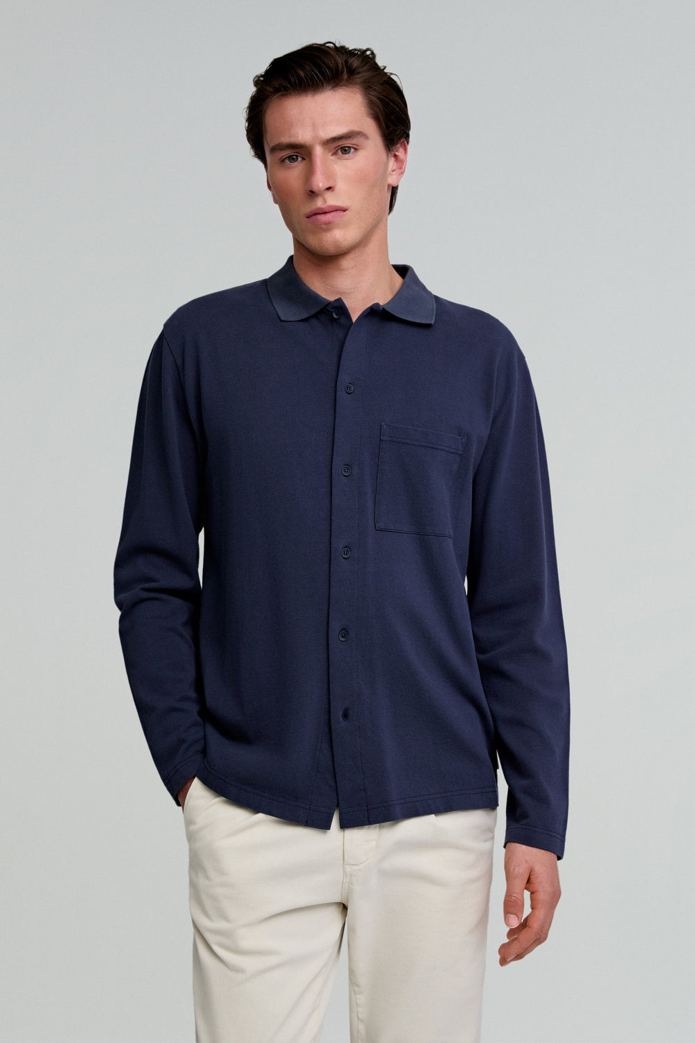 Polo confeccionado en 100% algodón BCI. Regular fit, cuello clásico y cierre con botones. Manga larga y bolsillo en pecho.