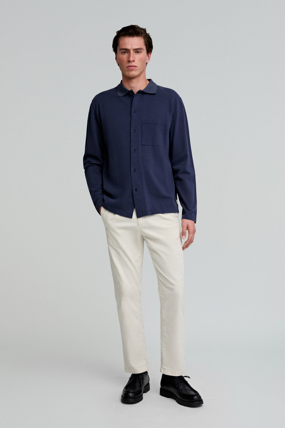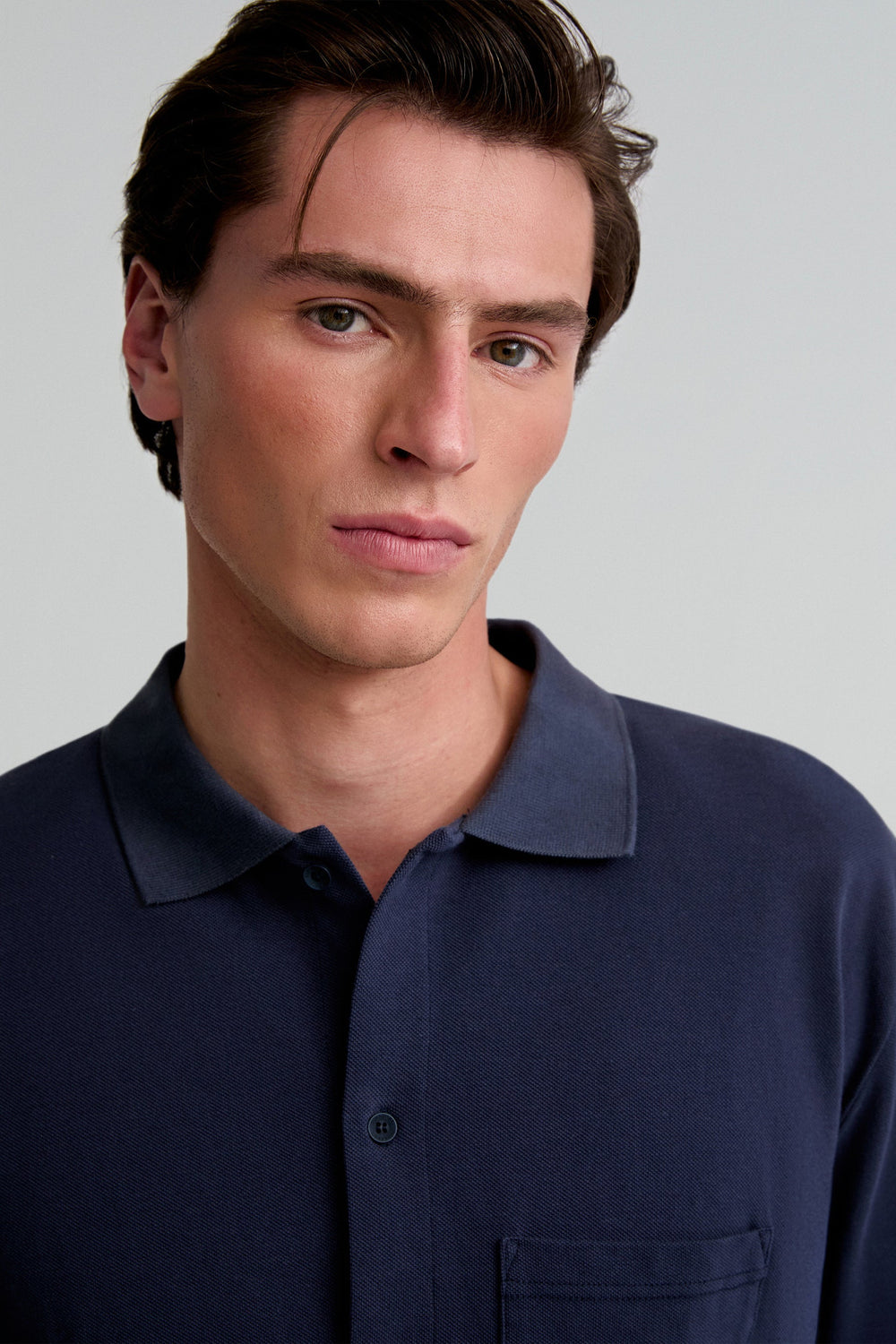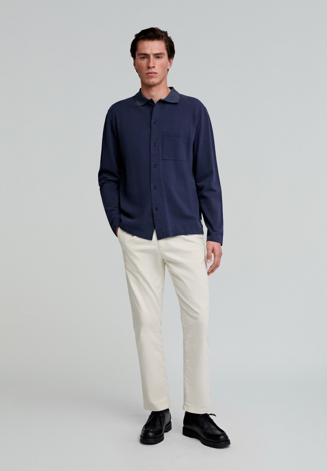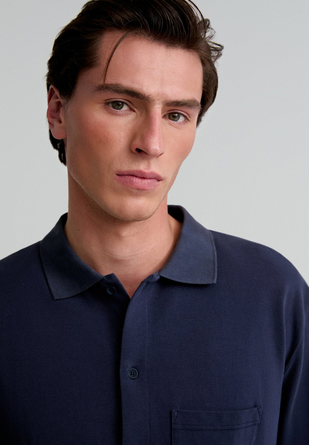 Polo confeccionado en 100% algodón BCI. Regular fit, cuello clásico y cierre con botones. Manga larga y bolsillo en pecho.