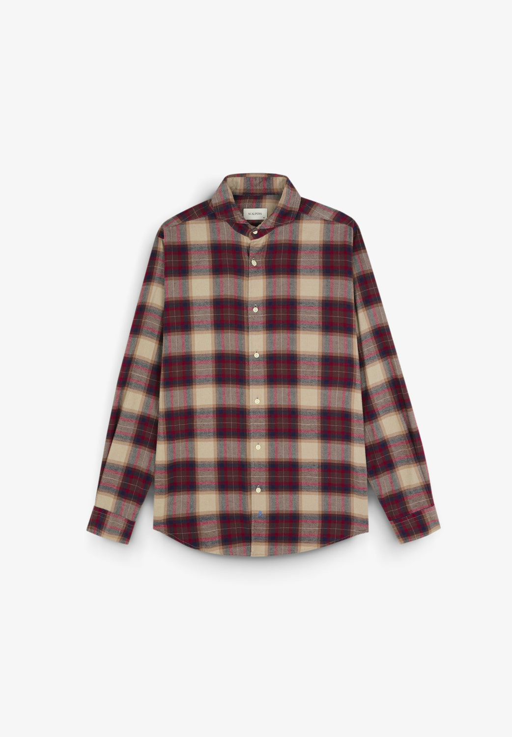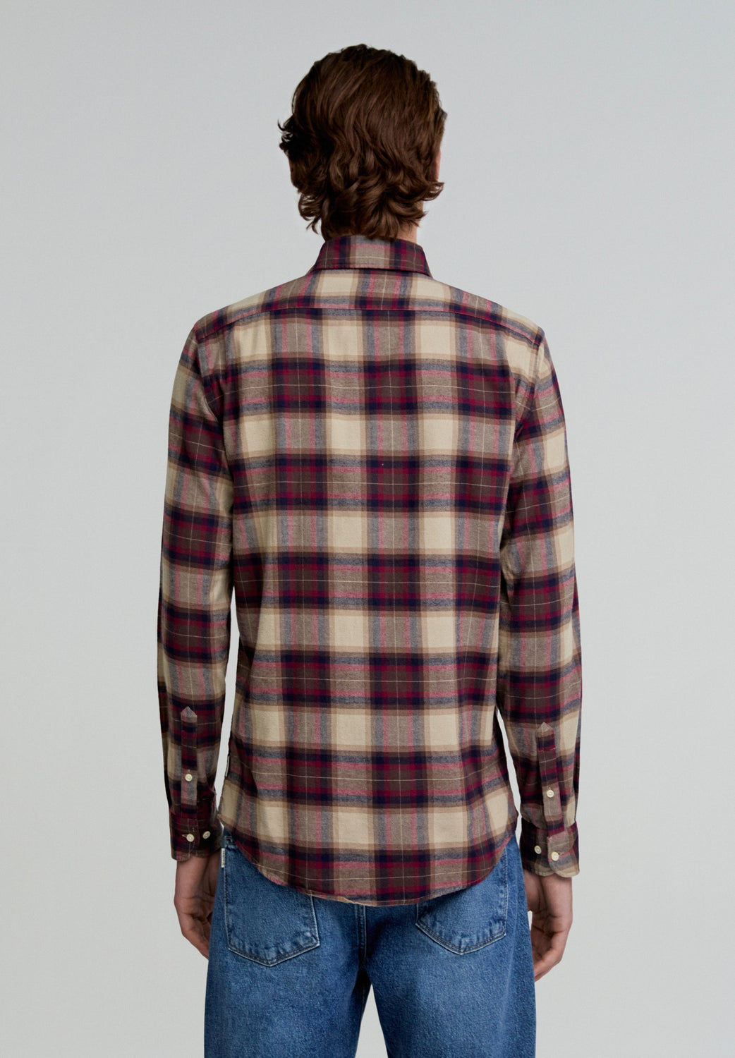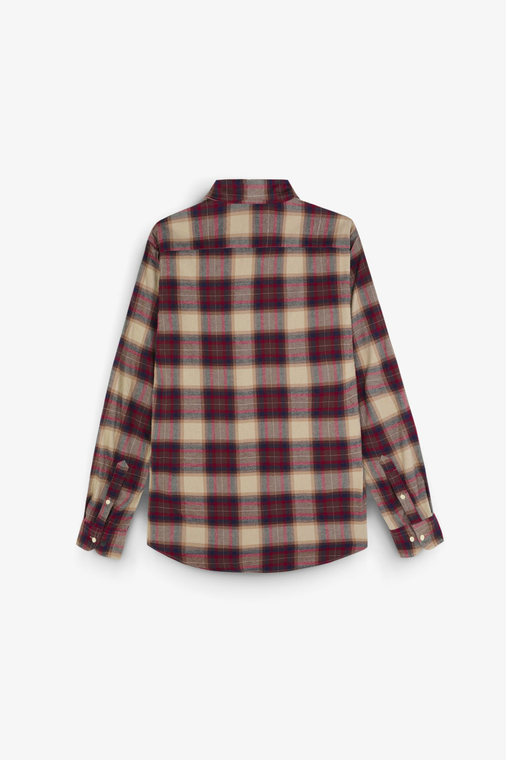 Camisa de cuadros tartán confeccionada en 100% algodón. Regular fit, cuello italiano y cierre con botones. Manga larga terminada en puño con botones.
