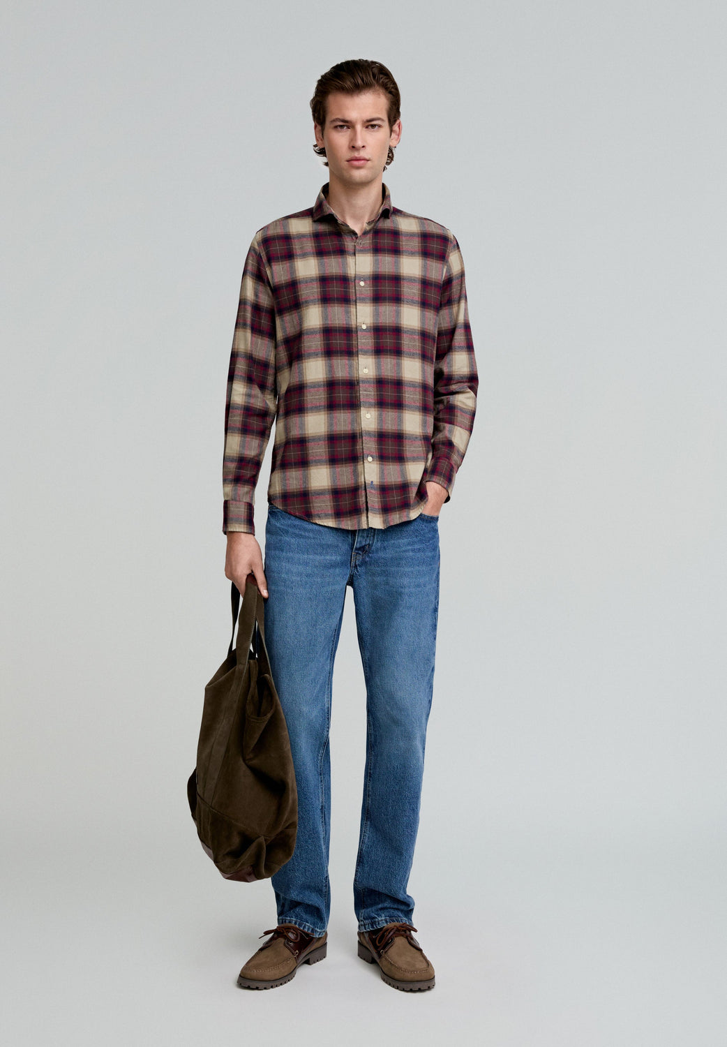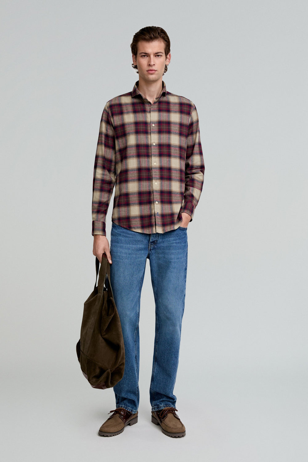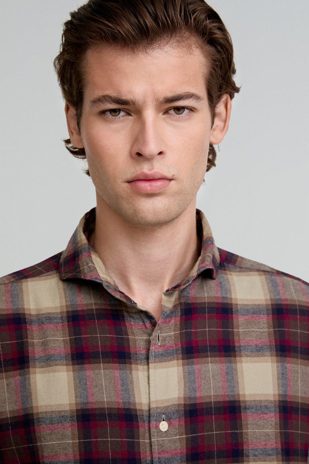 Camisa de cuadros tartán confeccionada en 100% algodón. Regular fit, cuello italiano y cierre con botones. Manga larga terminada en puño con botones.