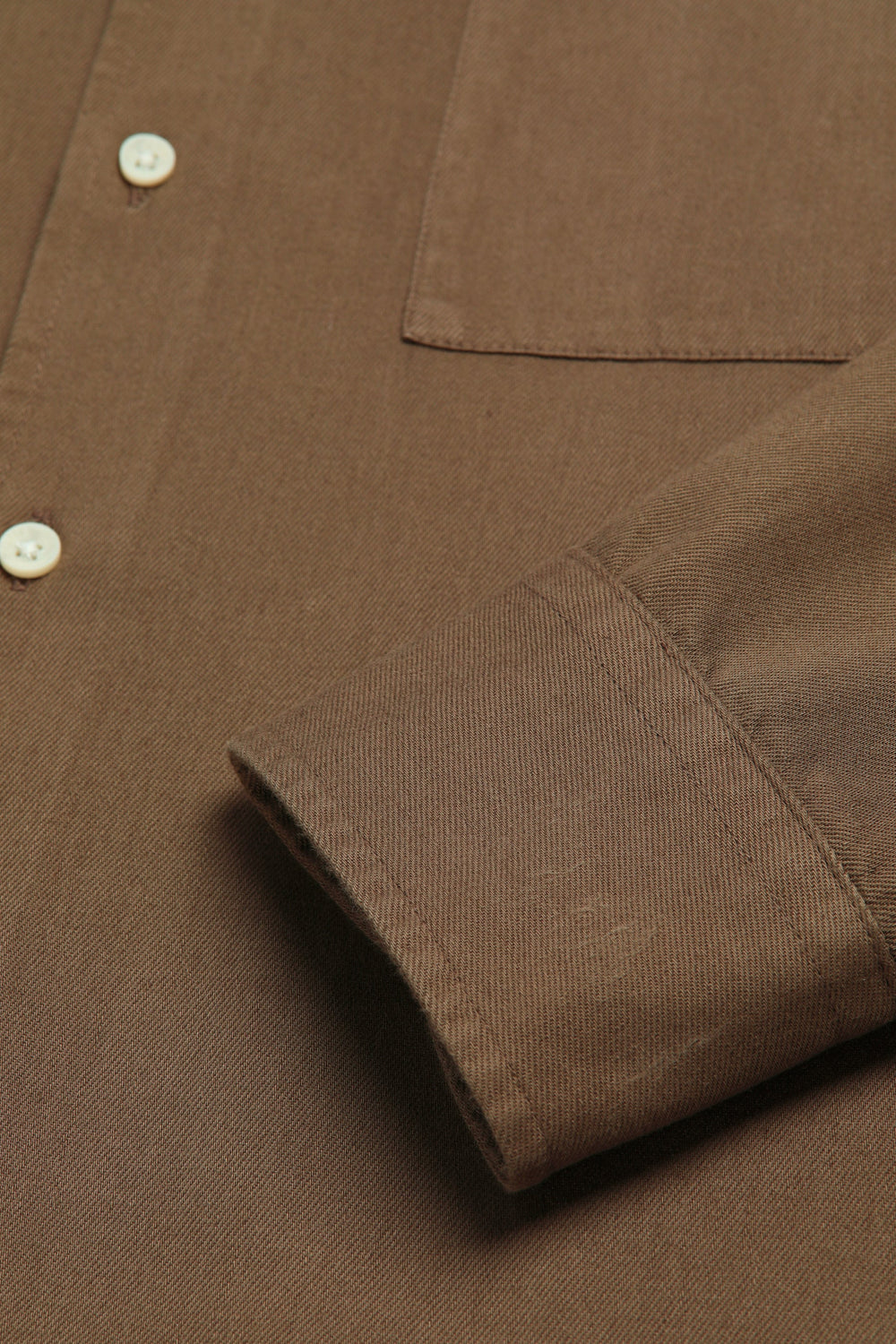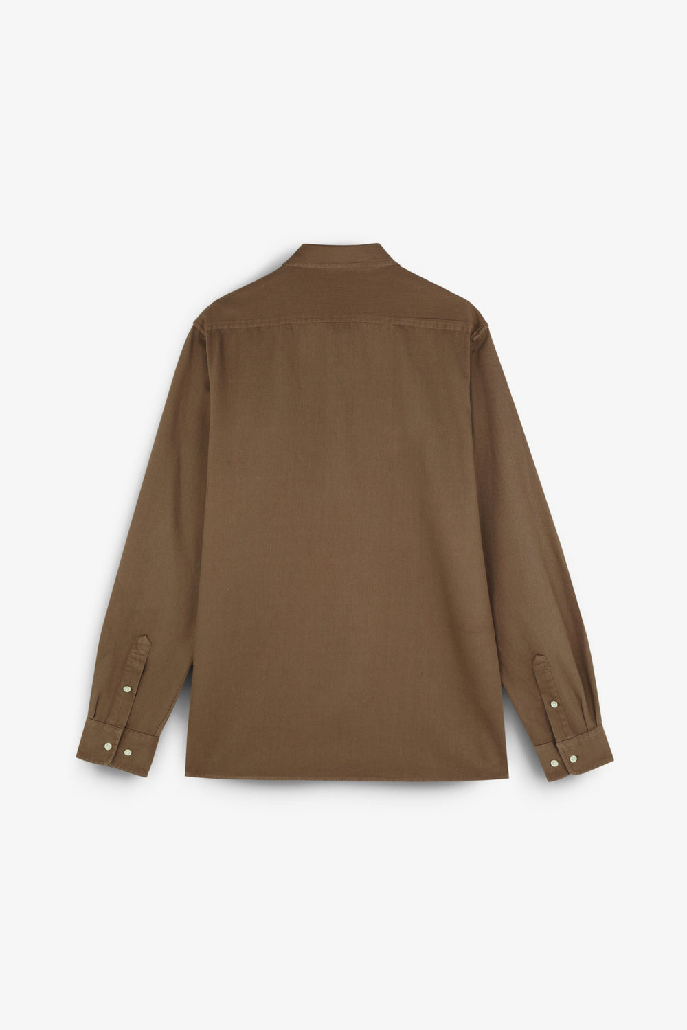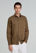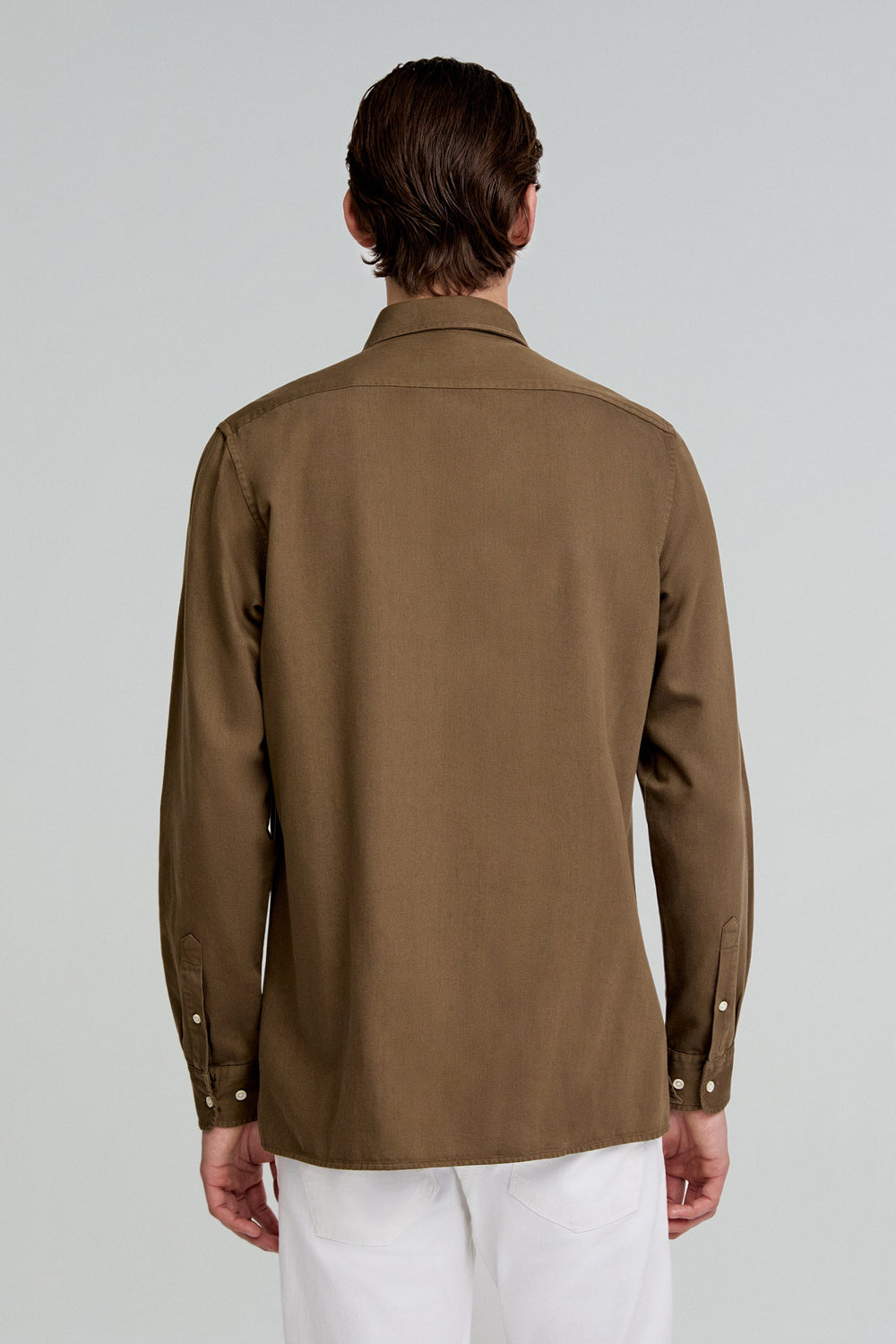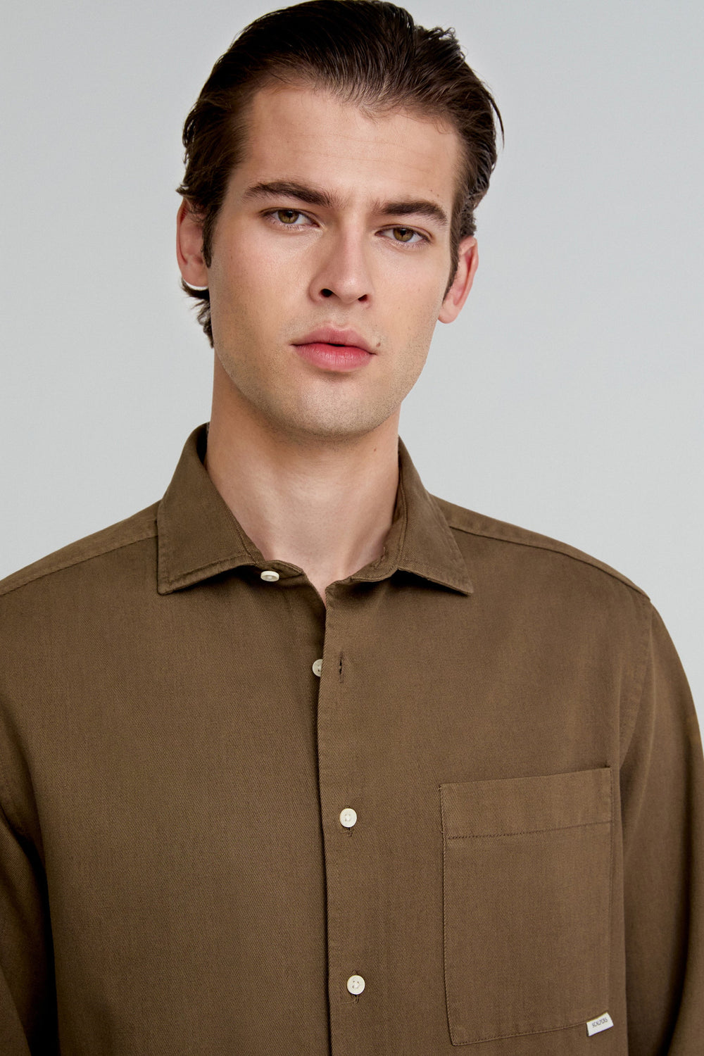 Camisa confeccionada en algodón y lino. Regular fit, cuello clásico y cierre con botones. Manga larga terminada en puño con botón y cierre con botones. Detalle de etiqueta.
