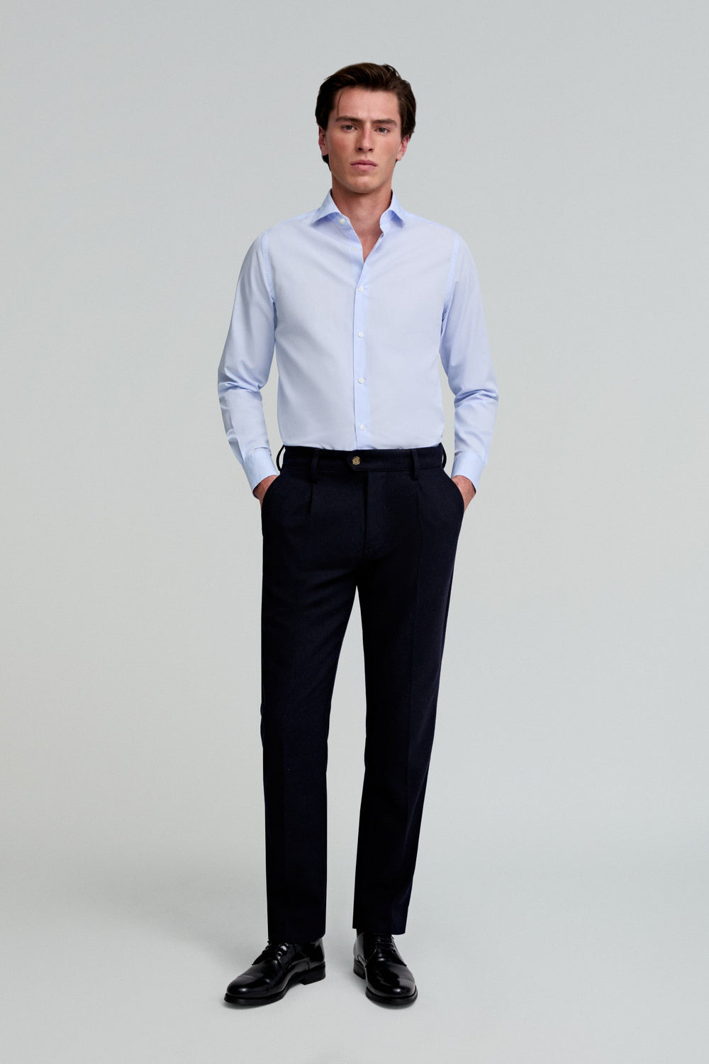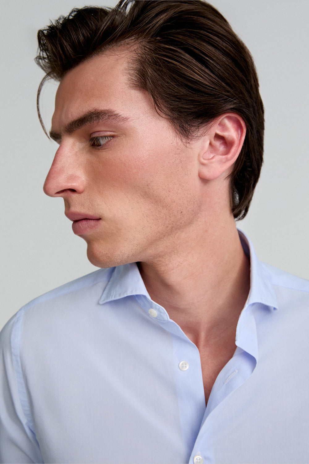 Camisa de vestir confeccionada en 100% algodón. Slim fit, cuello clásico y cierre con botones. Manga larga terminada en puño.