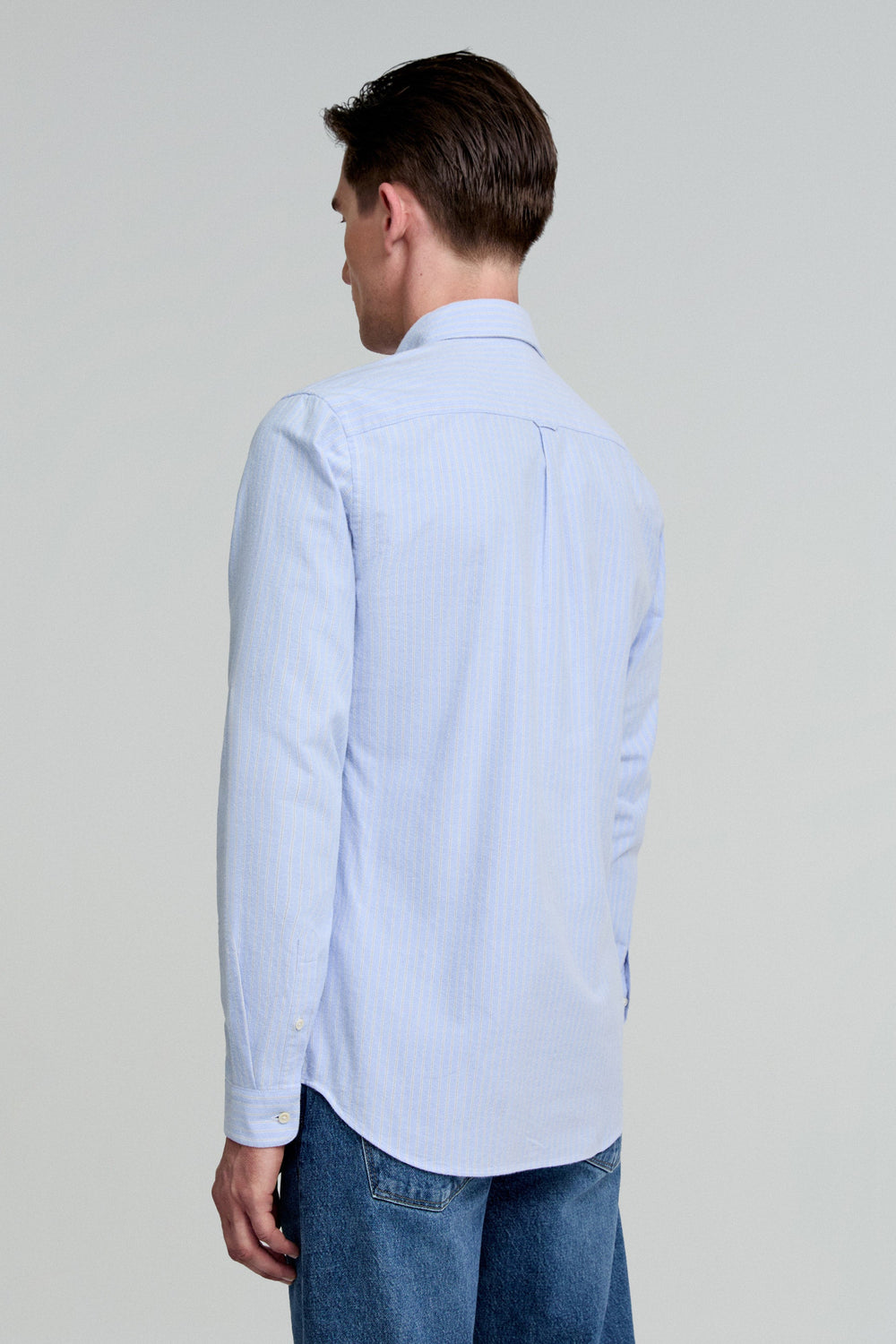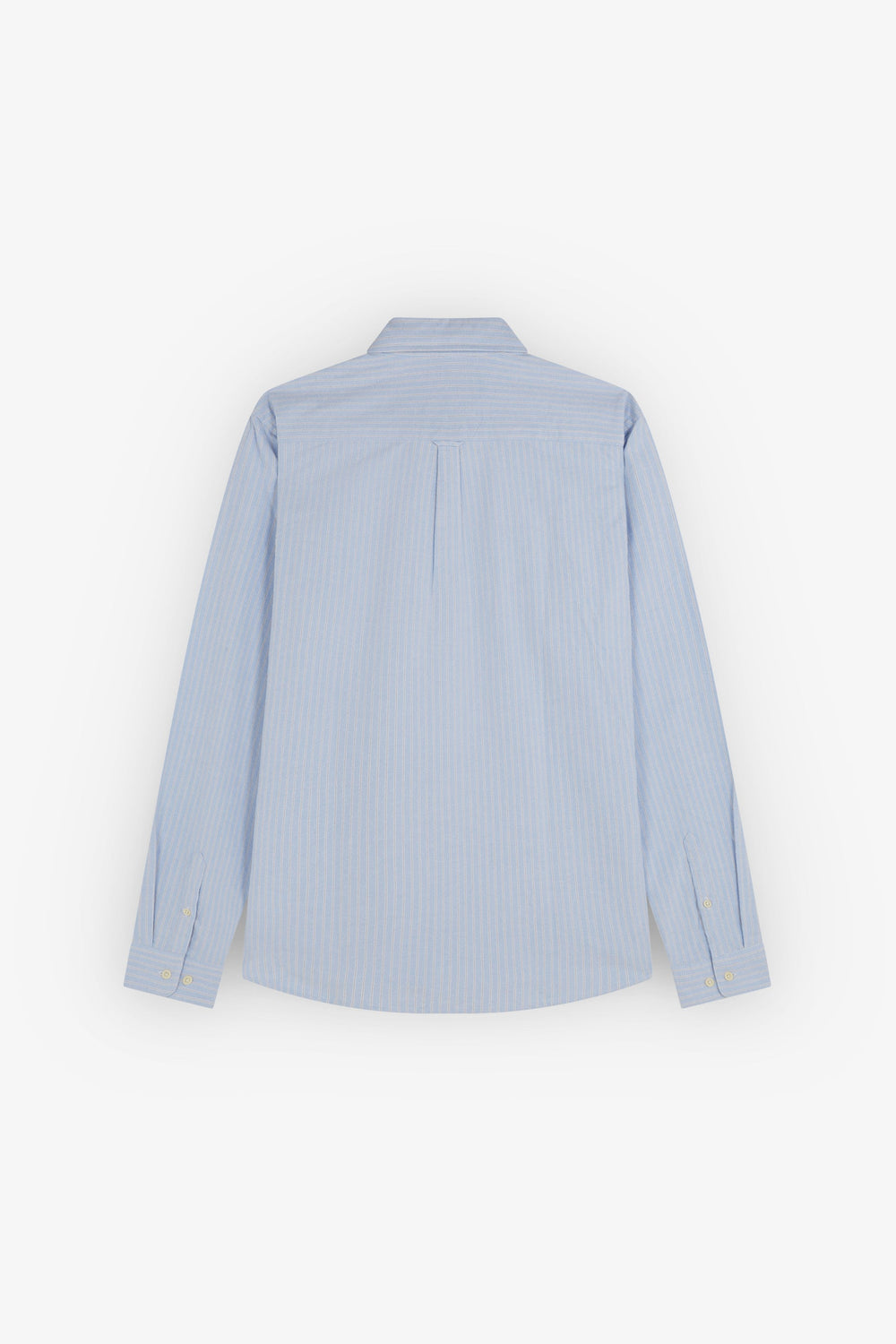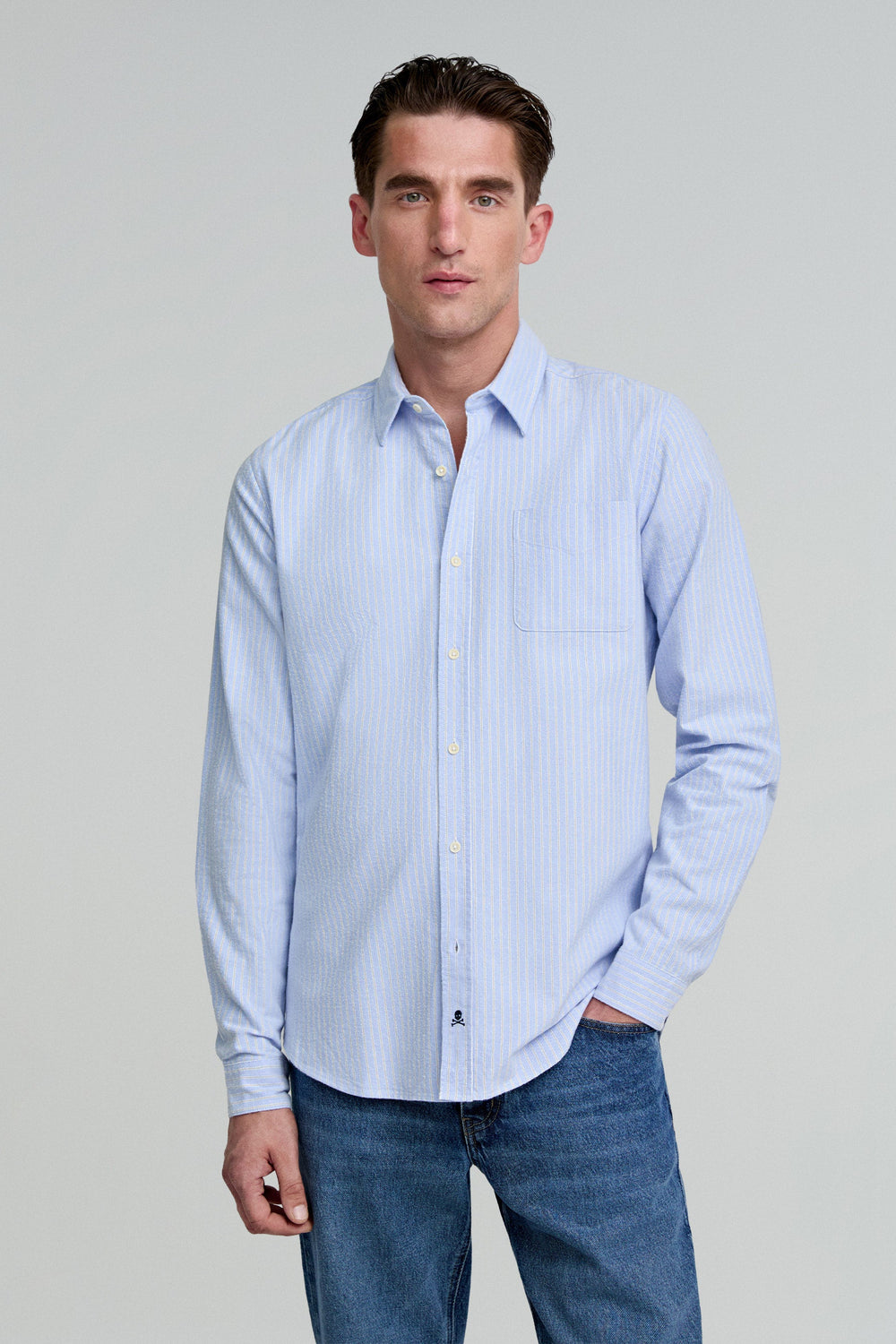 Camisa de rayas confeccionada en 100% algodón. Regular fit, cuello clásico y cierre con botones. Manga larga terminada en puño con botones y bolsillo en el pecho. Calavera a contraste en tapeta.