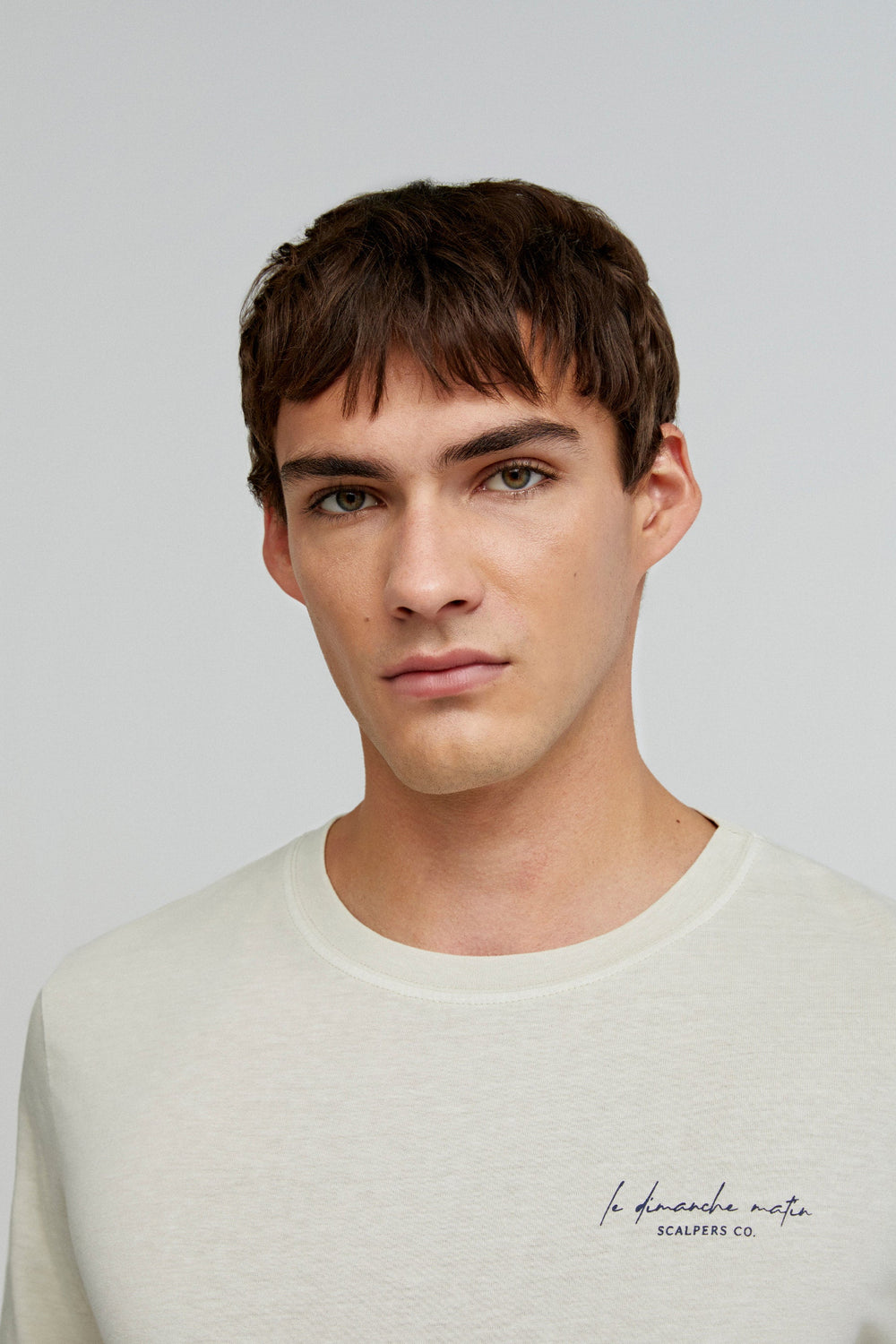Camiseta confeccionada en 100% algodón BCI. Regular fit, cuello redondo y manga corta. Print en pecho e ilustración en espalda.
