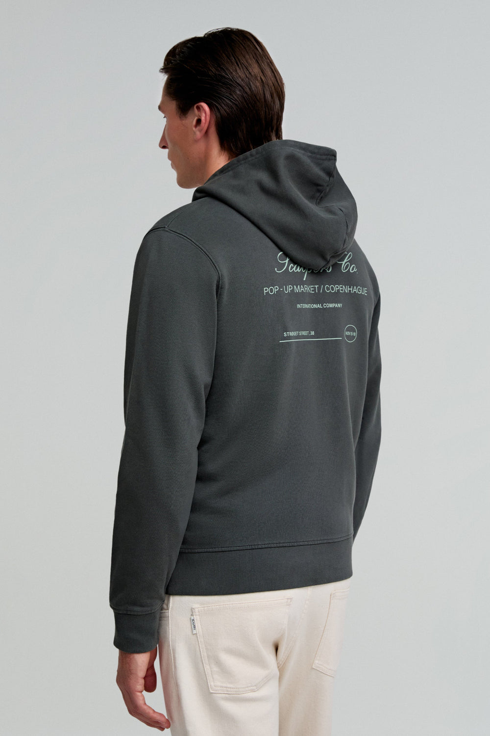 Sudadera confeccionada en 100% algodón BCI. Regular fit, cuello con capucha y manga larga. Logo delantero y texto trasero.