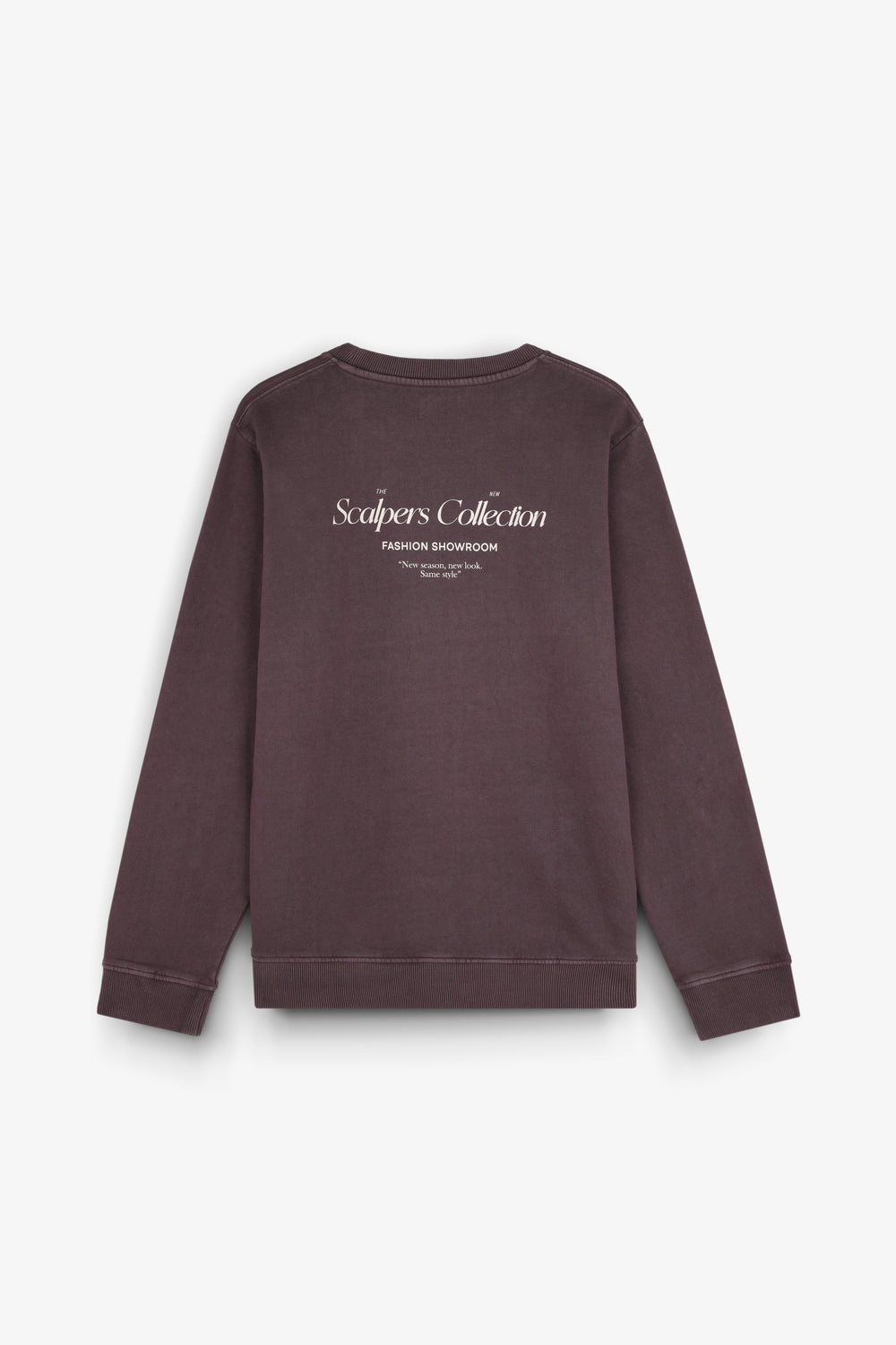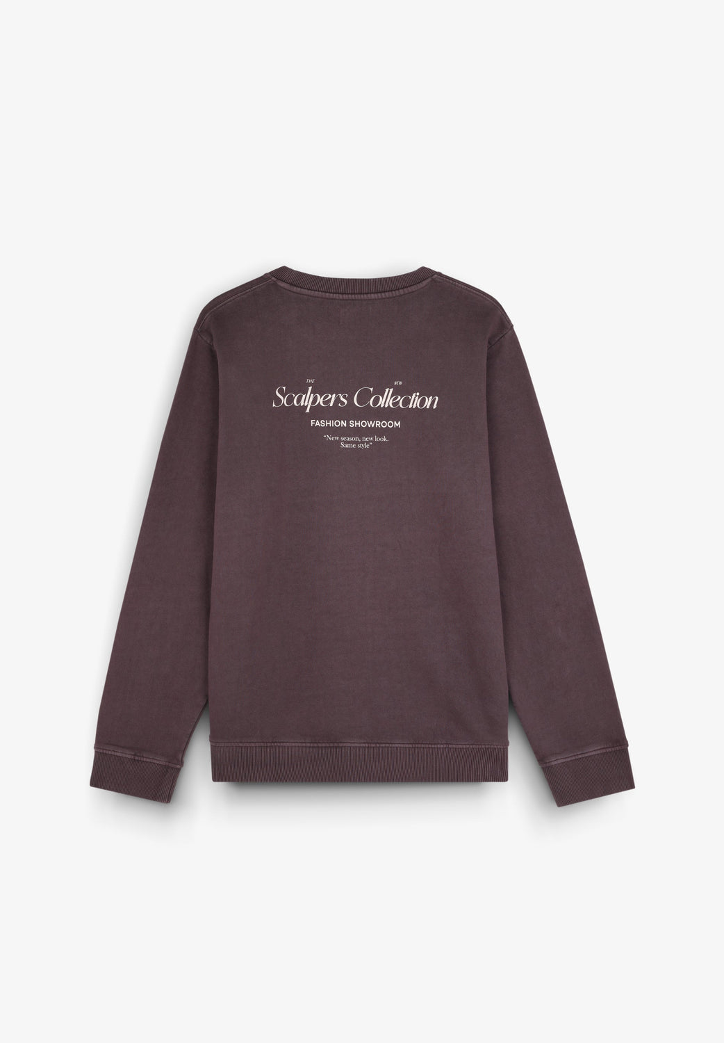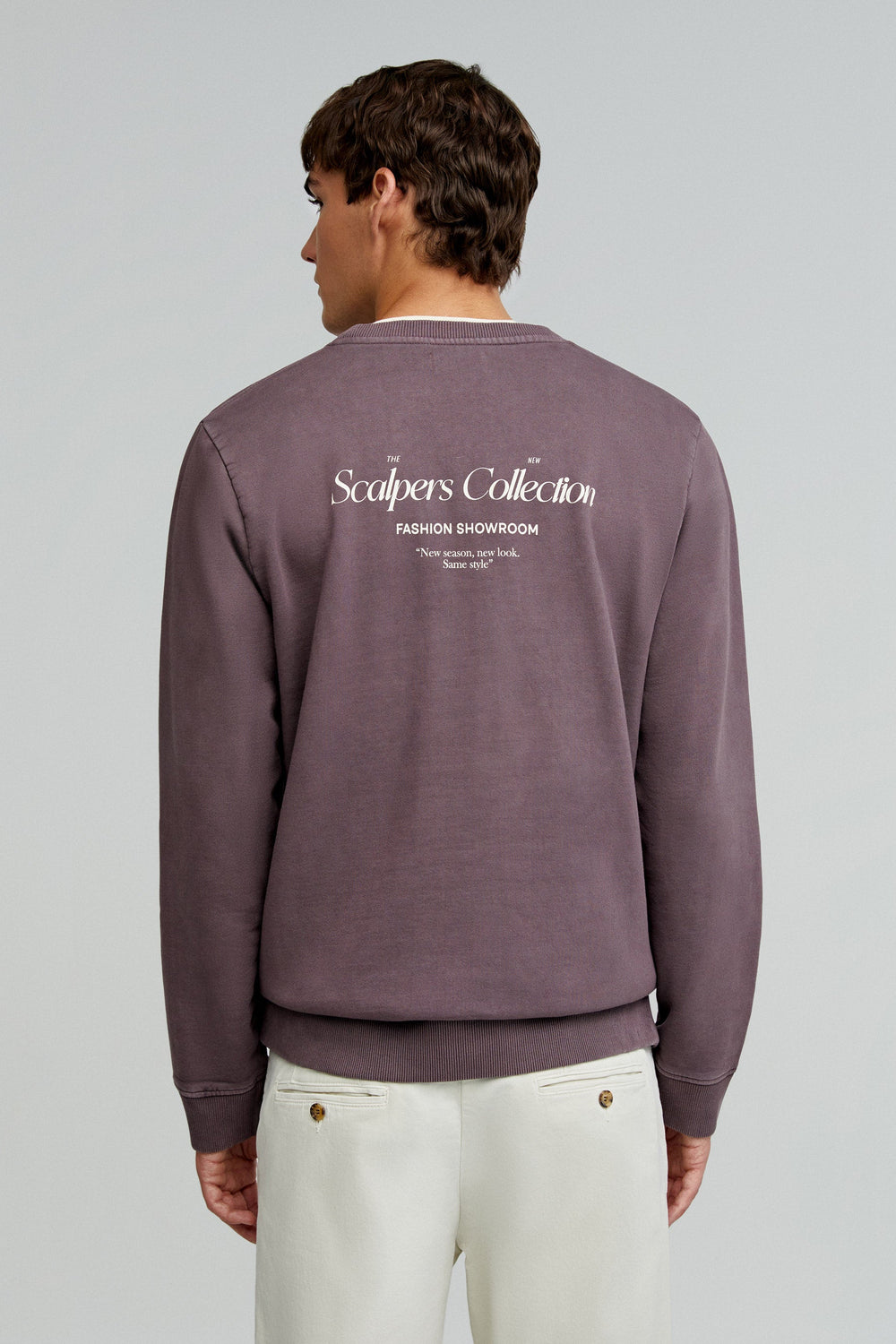 Sudadera lavada confeccionada en 100% algodón BCI. Regular fit, cuello redondo y manga larga. Print en pecho y trasero.