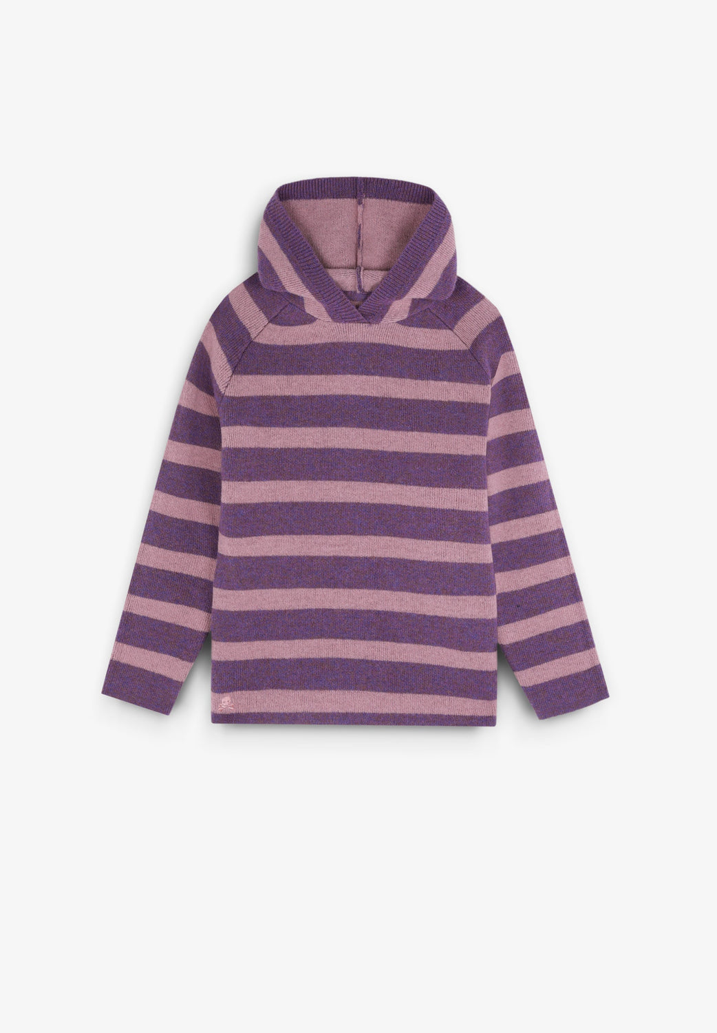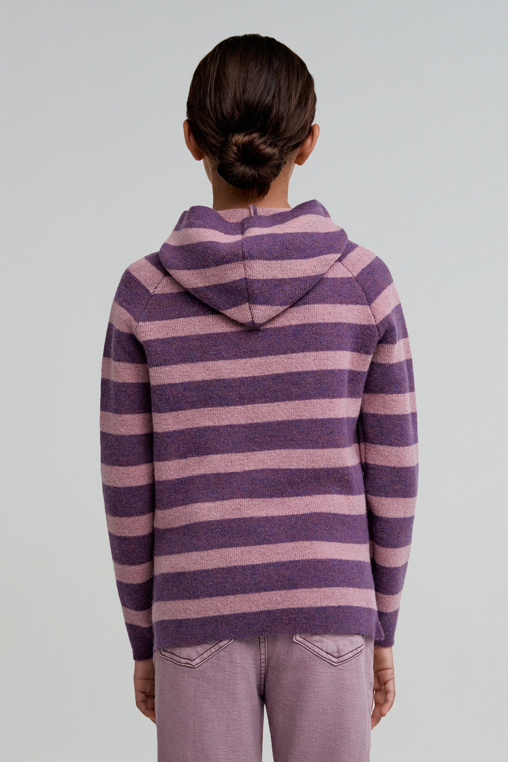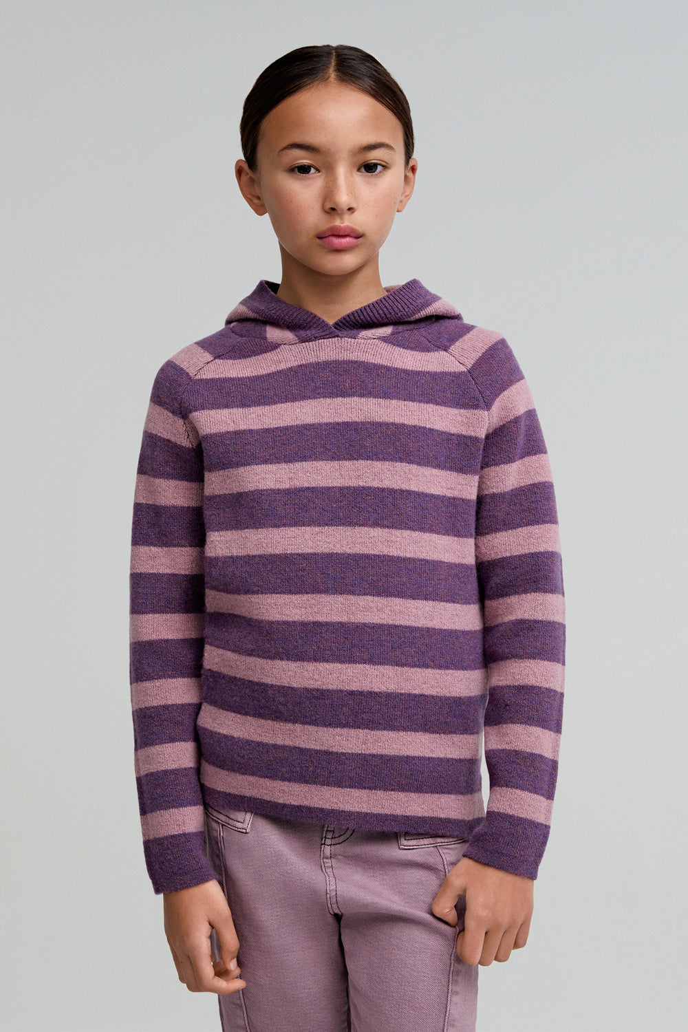 Jersey de rayas confeccionado en lana. Regular fit, cuello con capucha y manga larga.