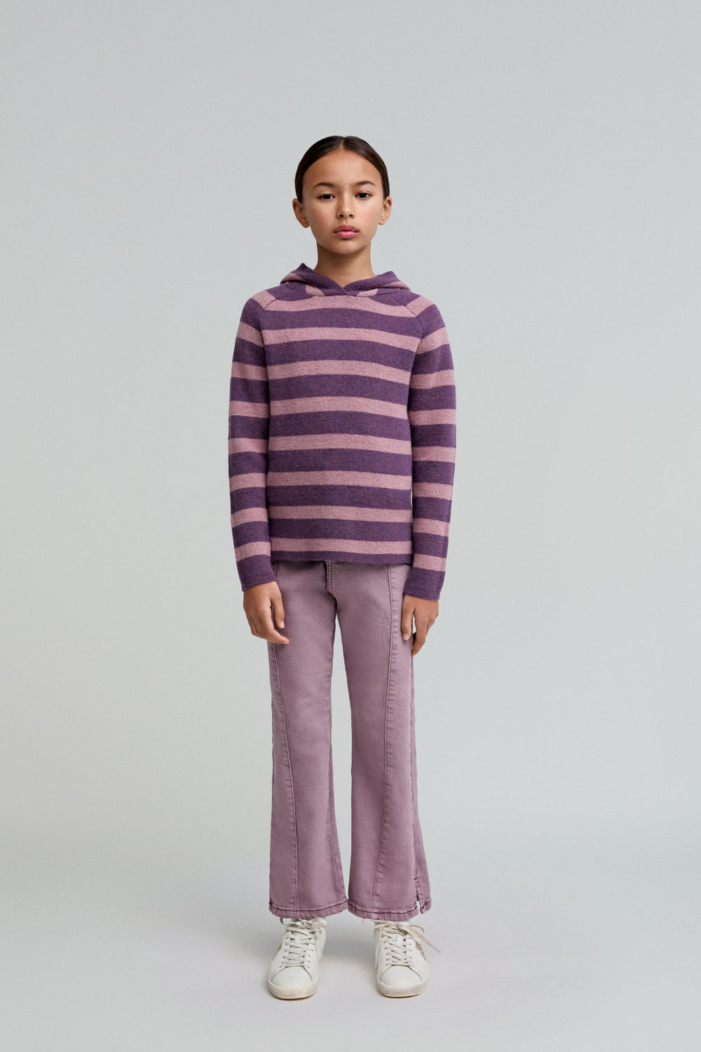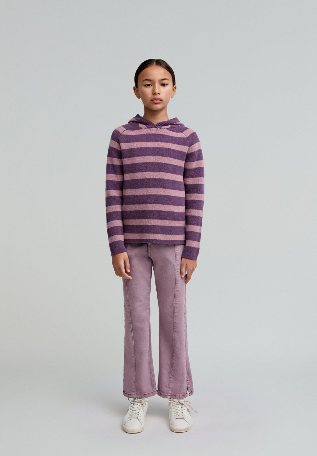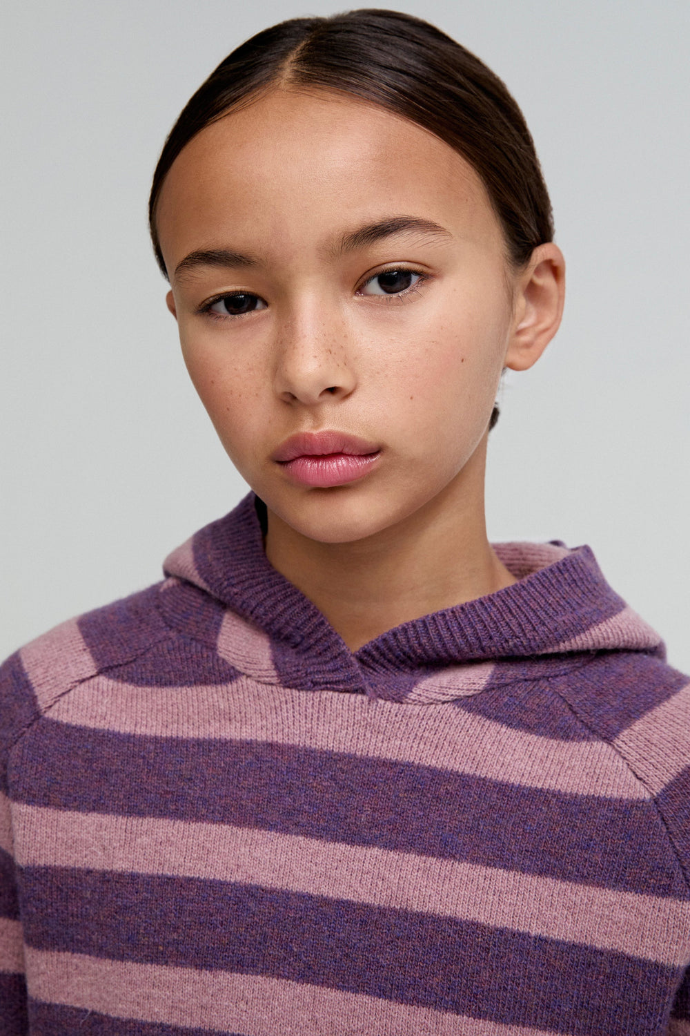 Jersey de rayas confeccionado en lana. Regular fit, cuello con capucha y manga larga.