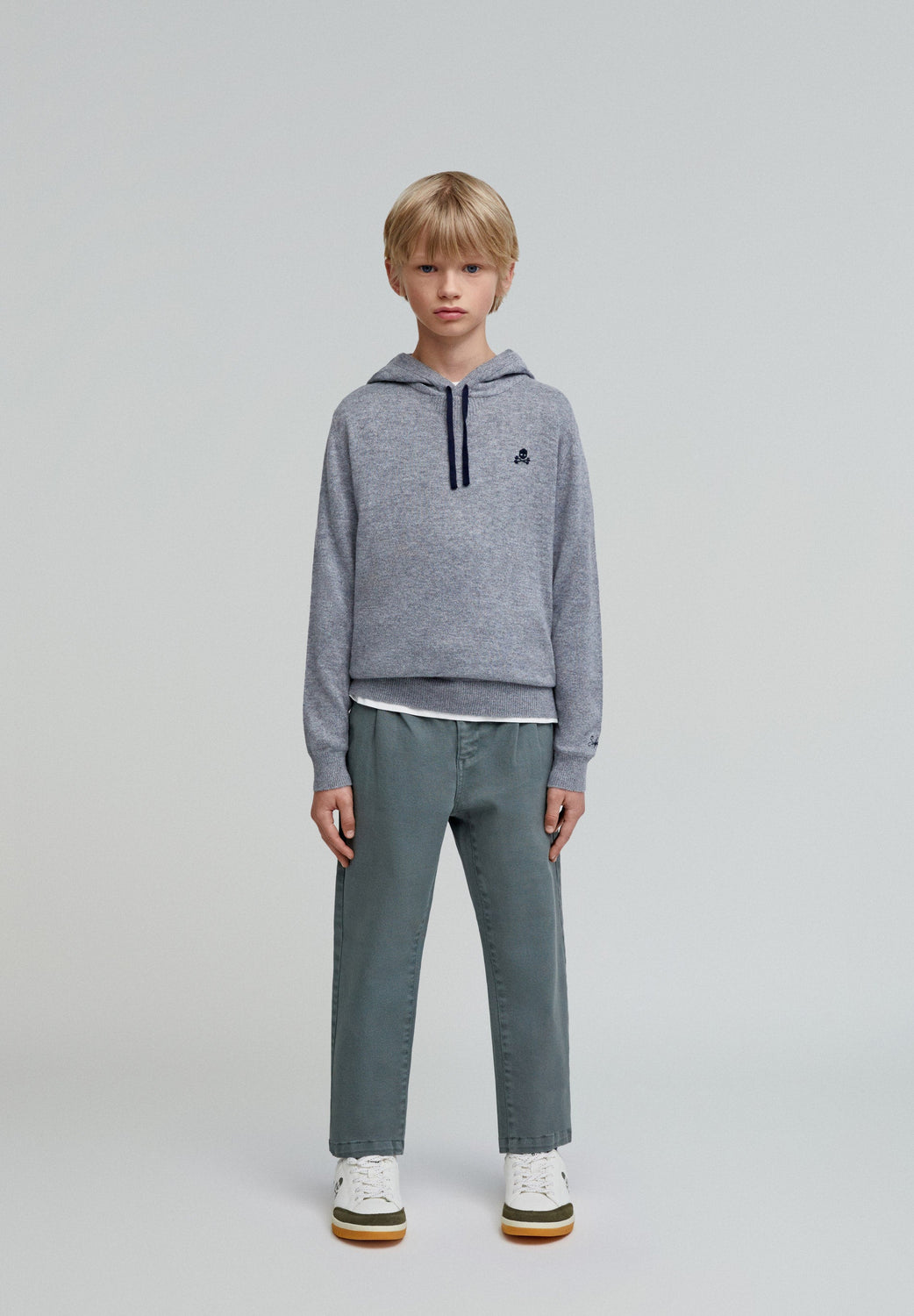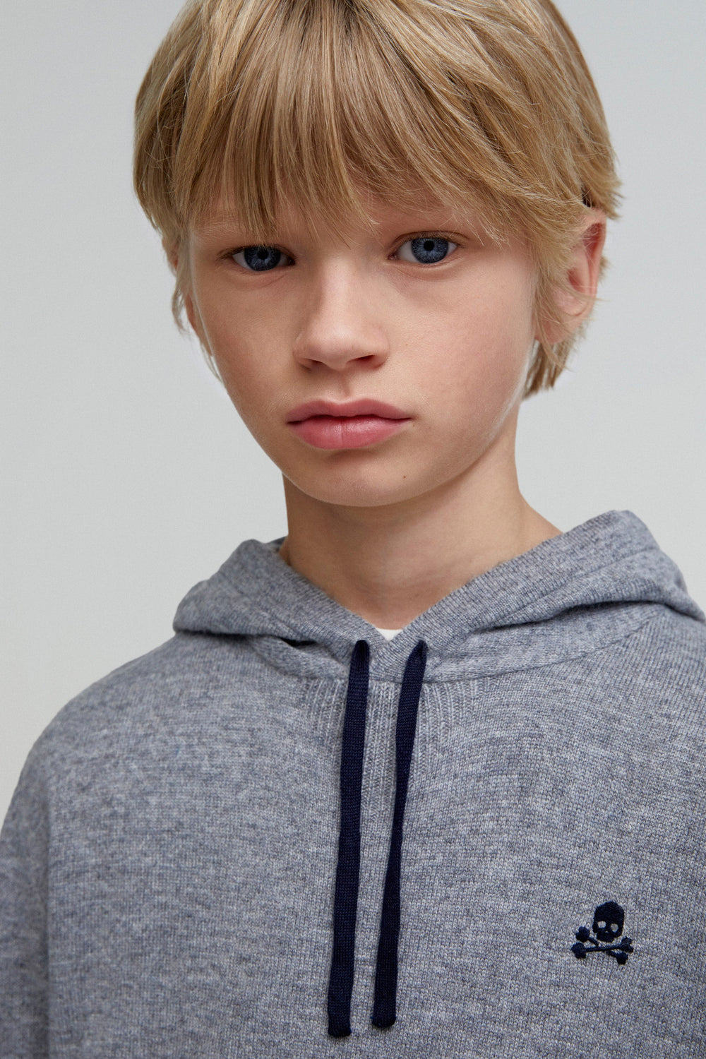Jersey con calavera bordada en pecho a contraste. Confeccionado en mezcla de lana. Corte Regular Fit. Cuello con capucha ajustable por cordón. Manga larga. Acabados en rib.