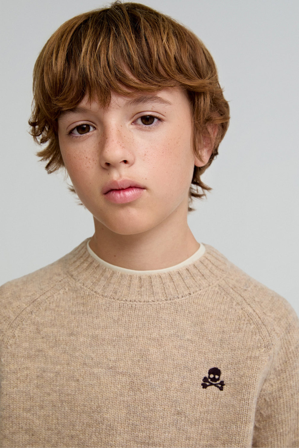 Jersey confeccionado en mezcla de lana. Regular fit, cuello redondo y manga larga ranglan. Calavera bordada a contraste.