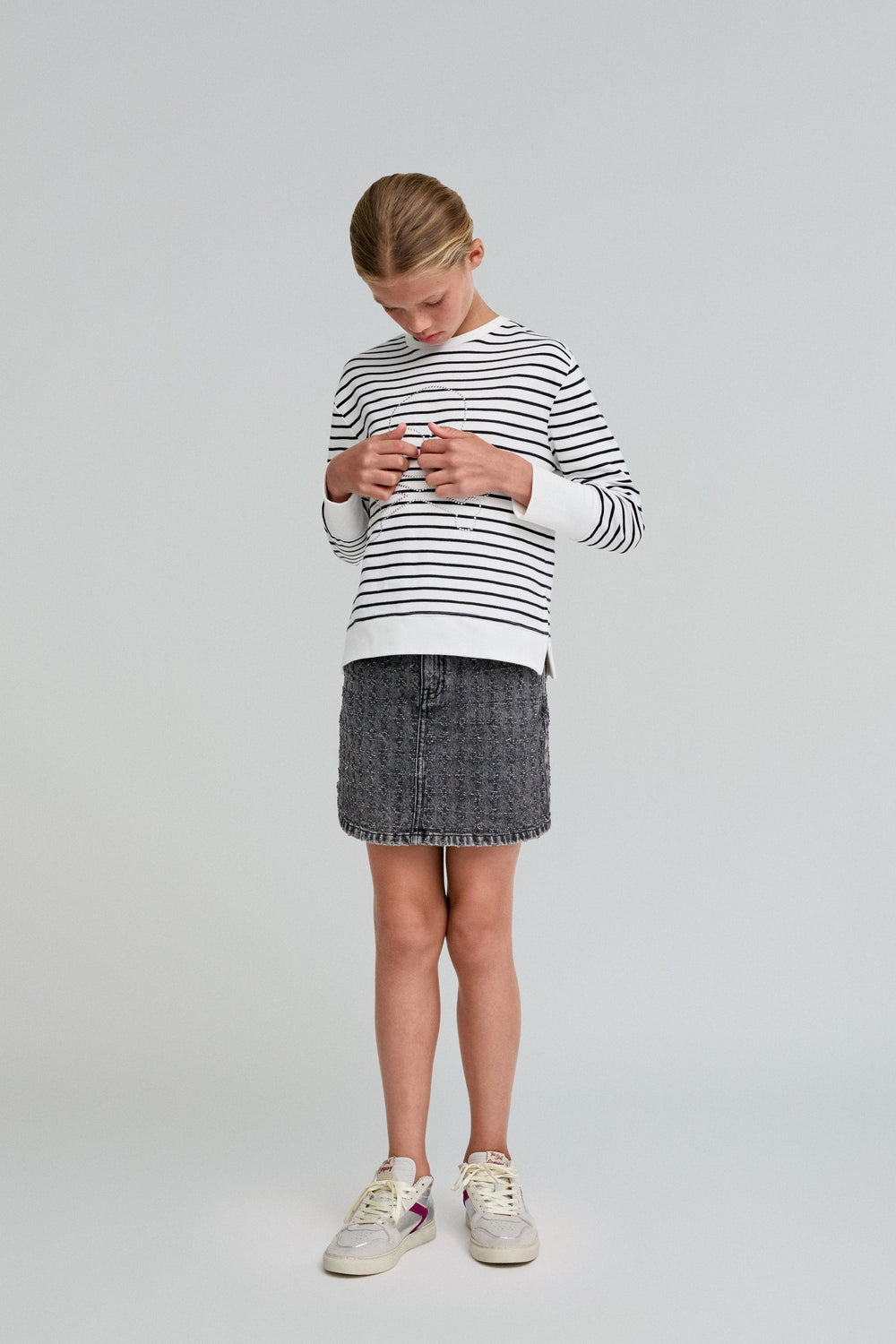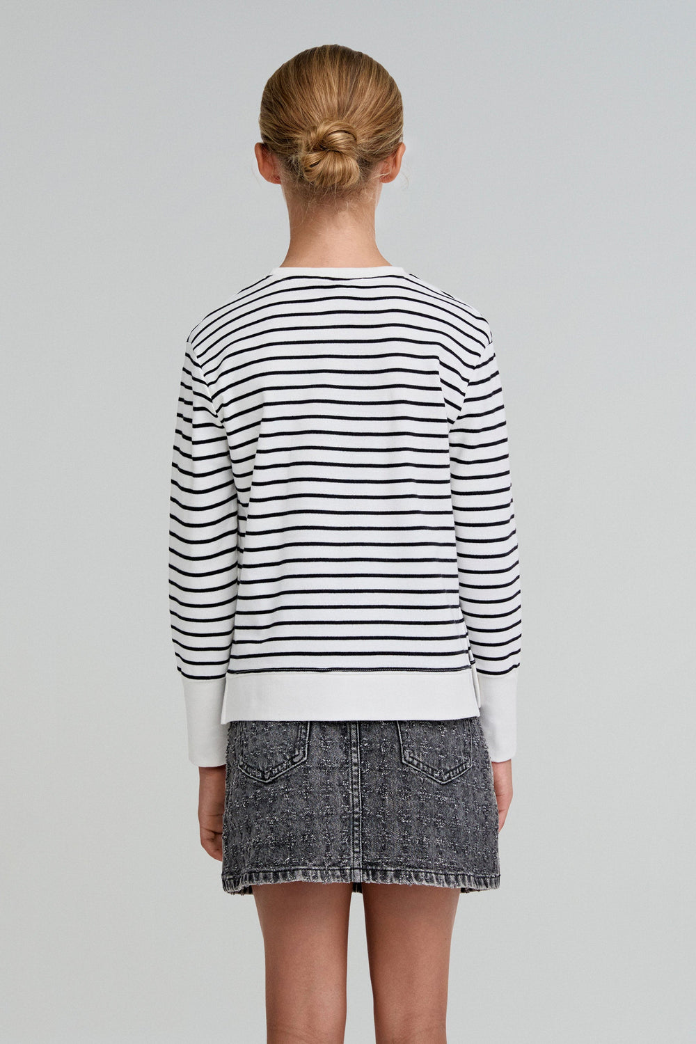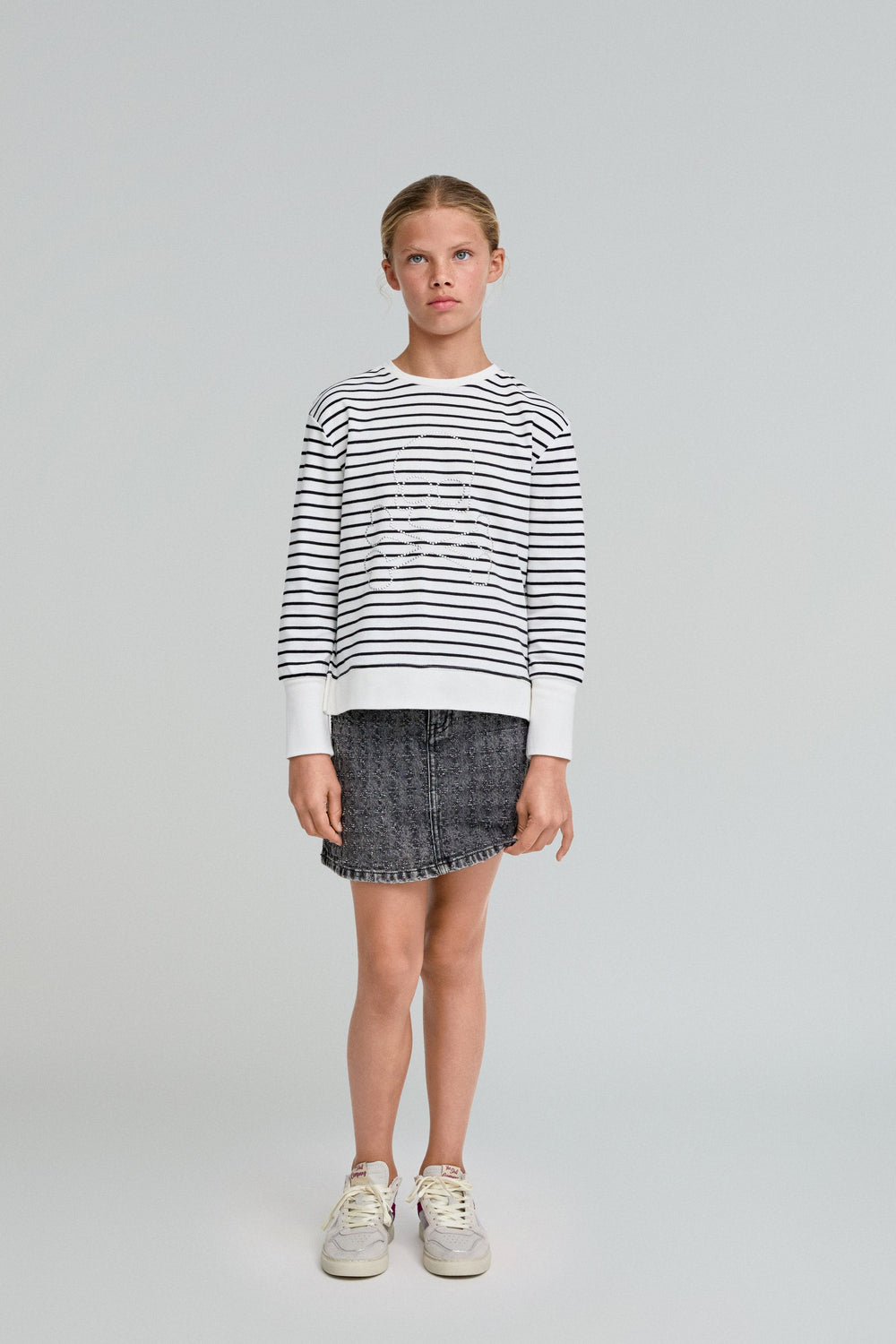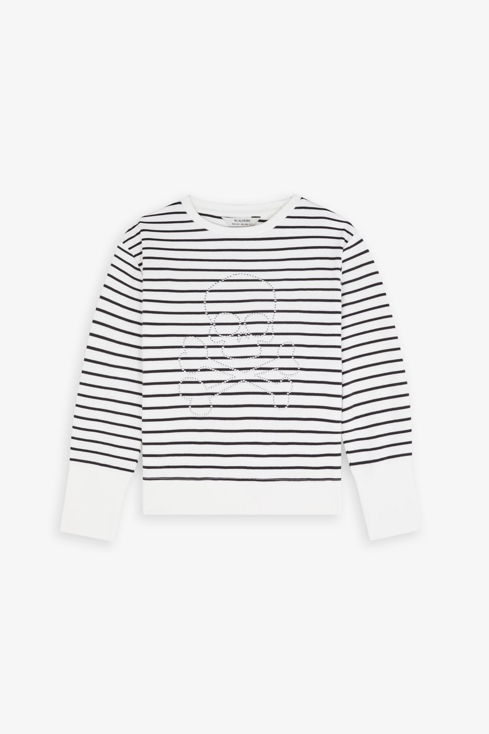 Sudadera de rayas con calavera frontal brillos. Confeccionada en 100% Algodón BCI. Corte Regular fit. Cuello redondo. Manga larga.