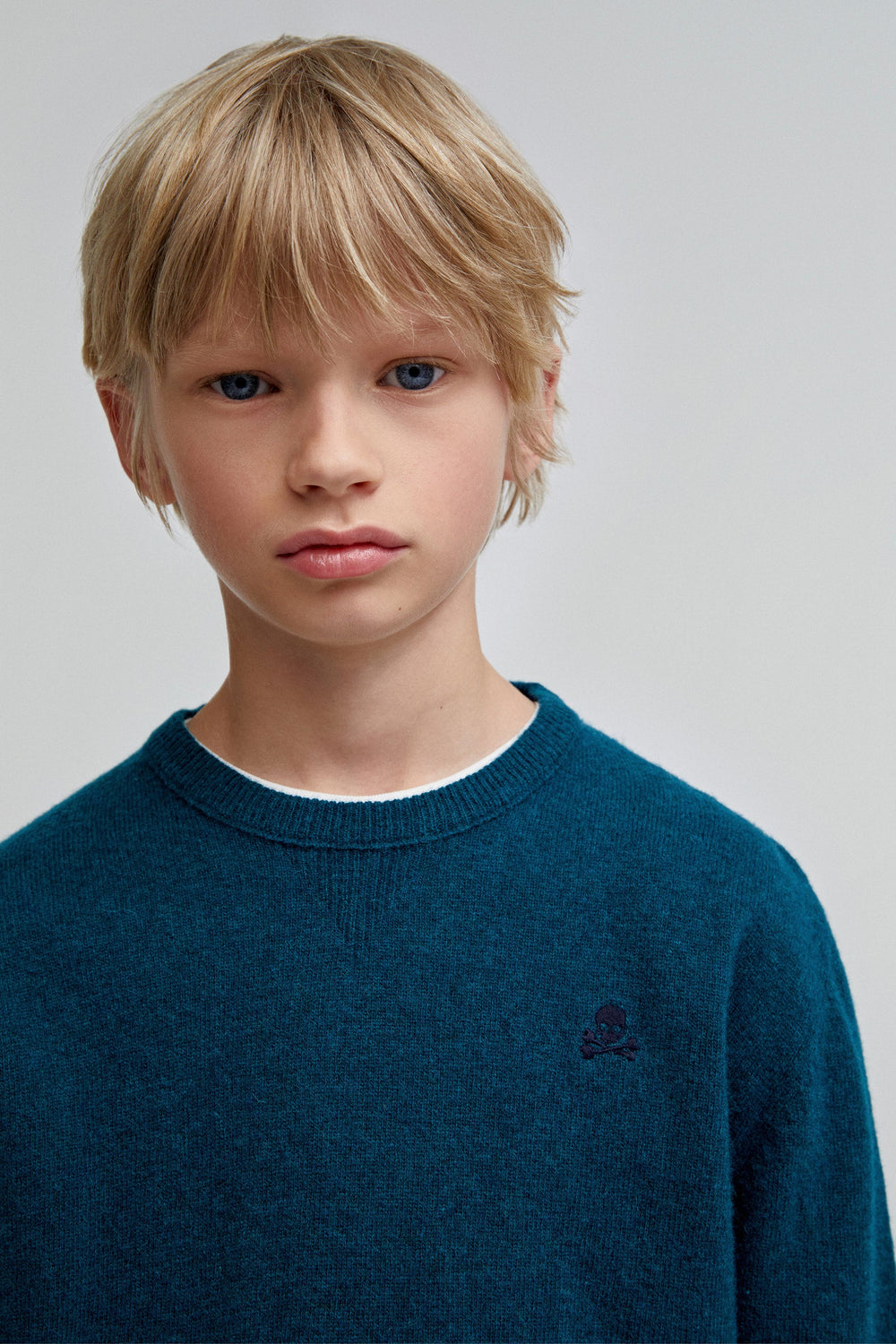 Jersey con detalle de coderas con calavera. Confeccionado en mezcla de lana. Corte Regular Fit. Cuello redondo. Manga larga. Detalle de calavera a contraste.