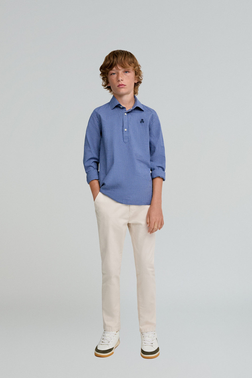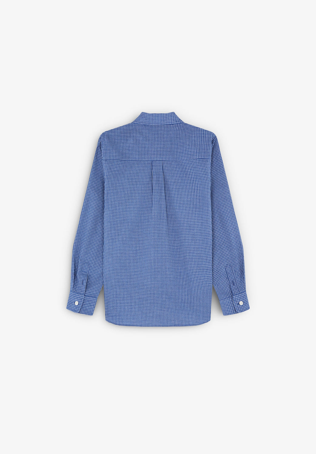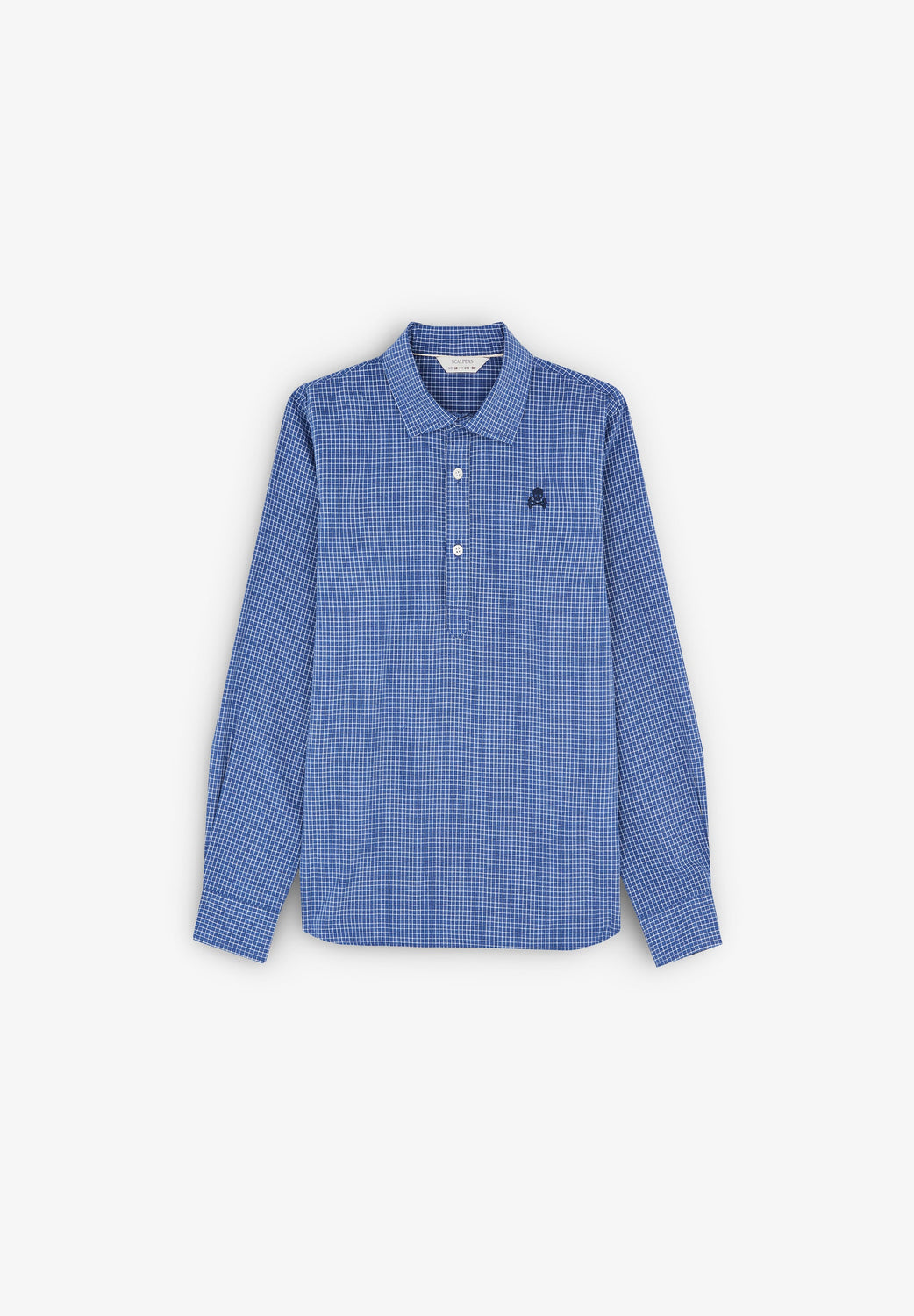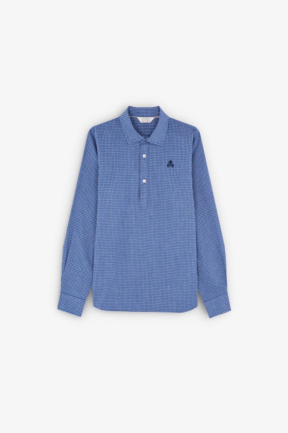 Polera de cuadros con logo en pecho calavera contraste. confeccionado en algodón 100% BCI. Cuello clásico. Corte Regular fit. Manga larga terminada en puño con botones.