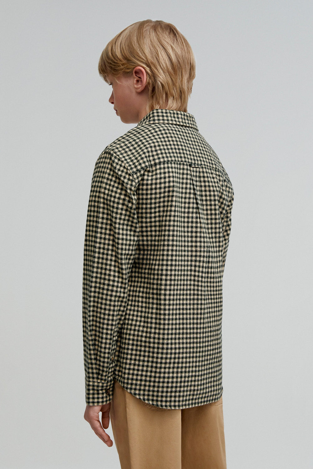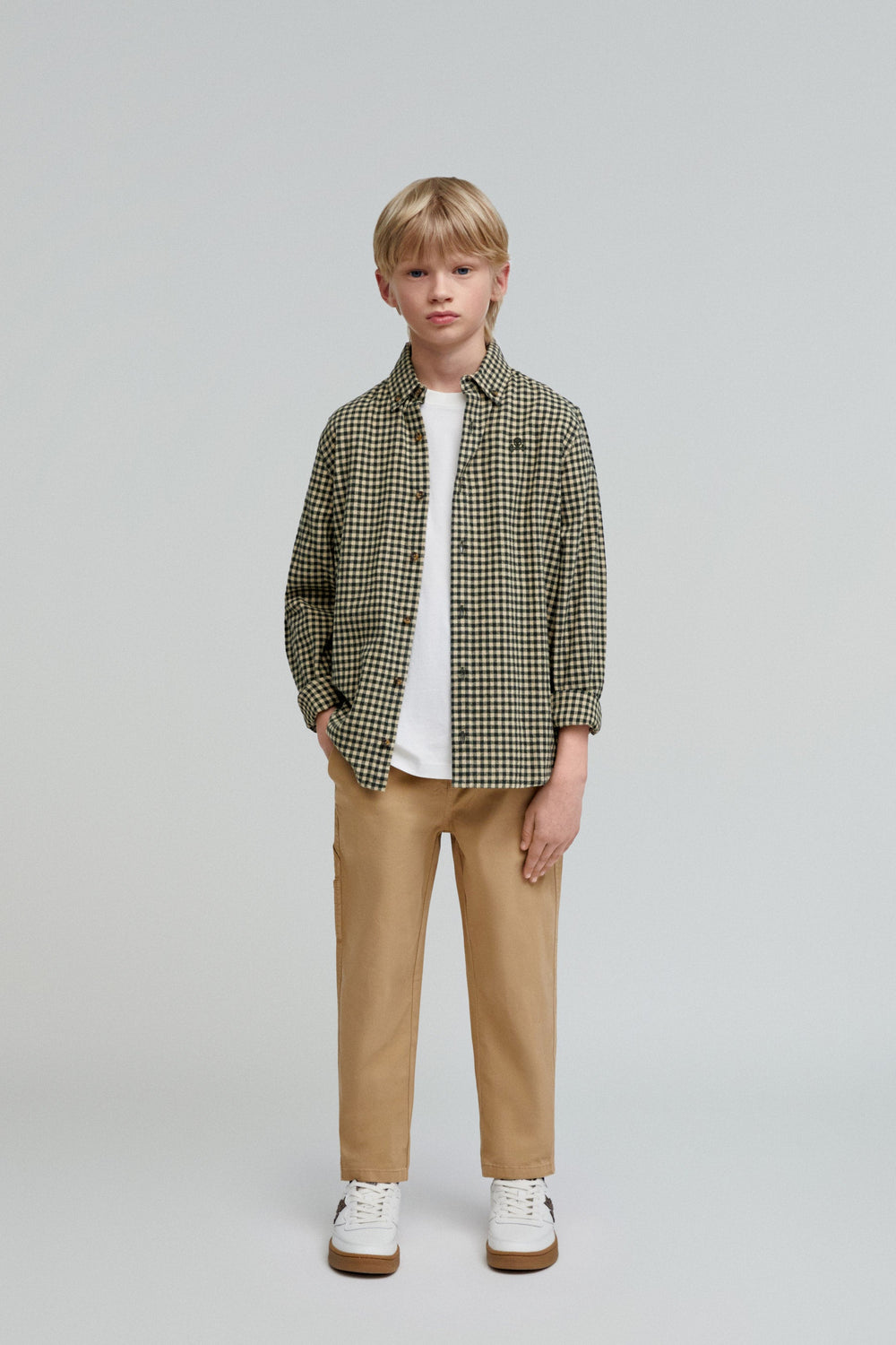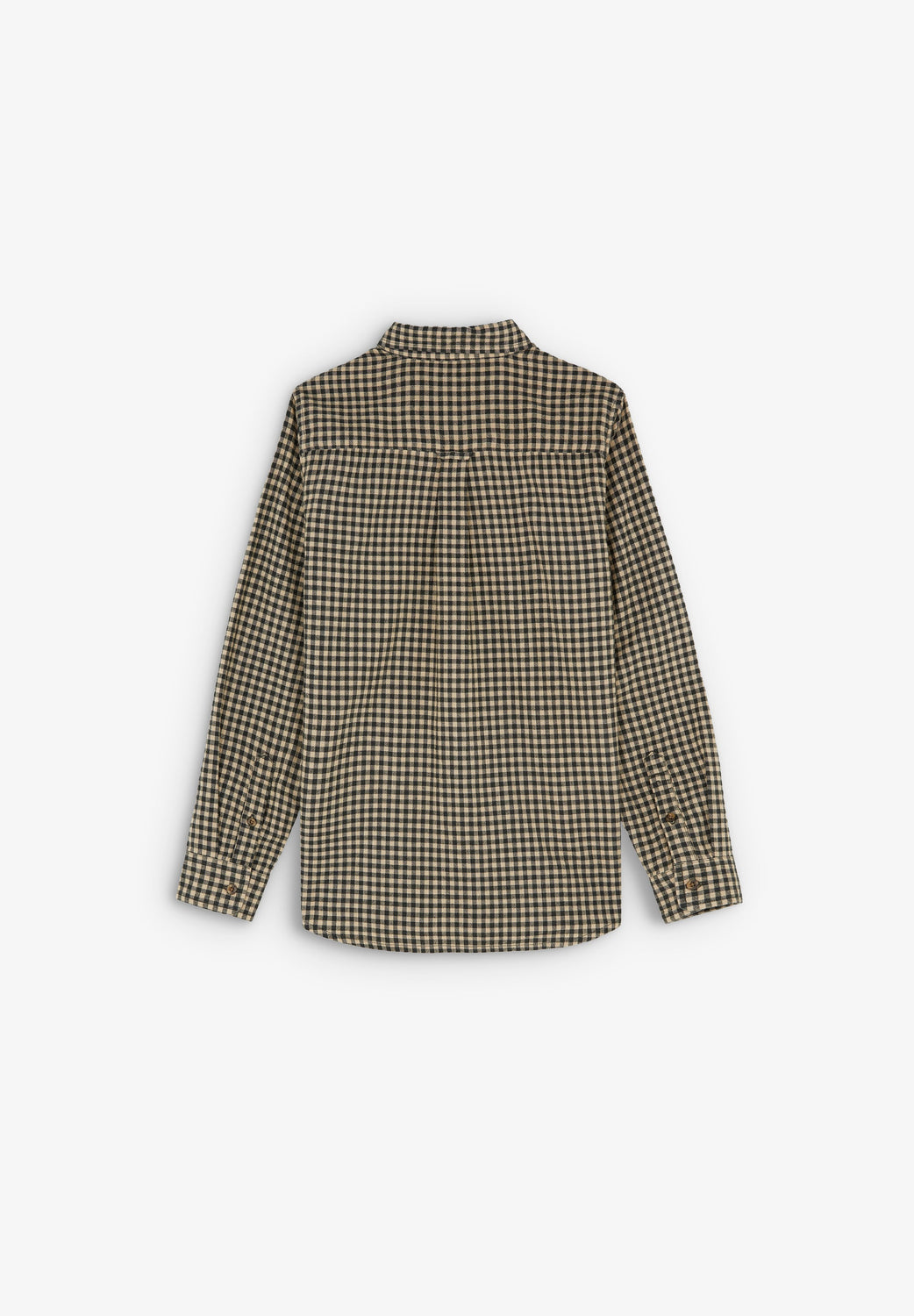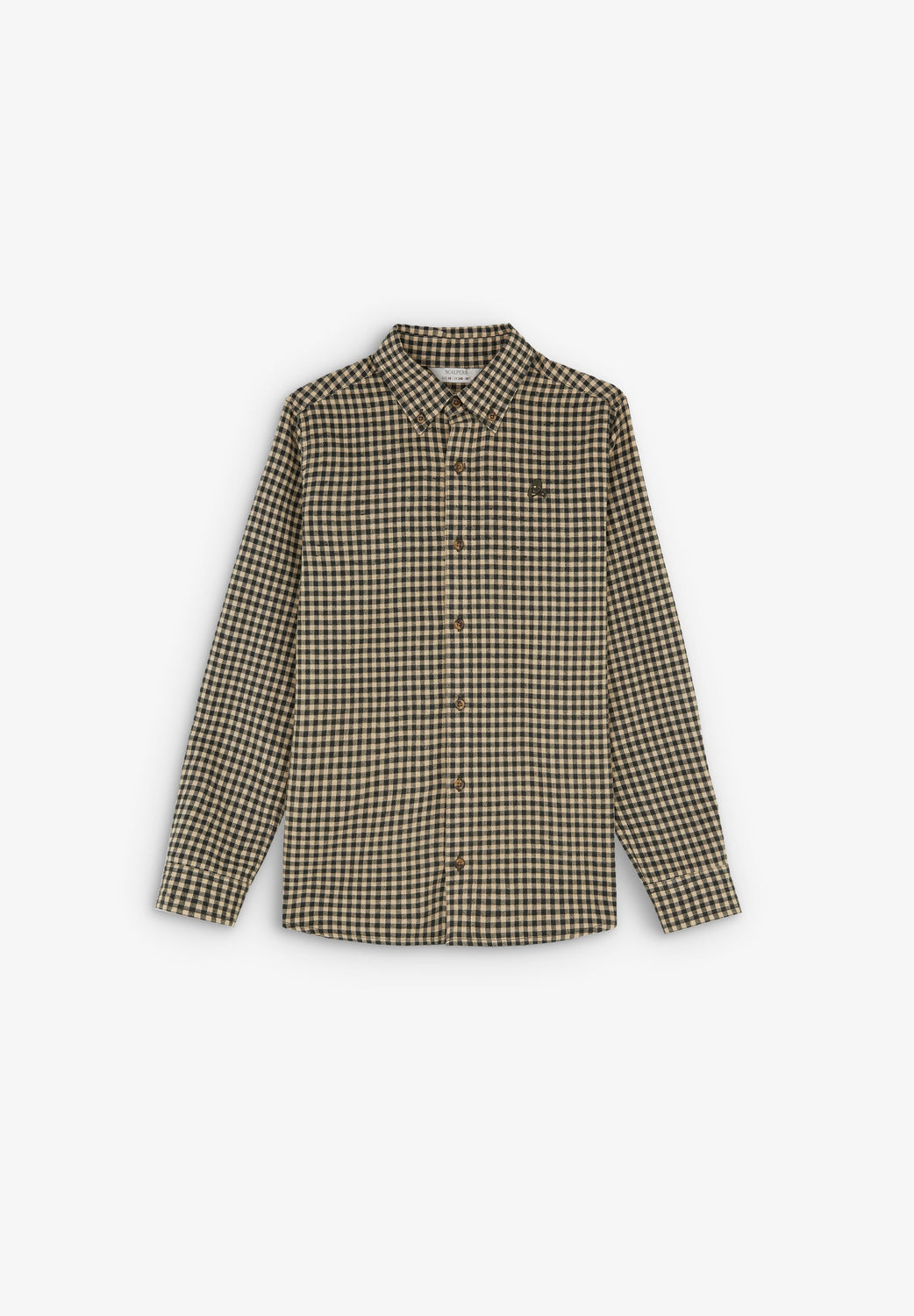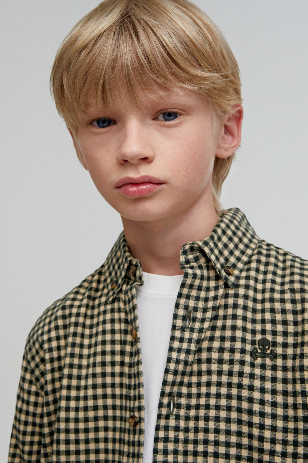 Camisa de cuadros vichy confeccionada en 100% algodón BCI. Regular fit, cuello con botones y manga larga terminada en puño con botones. Calavera bordada a tono.