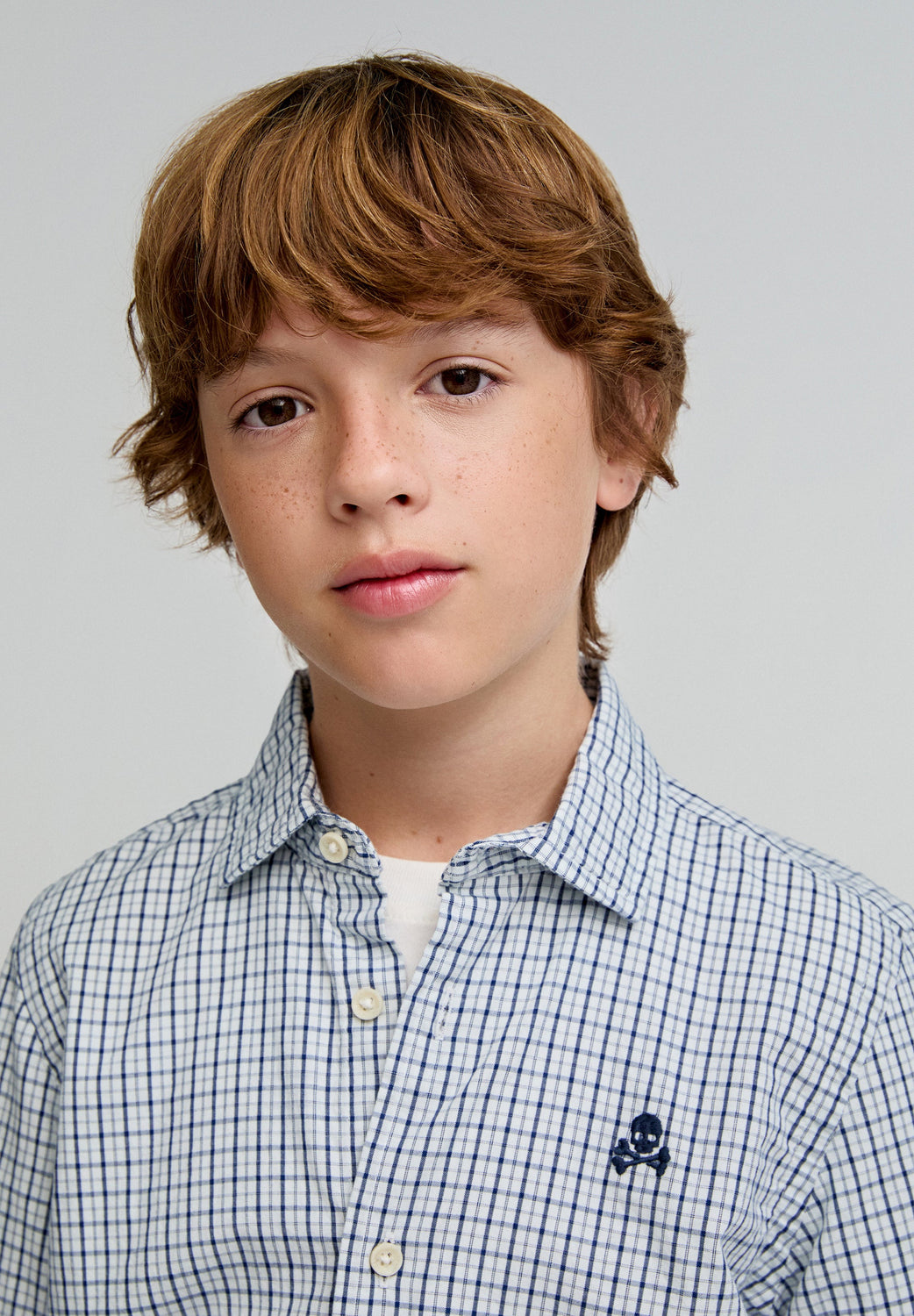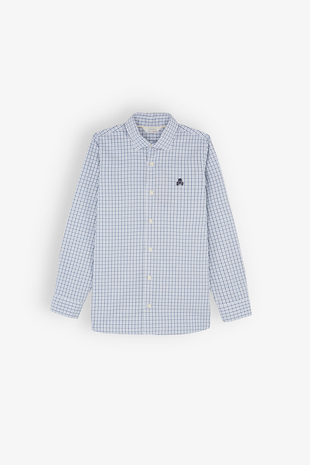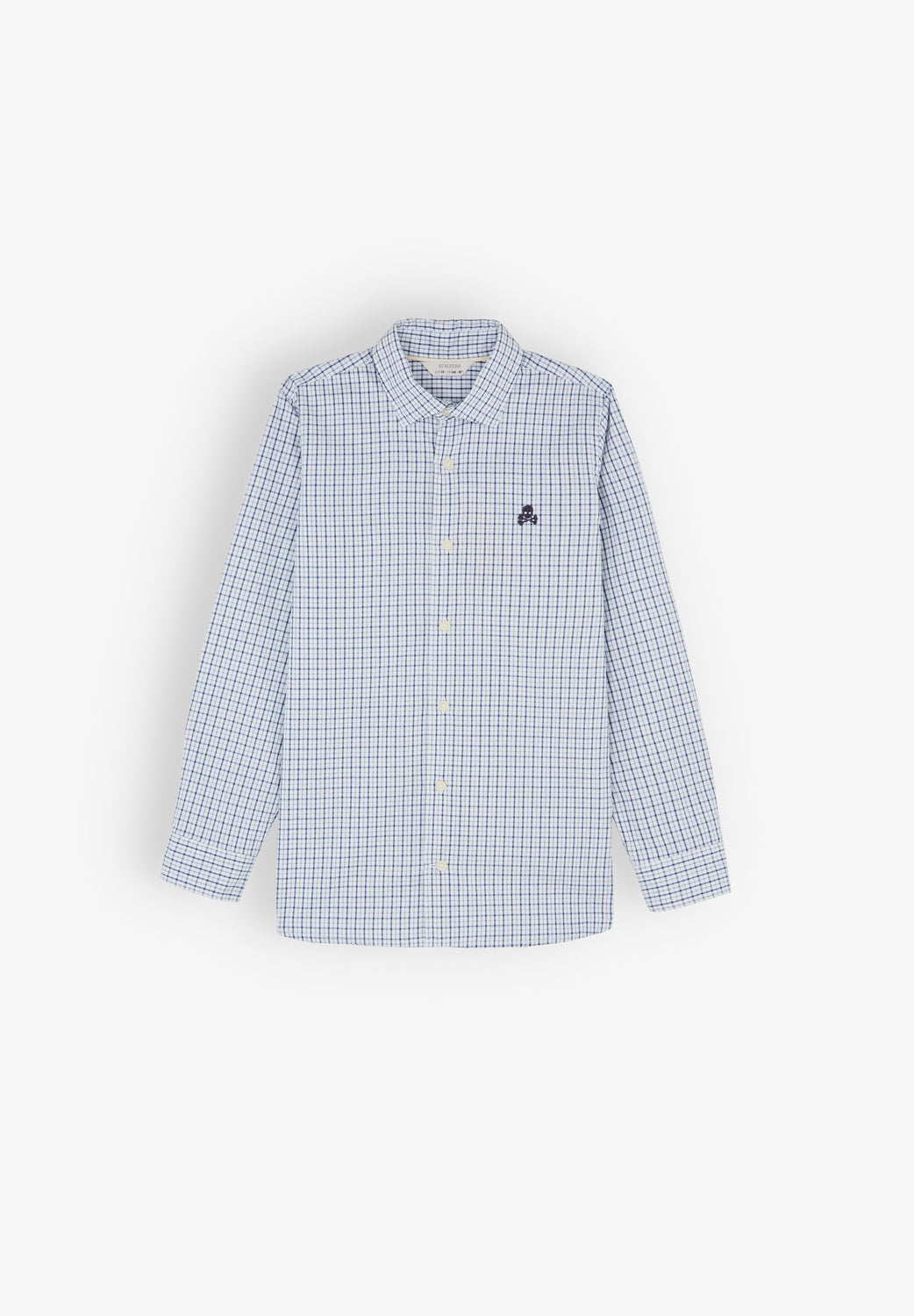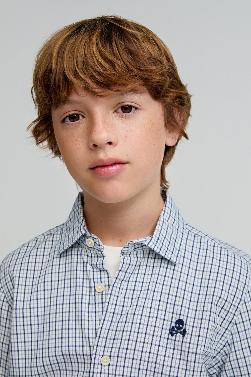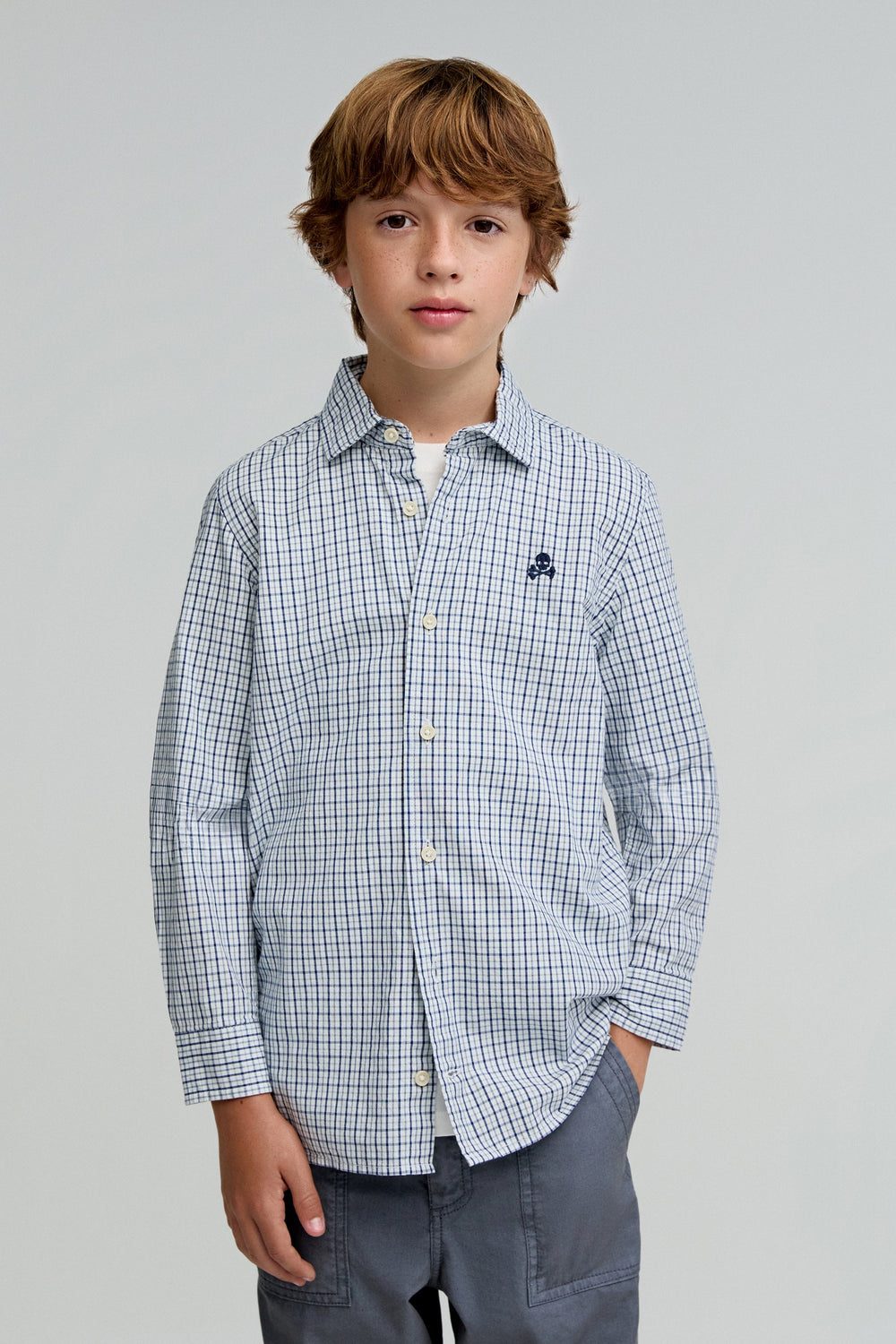 Camisa de cuadros confeccionada en 100% algodón BCI. Regular fit, cuello clásico y cierre con botones. Manga larga terminada en puño con botón y calavera bordada a contraste.
