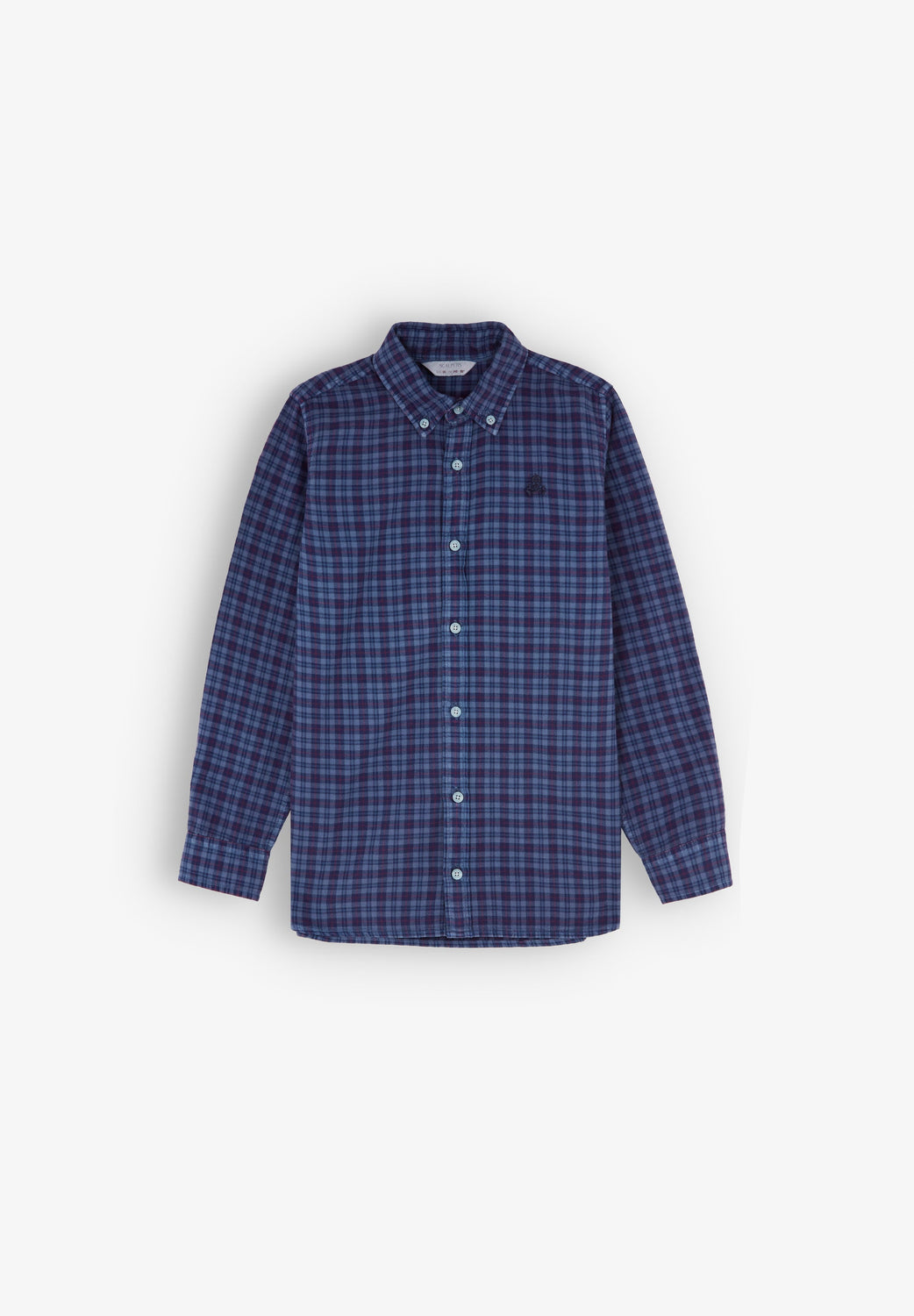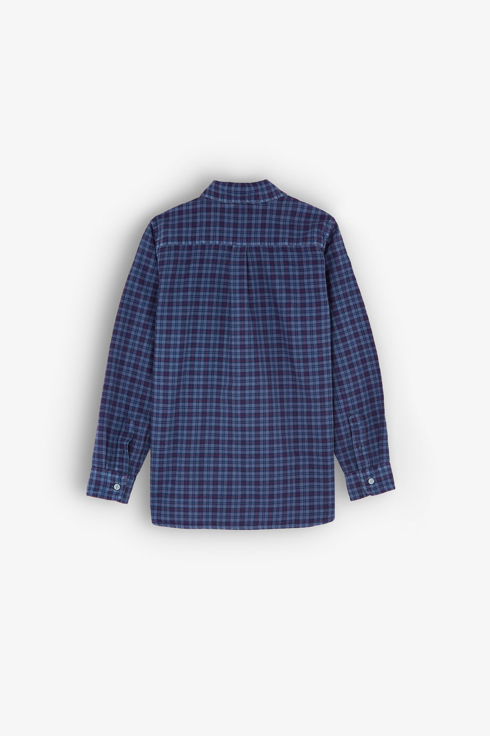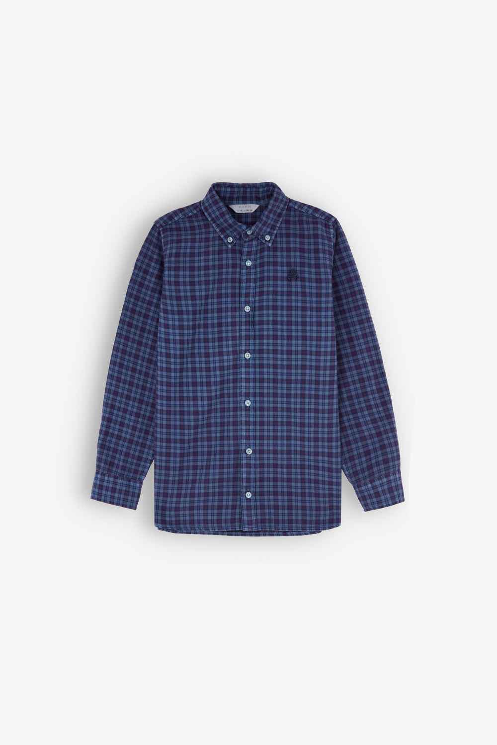 Camisa de cuadros confeccionado en 100% algodón BCI. Regular fit, cuello con botón y cierre con botones. Manga larga terminada en puño con botones. Calavera bordada a contraste.