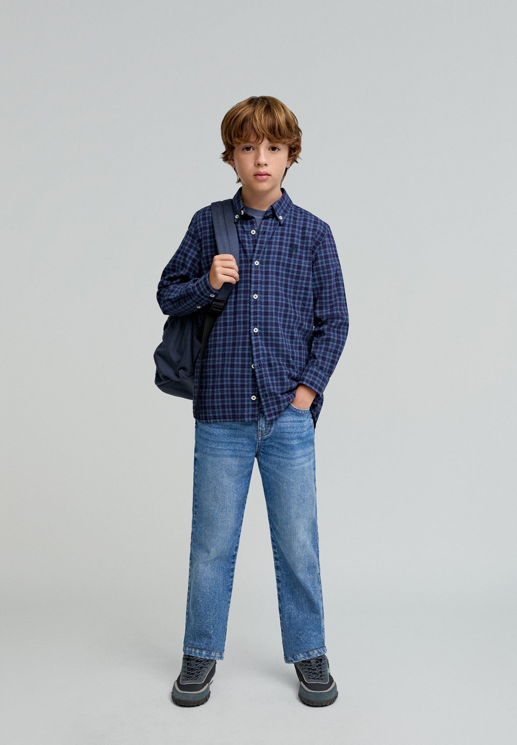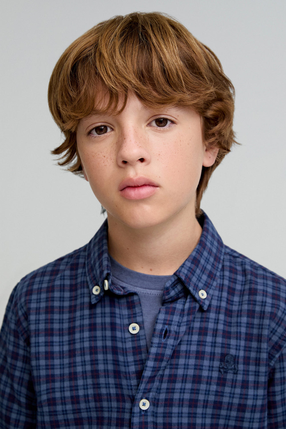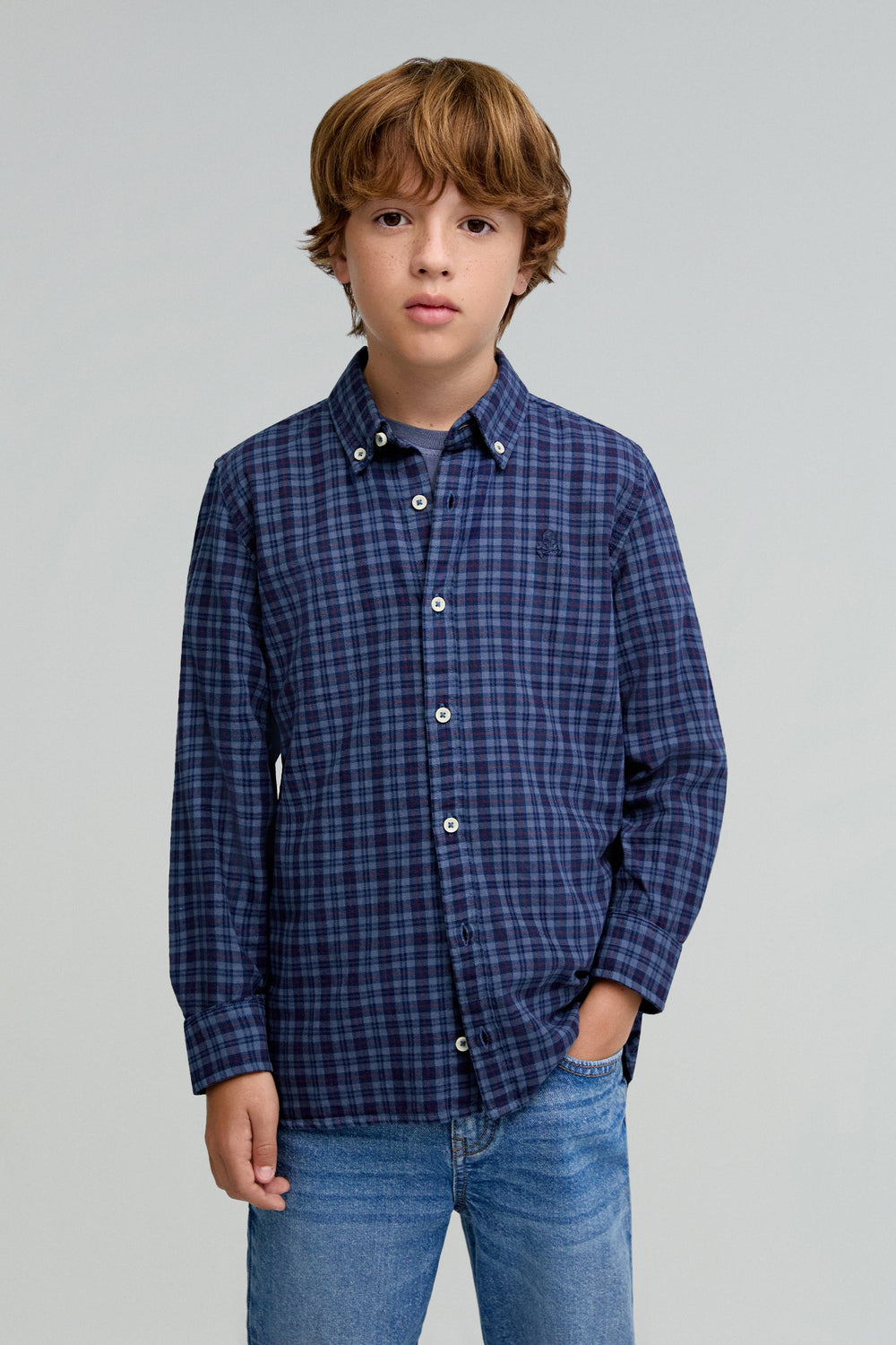 Camisa de cuadros confeccionado en 100% algodón BCI. Regular fit, cuello con botón y cierre con botones. Manga larga terminada en puño con botones. Calavera bordada a contraste.