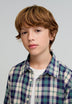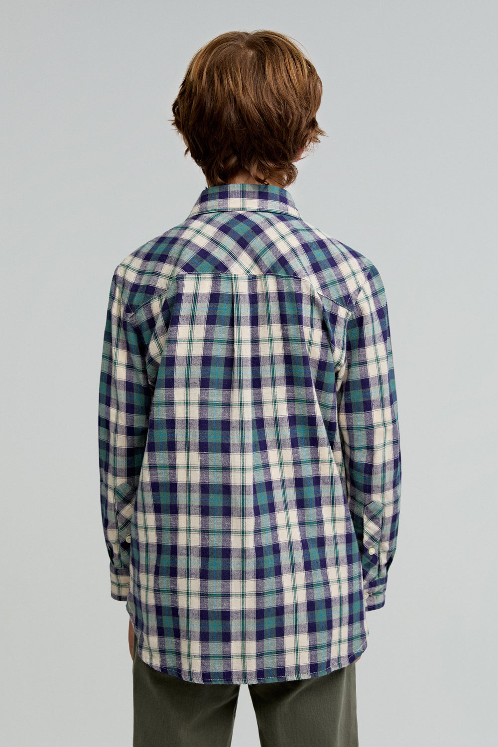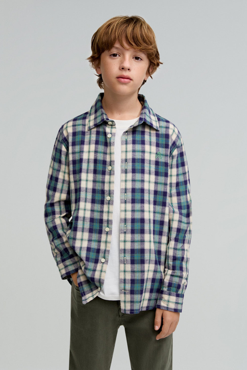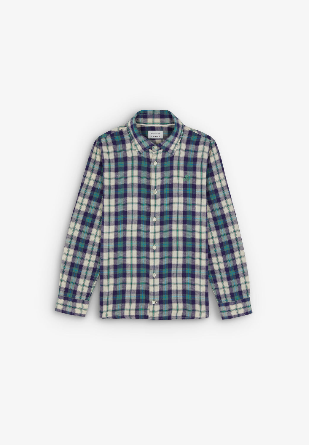 Camisa de cuadros confeccionada en mezcla de algodón BCI y lino. Regular fit, cuello clásico y cierre con botones. Manga larga terminada en puño y calavera bordada con botones.