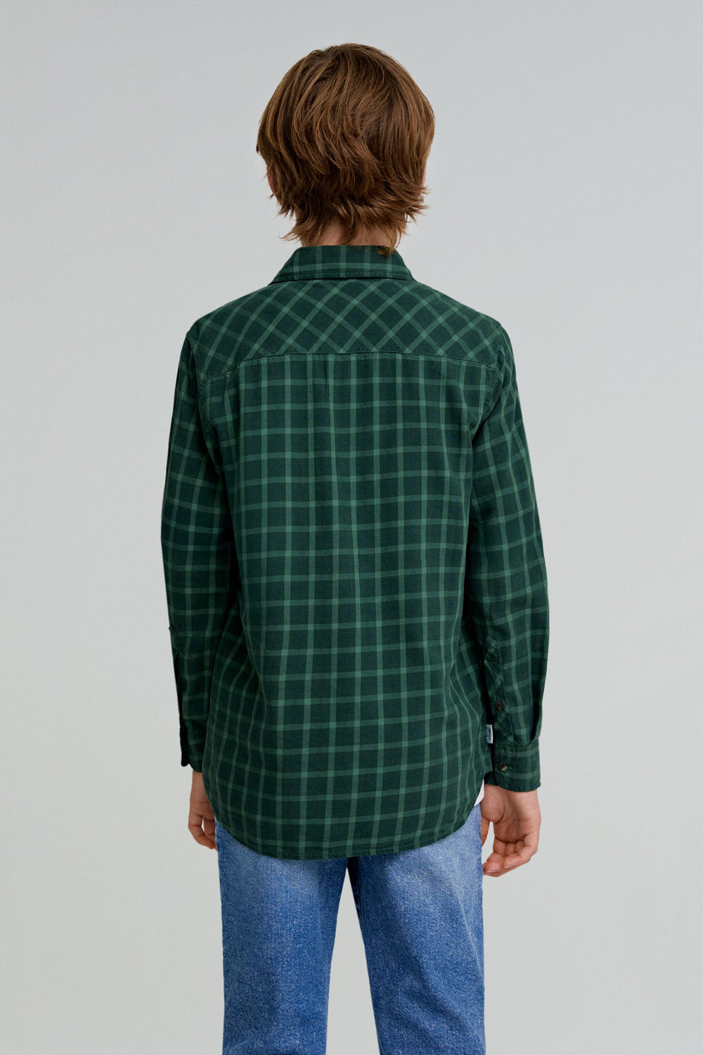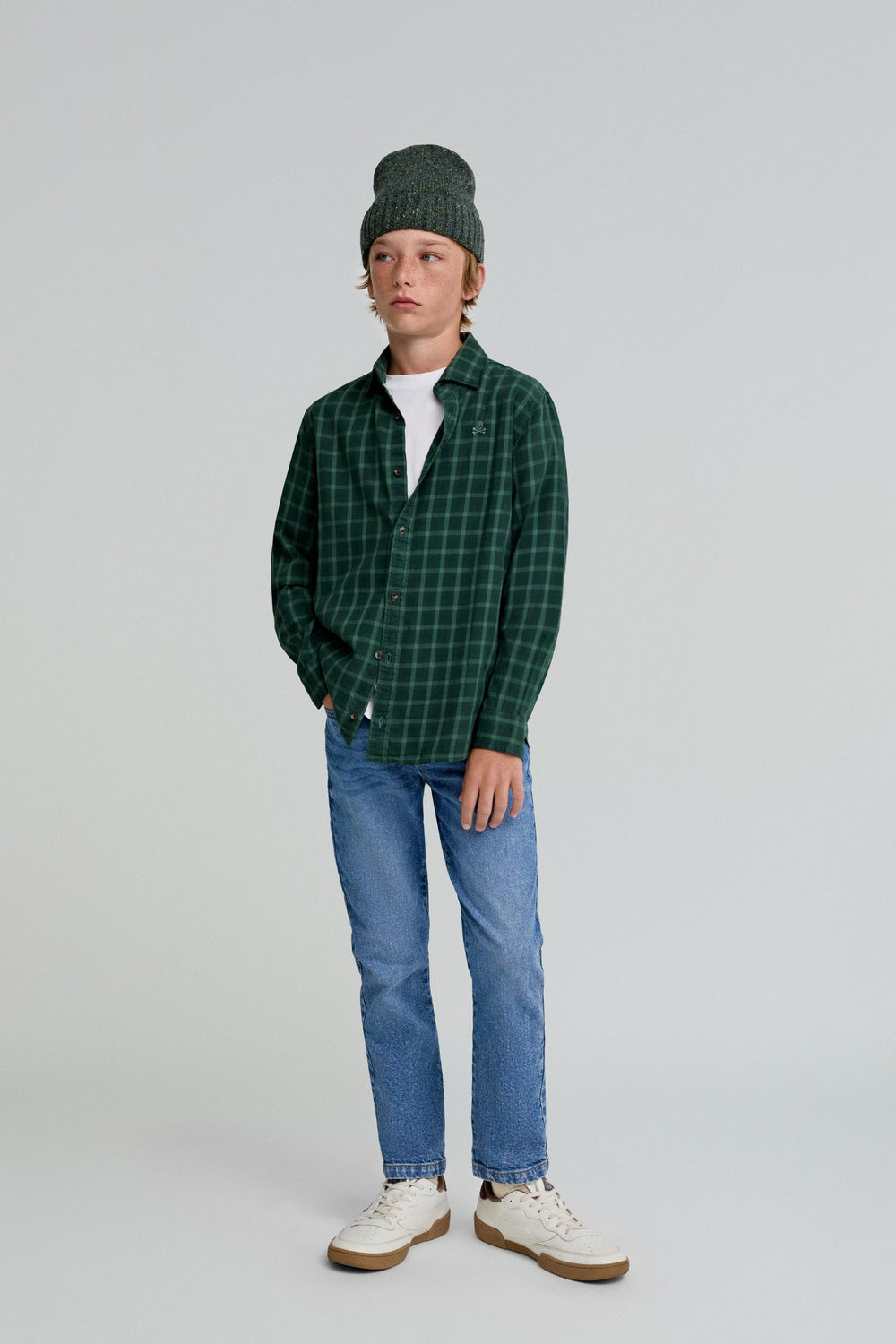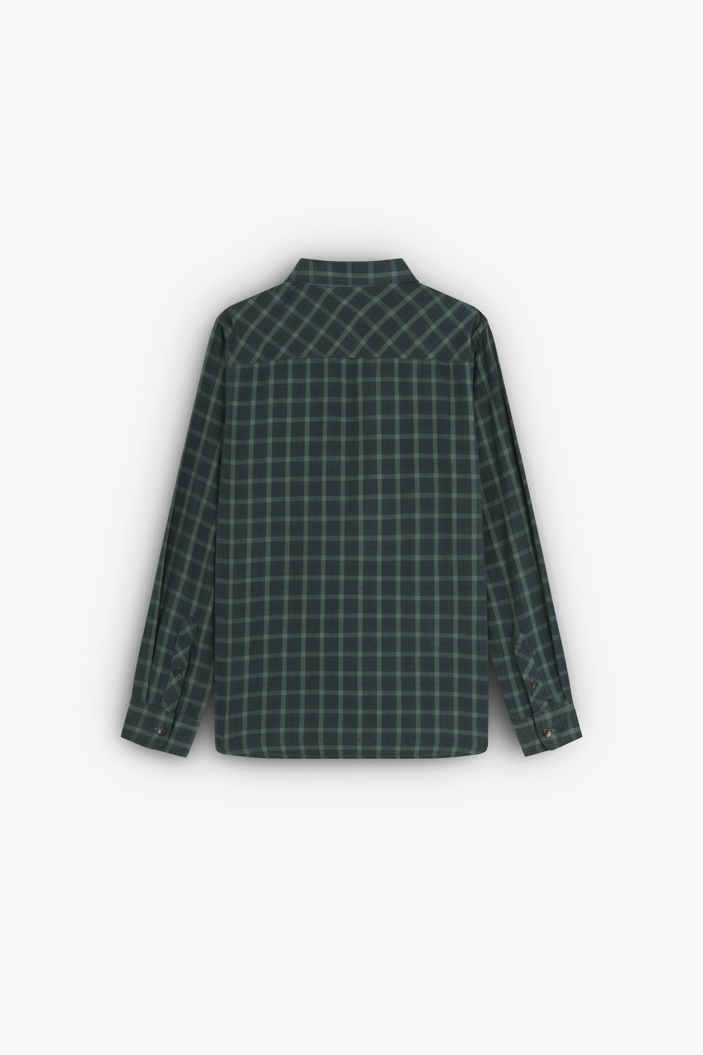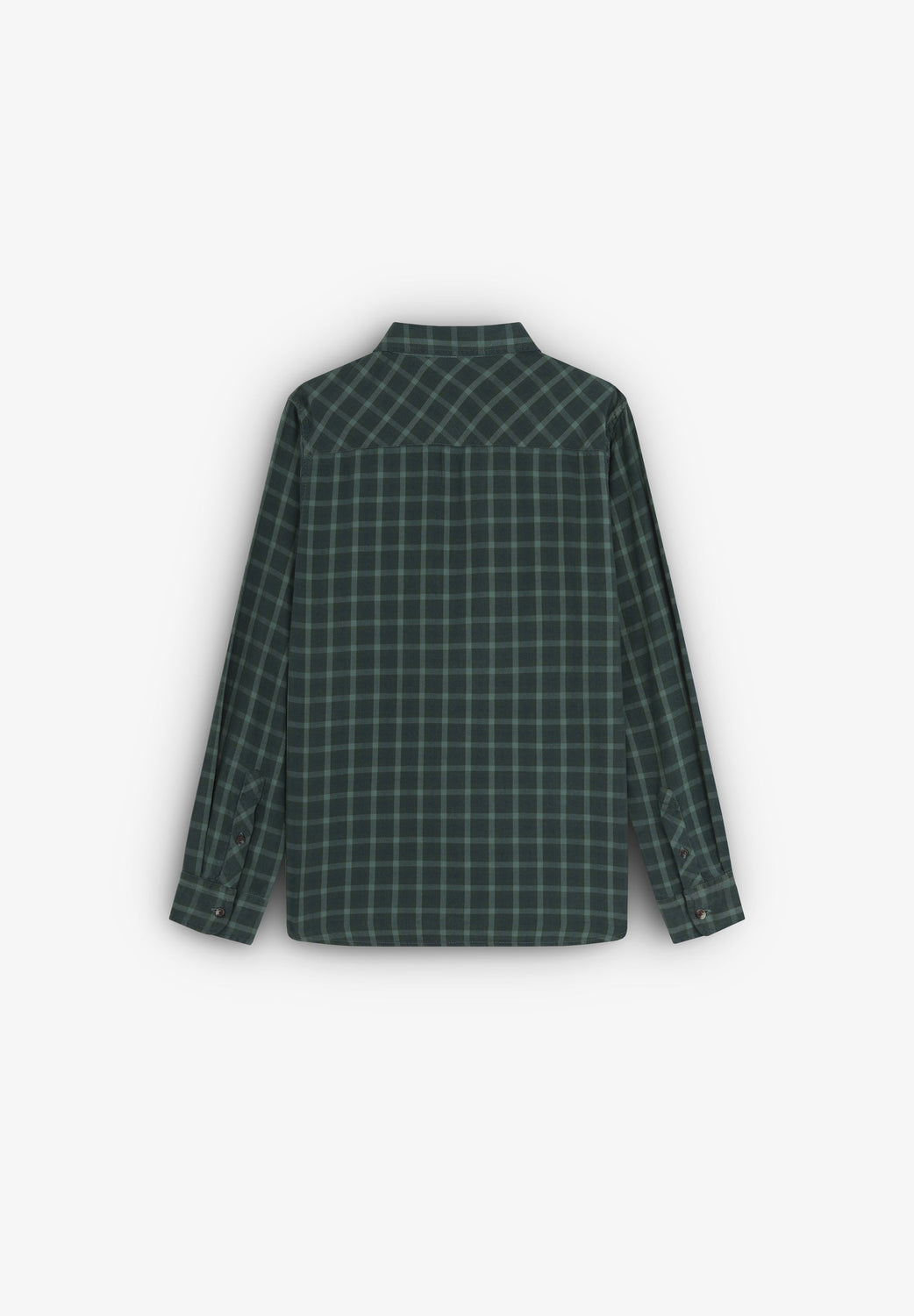 Camisa de cuadros confeccionada en 100% algodón BCI. Regular fit, cuello clásico y cierre con botones. Manga larga terminada en puño con botón. Calavera bordada.
