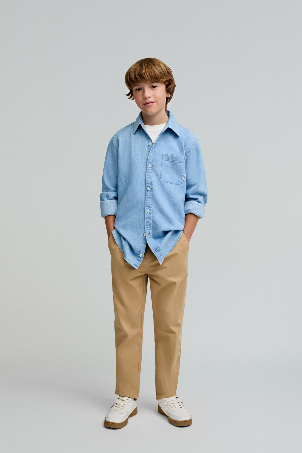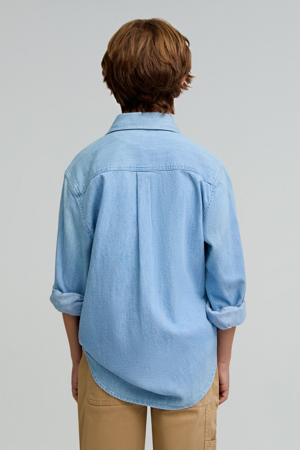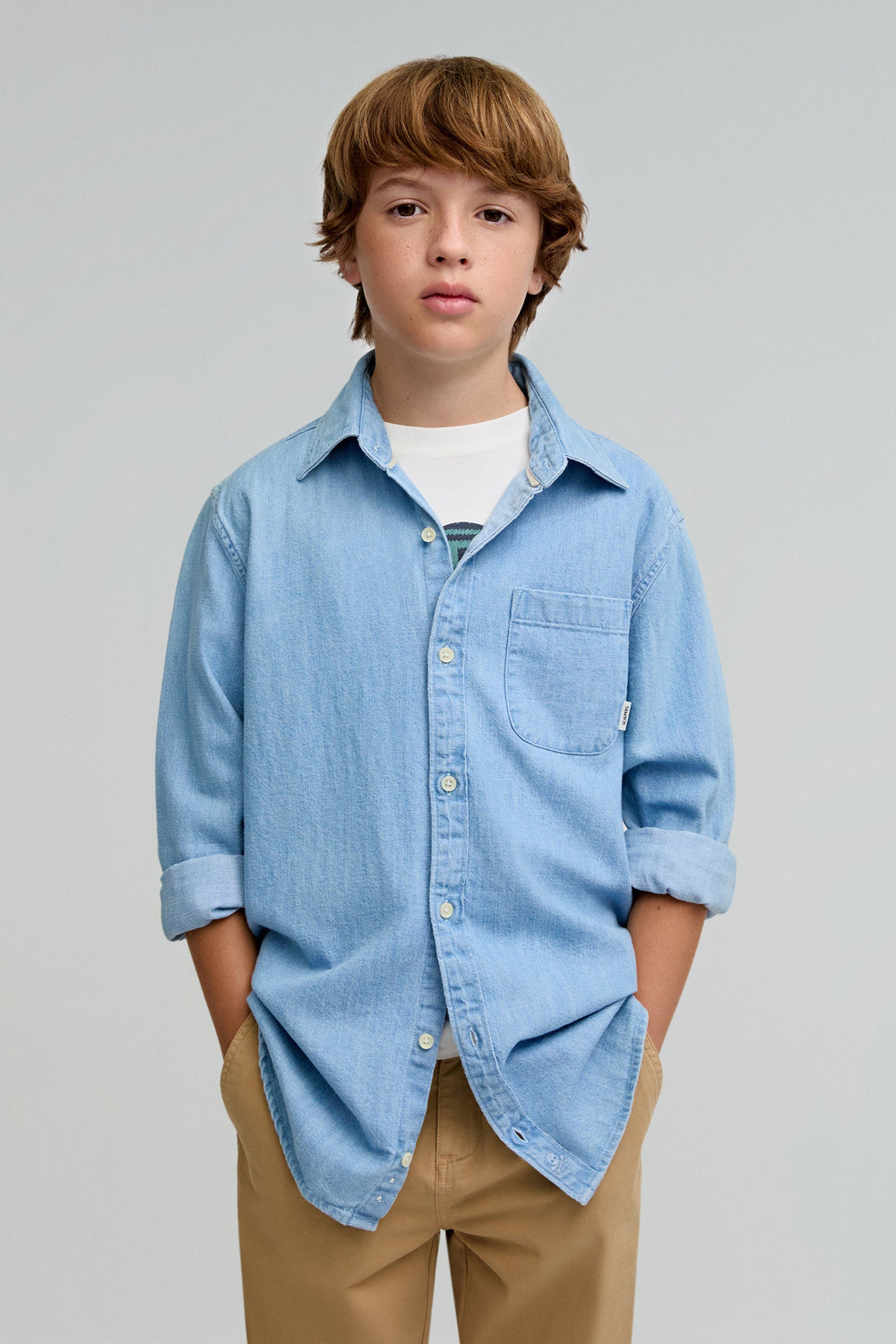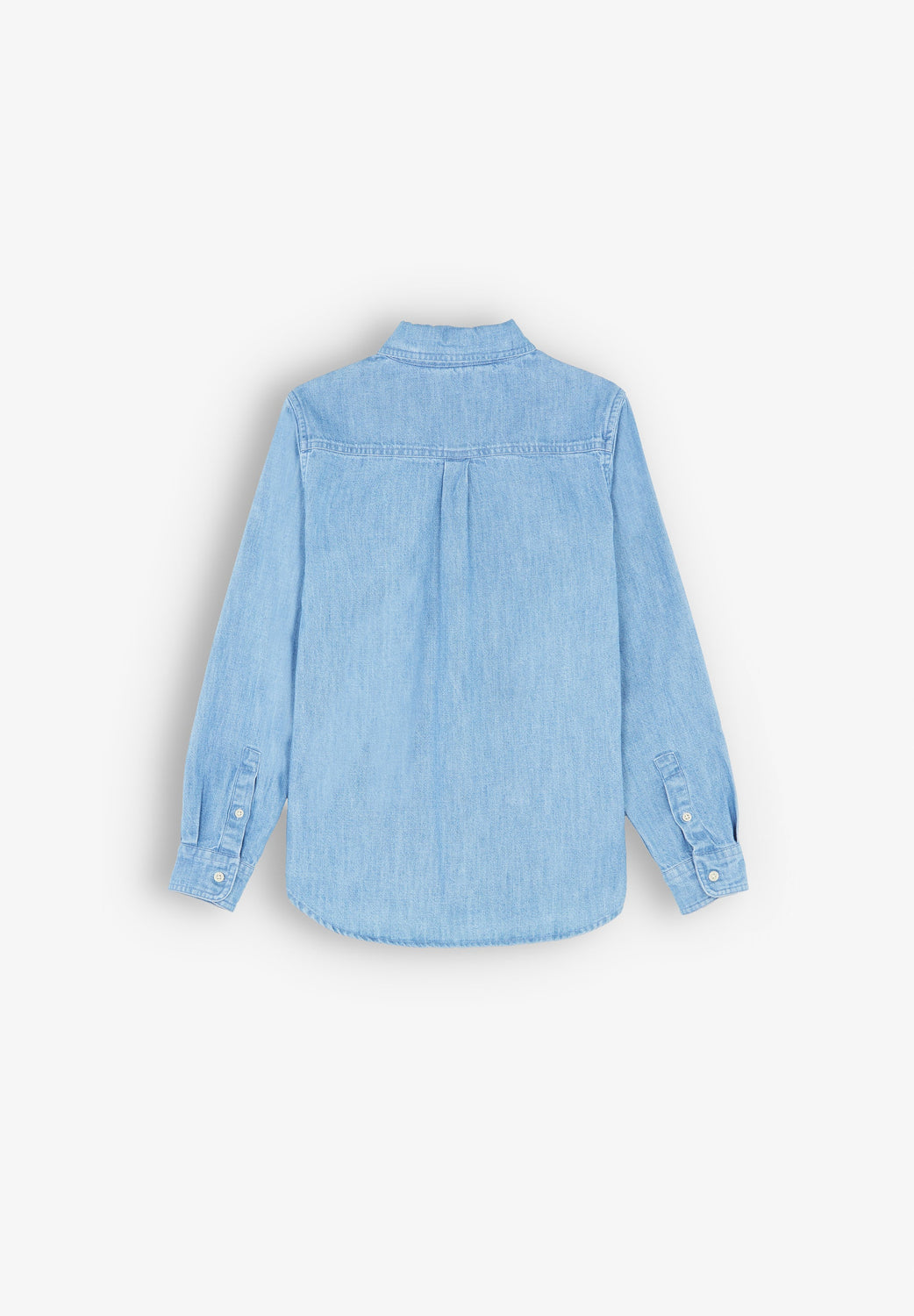 Camisa denim confeccionada en 100% algodón BCI. Regular fit, cuello clásico y cierre con botones. Bolsillo en pecho.