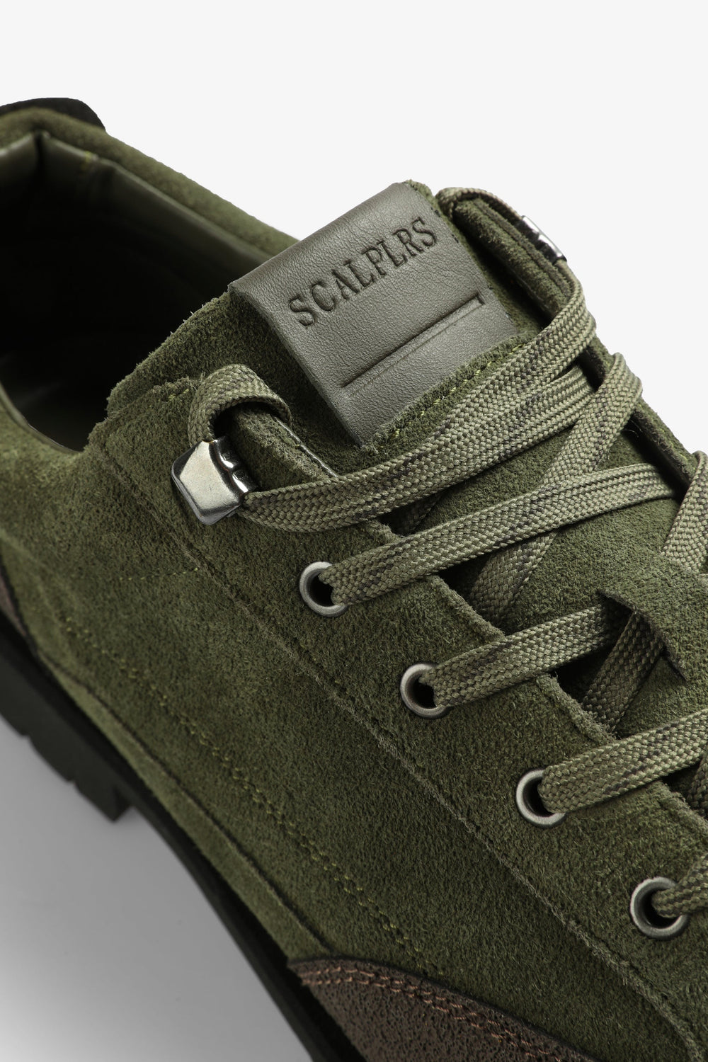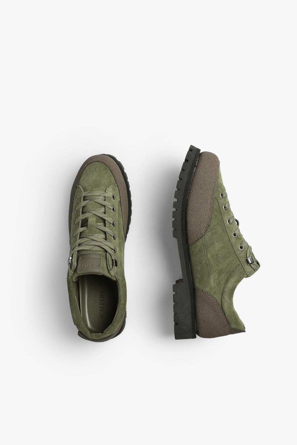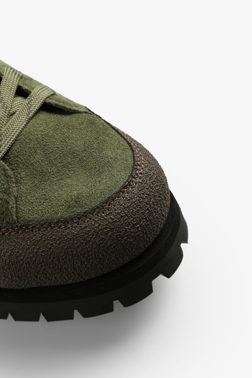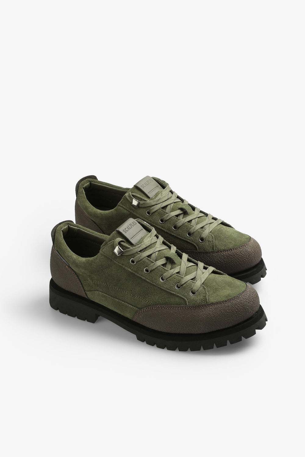 Zapatos confeccionados en 100% piel terminados en ante. Cierre con cordones tipo bota y suela de goma pronunciada dentada. Detalle de etiqueta lateral.
