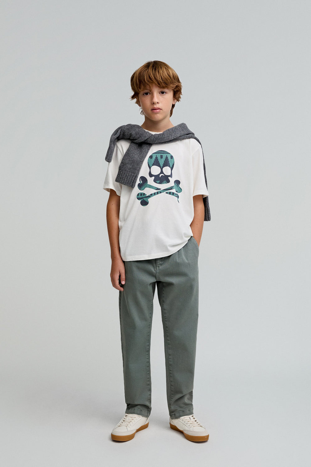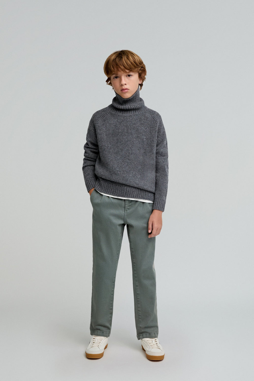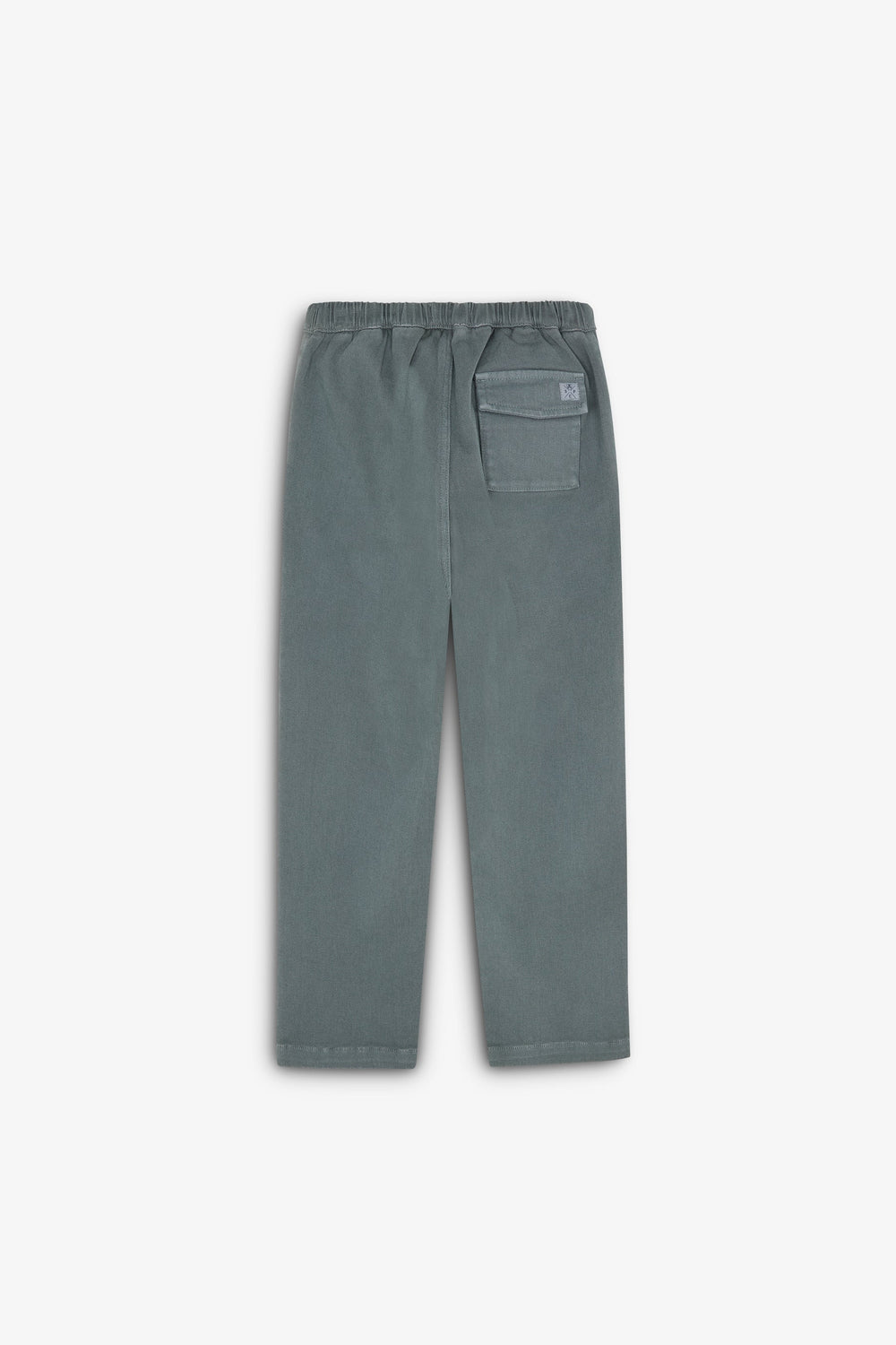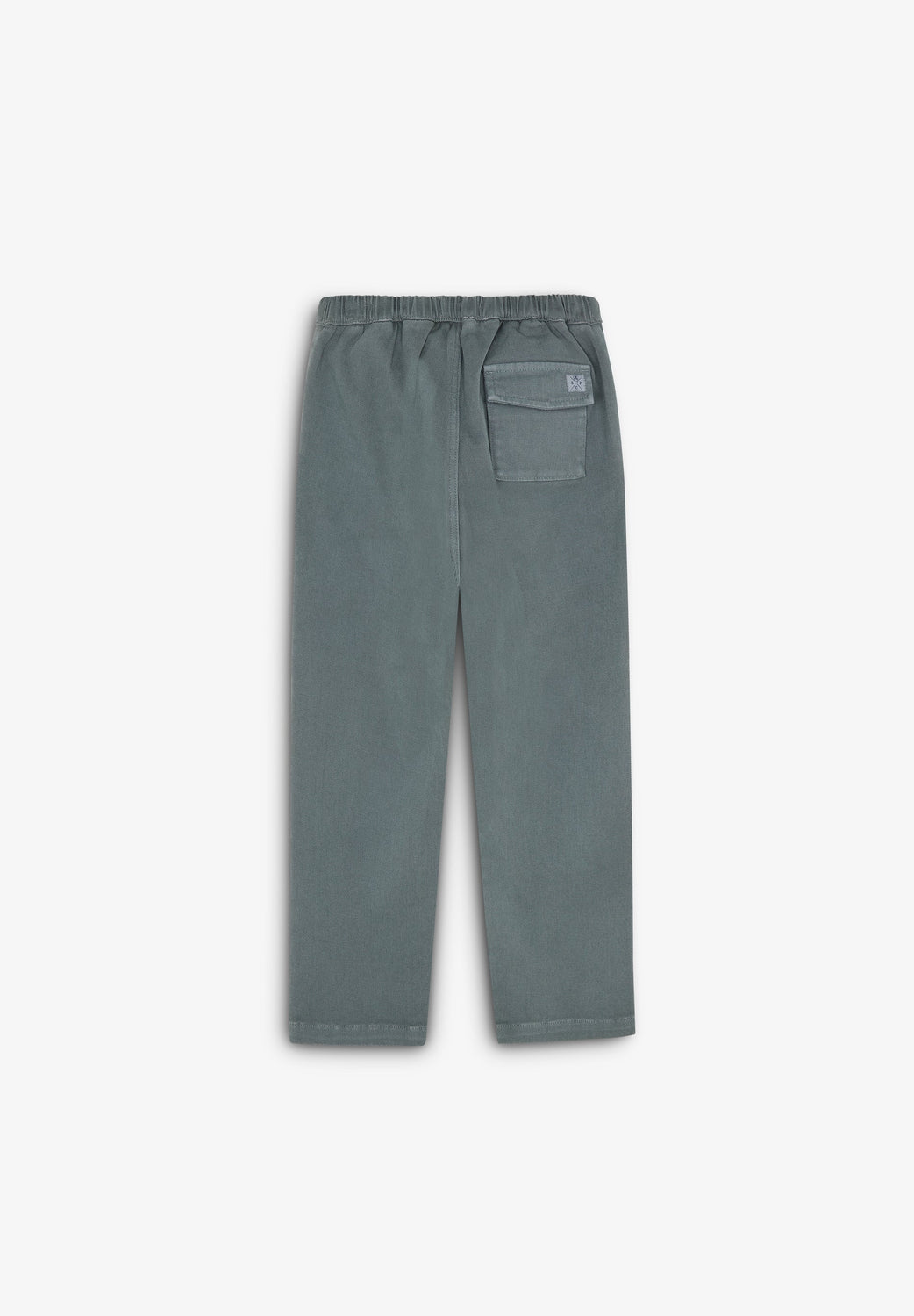 Pantalón confeccionado en algodón BCI ligeramente elástico. Corte recto con pinzas, cierre con botón y cremallera y cordones. Bolsillos laterales y trasero con tapeta.