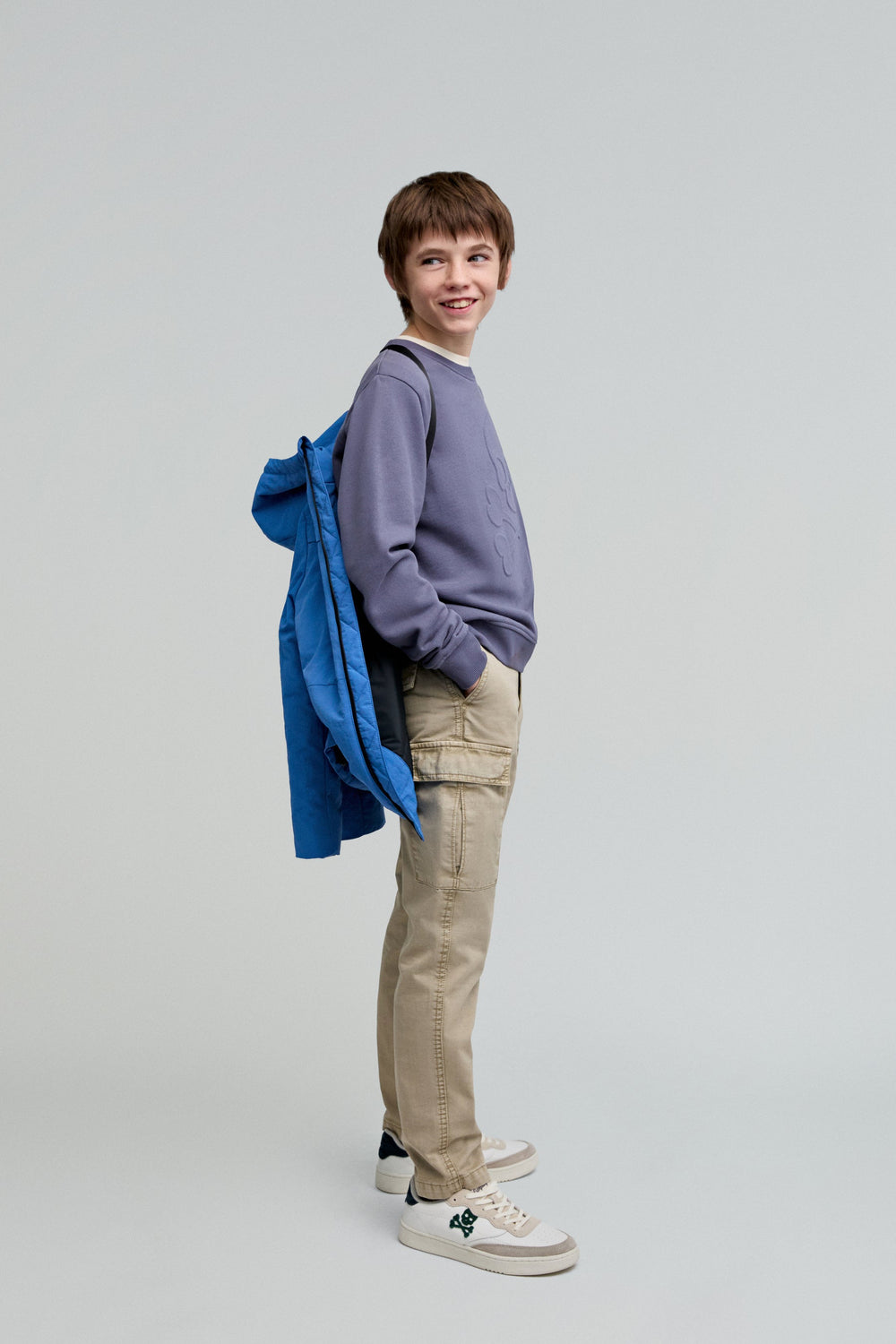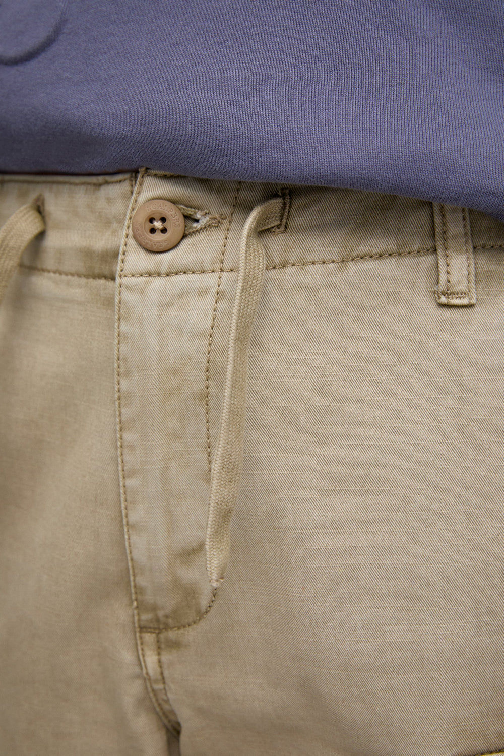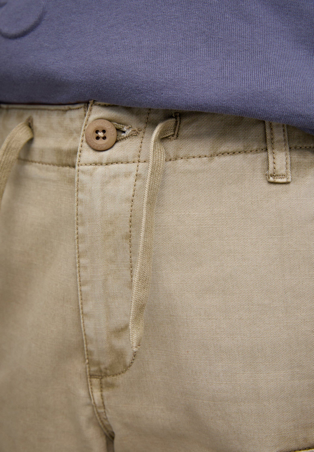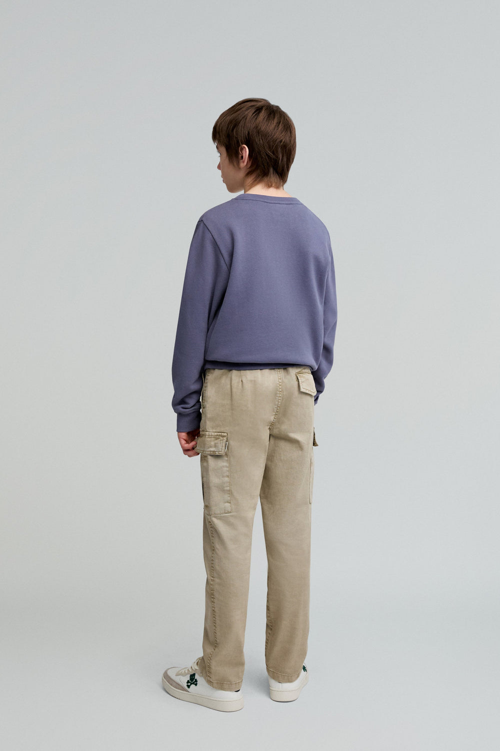 Pantalón cargo confeccionado en 100% algodón BCI. Corte recto, cierre con botón y cremallera y cordones en cintura. Trabillas en cintura y bolsillos en pernera y laterales.