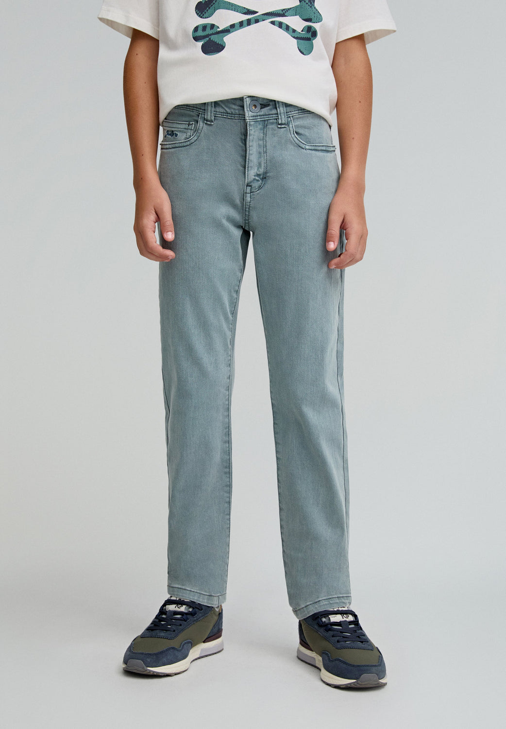 Pantalón cinco bolsillos. confeccionado en tejido ligeramente elástico. Cierre con botón y cremallera. Corte Regular Fit.