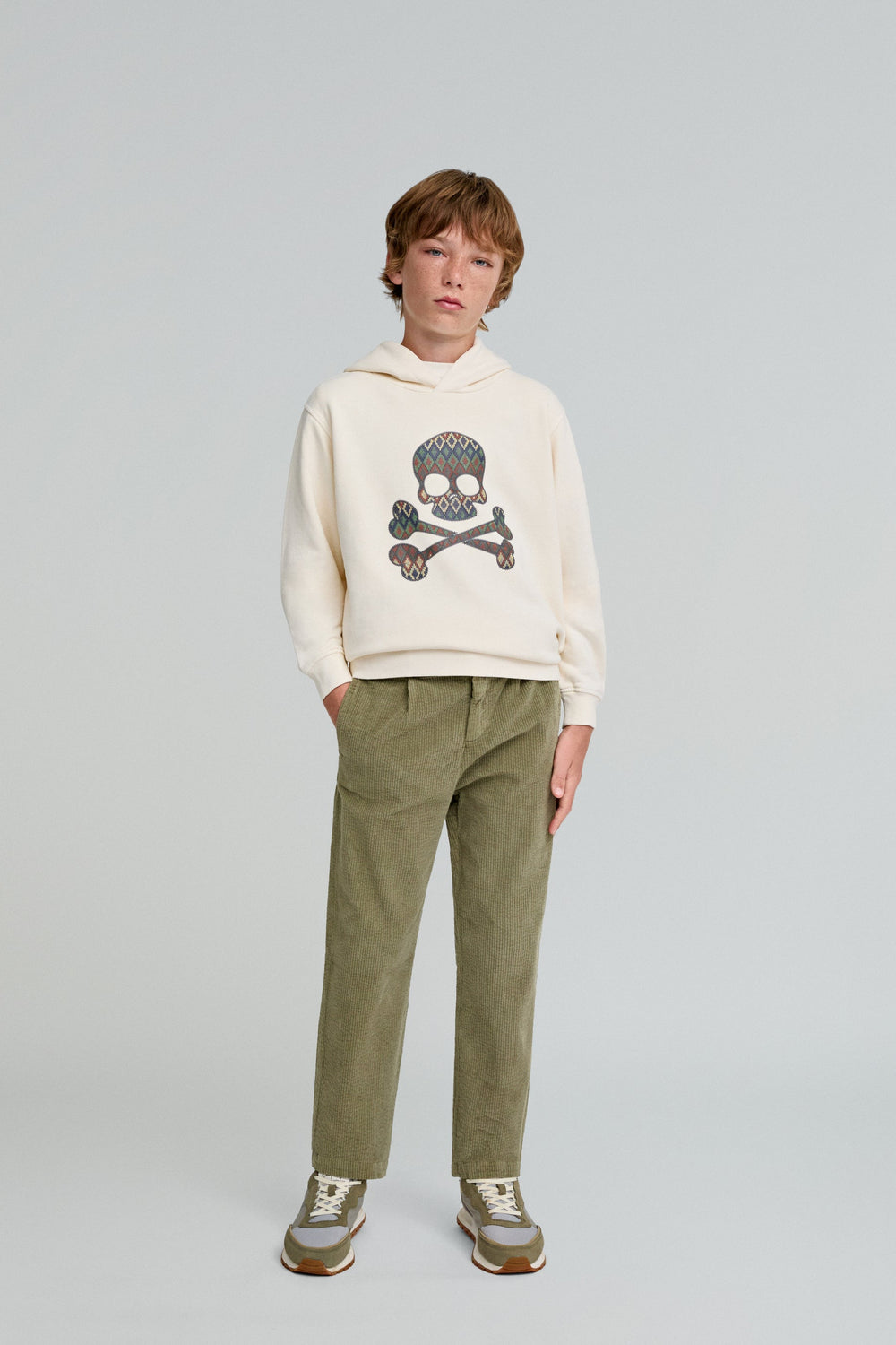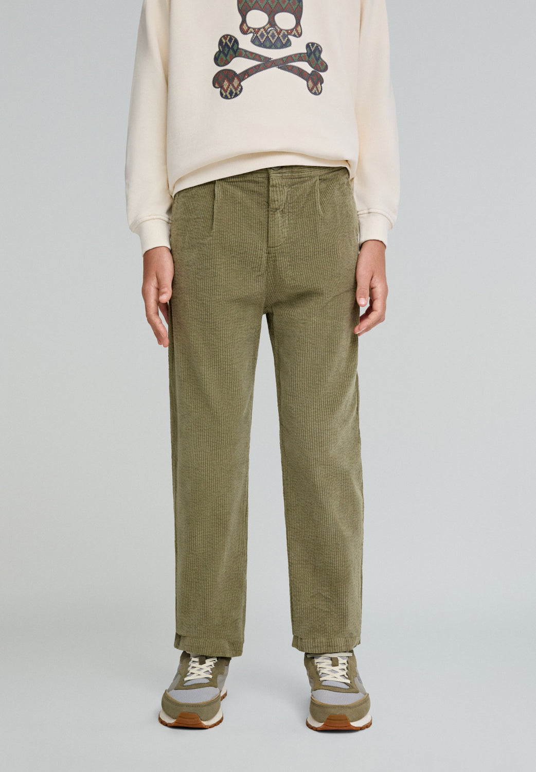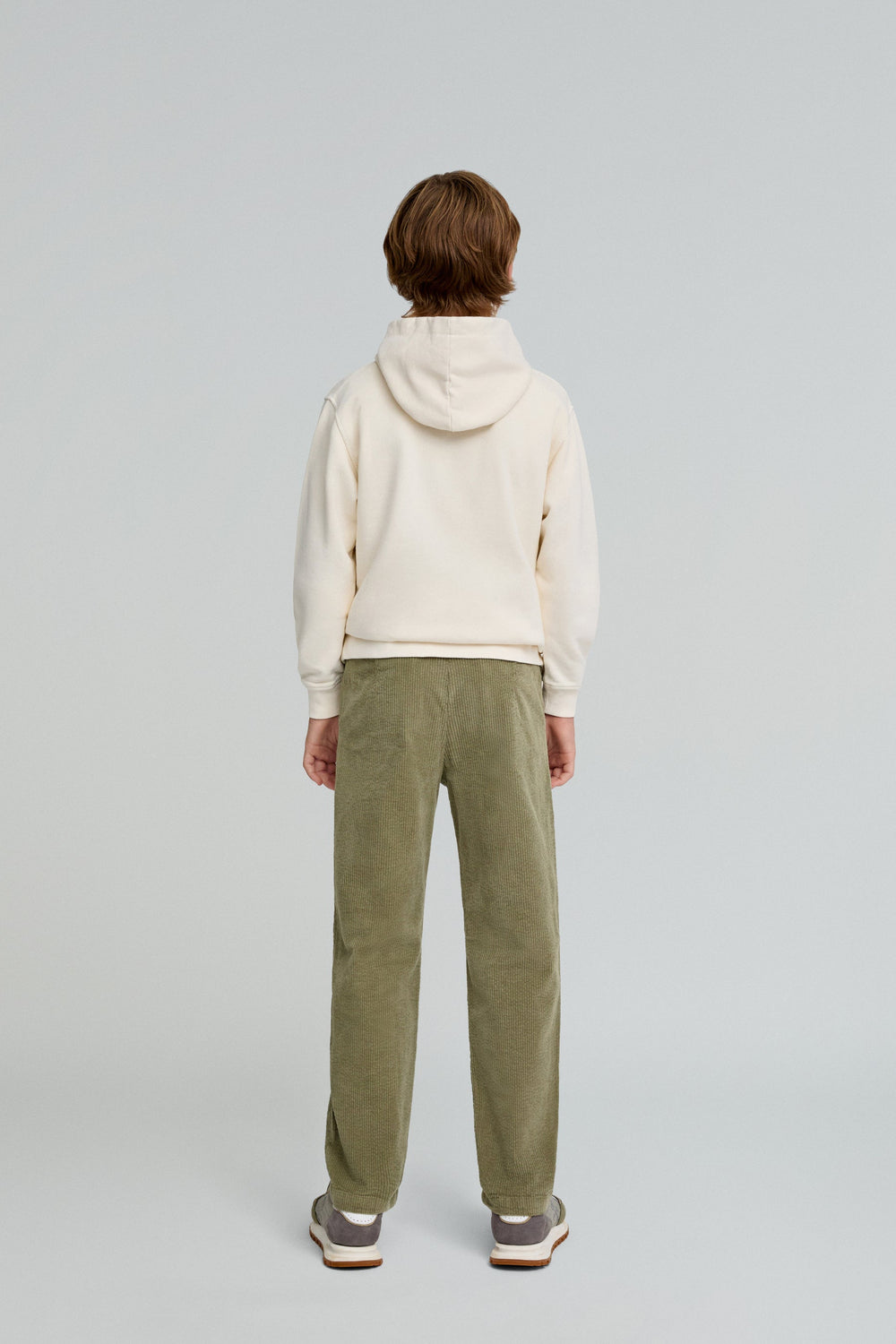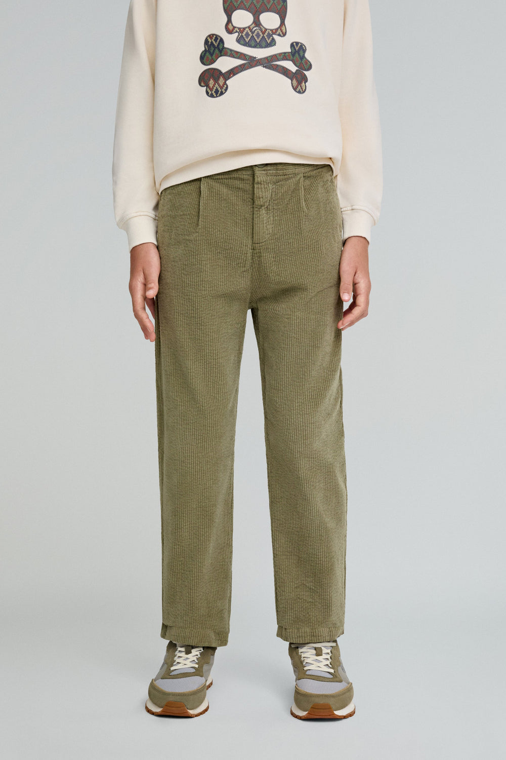Pantalón de pana confeccionado en algodón BCI ligeramente elástico. Regular fit, cierre con lazada y botón y cremallera. Bolsillos laterales y traseros.