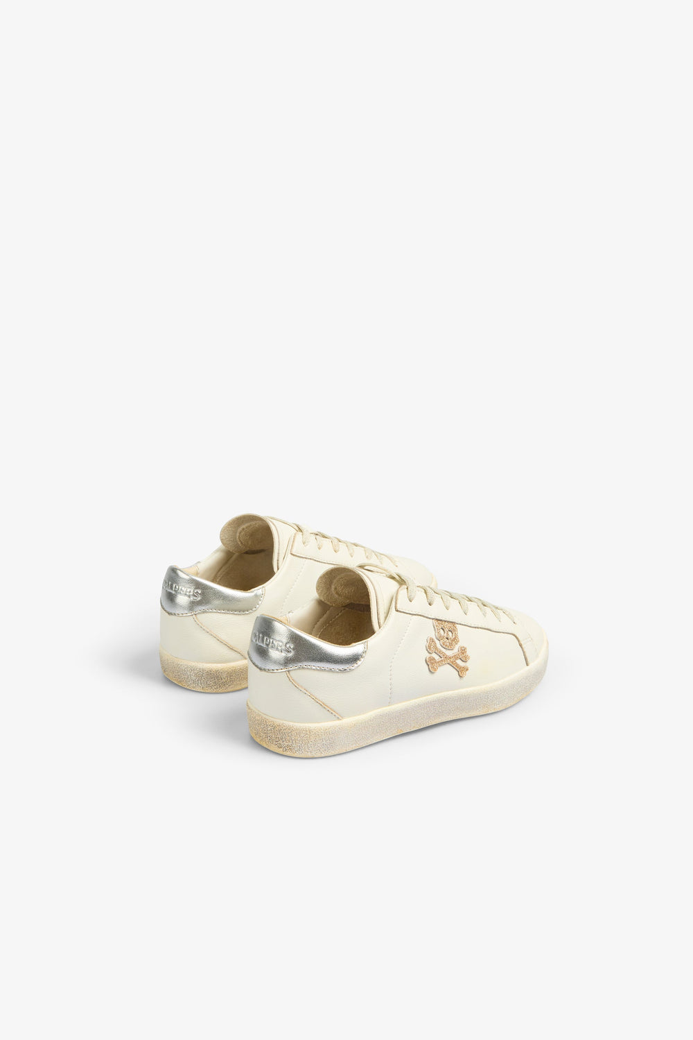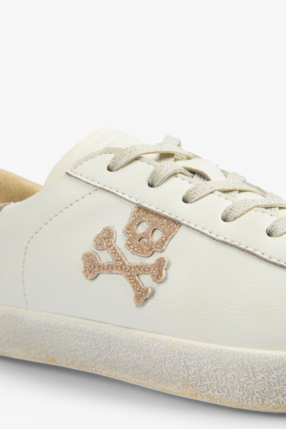 Sneakers bajas en glitter confeccionadas en 100% piel. Cierre con cordones, suela de caucho y calavera lateral.